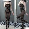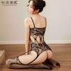 Lencería sexy, falda corta hueca sexy, vestido de malla de una pieza que envuelve la cadera, tirantes, encaje estampado, spandex, lindo, extensiones de cabello