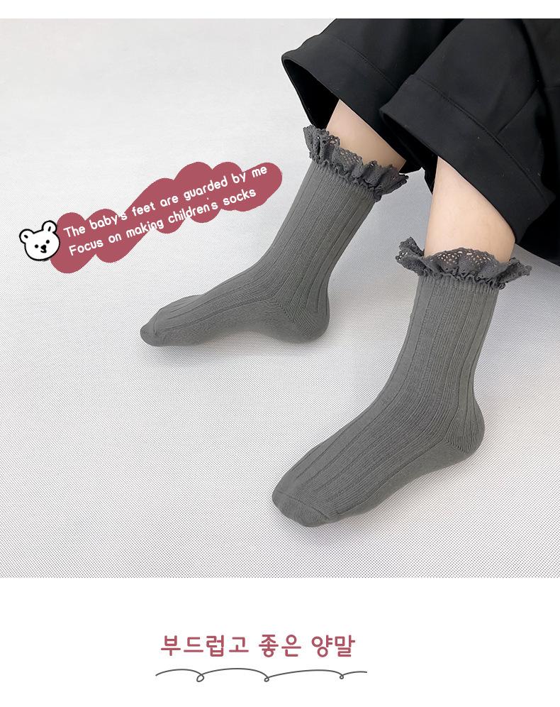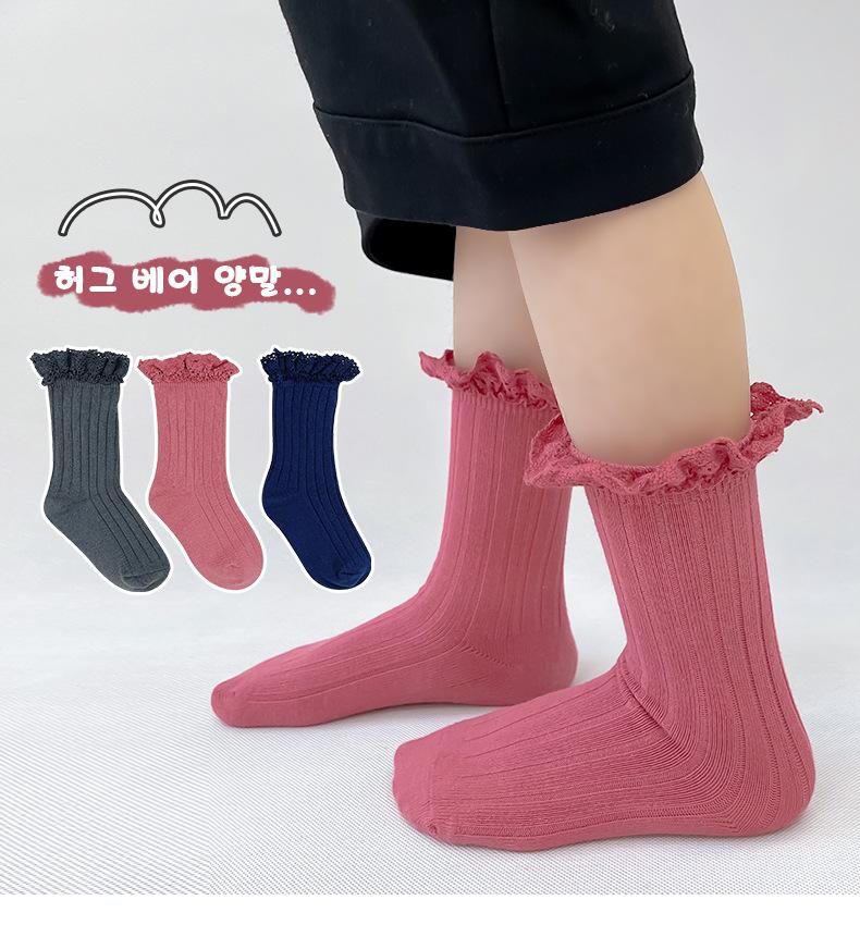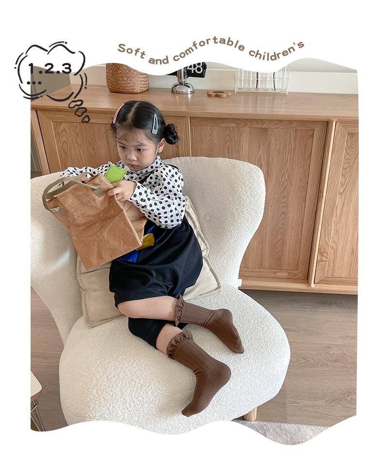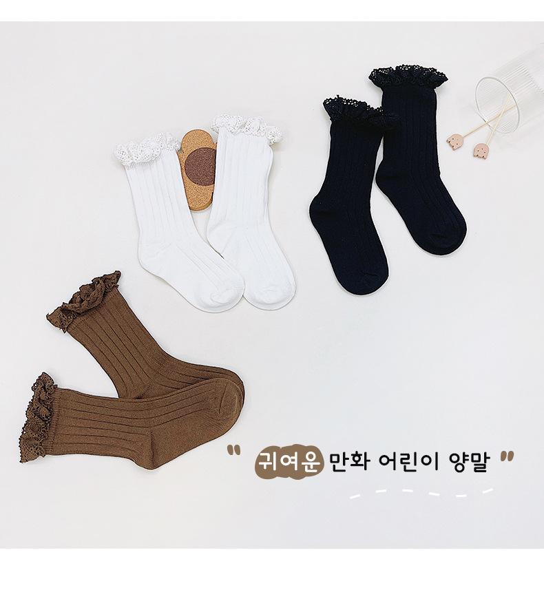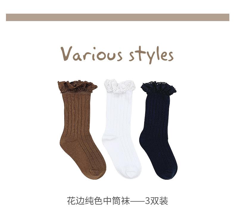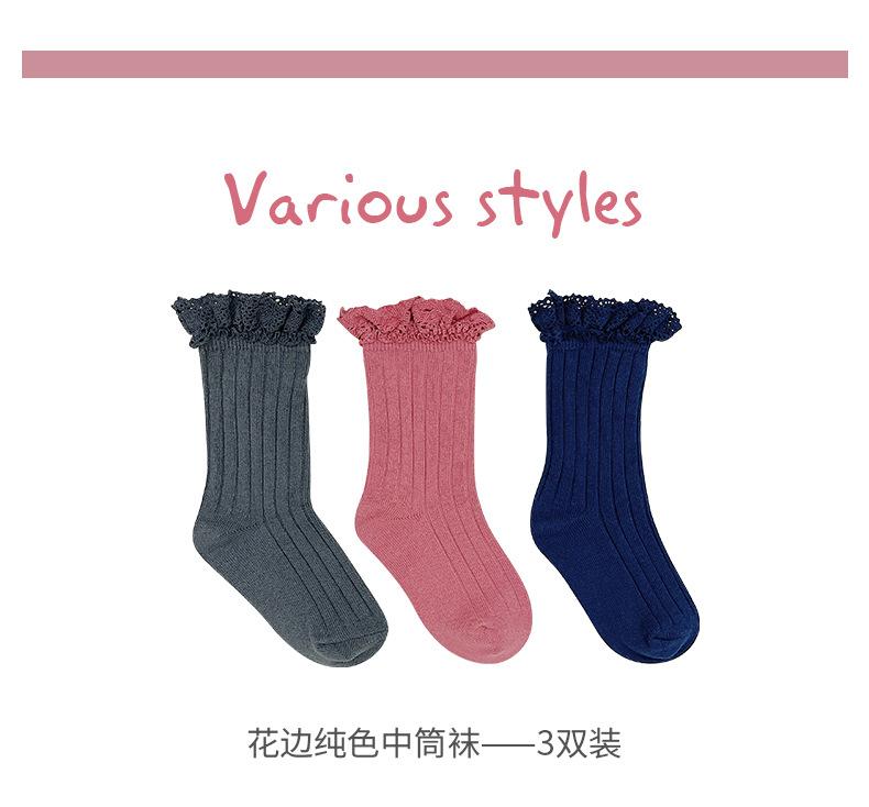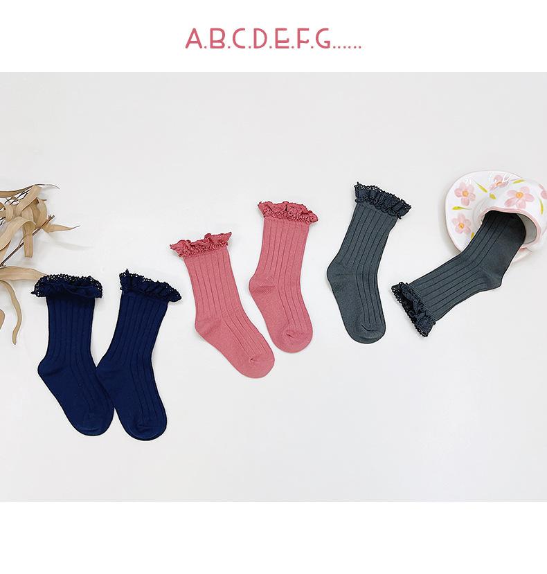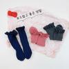 Calcetines dulces para niños otoño e invierno Nuevos calcetines de media pantorrilla de encaje para niñas calcetines de pantorrilla de algodón peinado para niños de color liso