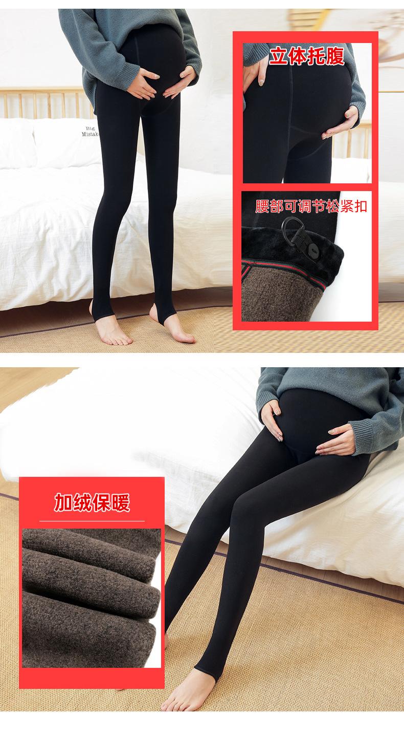 Bones Pantalones sin pies forrados de vellón para mujeres embarazadas 7347 Medias de seda Leggings cálidos ajustables de otoño e invierno