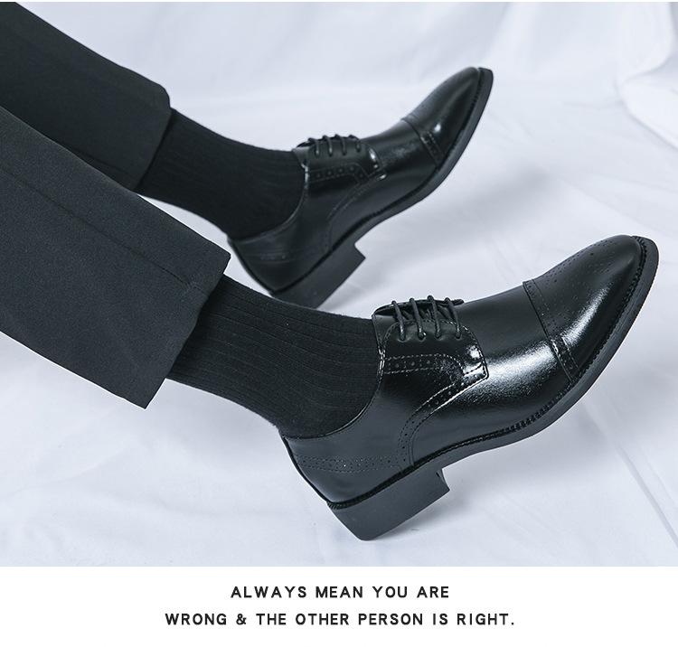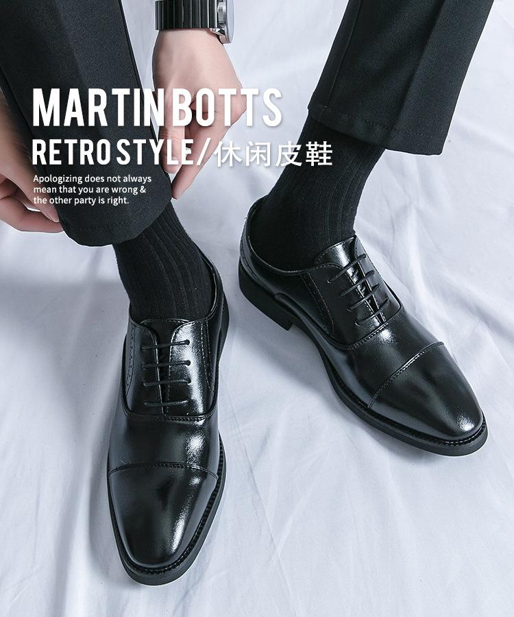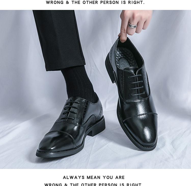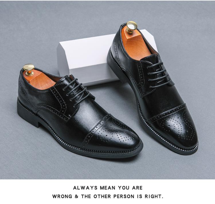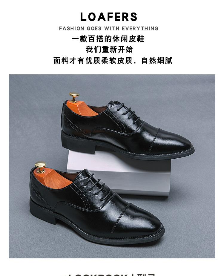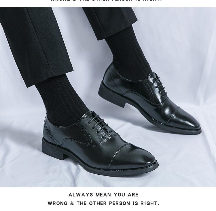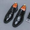 Zapatos de Cuero con Cordones para Cuatro Estaciones para Hombre, Zapatos Casuales de Negocios de Corte Bajo, Zapatos Británicos de Moda con Punta Redonda para Vestir de Negocios, Novio, Boda