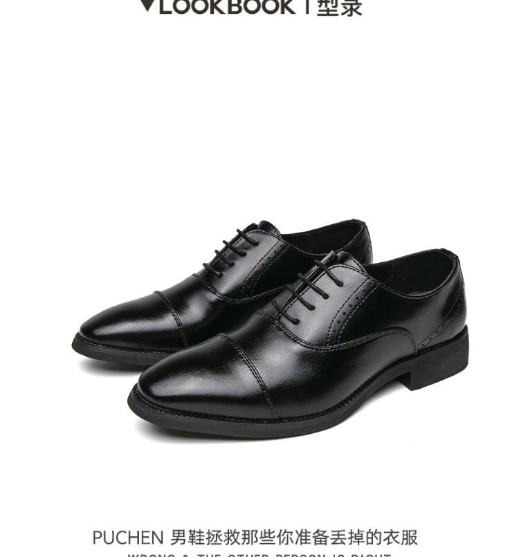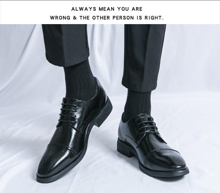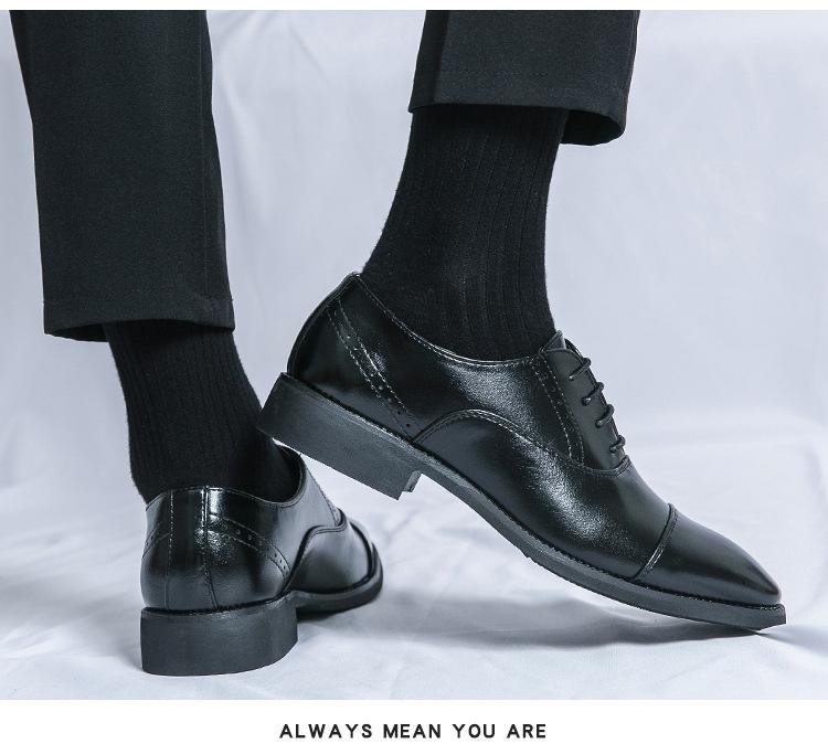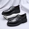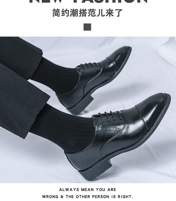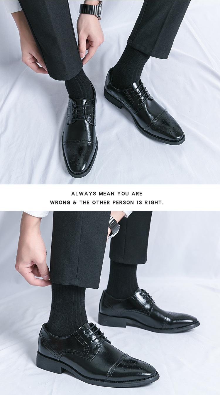 Zapatos de Cuero con Cordones para Cuatro Estaciones para Hombre, Zapatos Casuales de Negocios de Corte Bajo, Zapatos Británicos de Moda con Punta Redonda para Vestir de Negocios, Novio, Boda