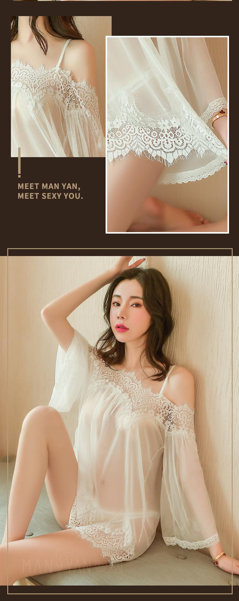 Ropa interior sexy Manyan, tirantes de encaje sexy, perspectiva de hombro, hada, vestido de dormir, traje de una generación de 1818
