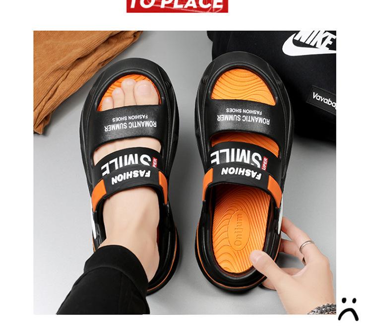 Sandálias e chinelos de duas roupas de sola grossa para homens e mulheres Outfit Sandálias de praia de chinelos de uma palavra de sola macia para cabelo