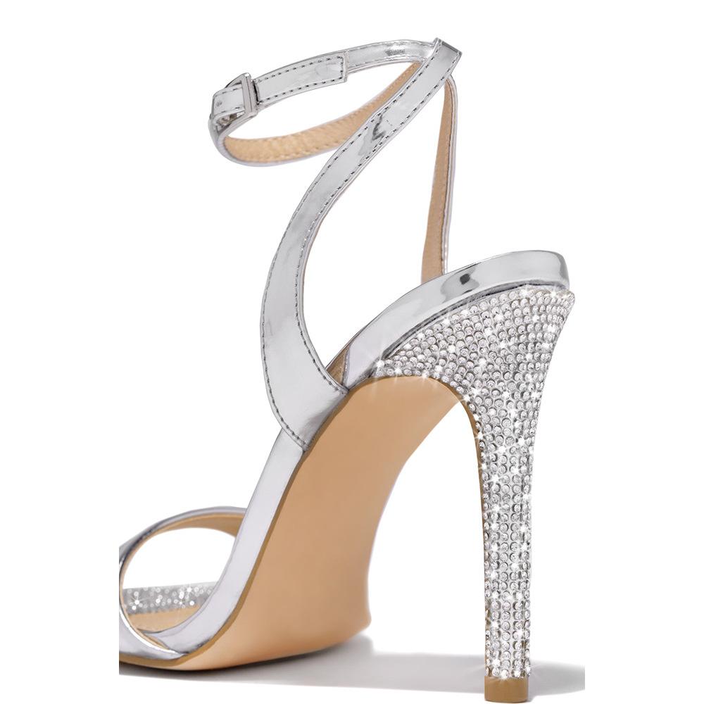 Compra Sandalias de tacón alto puntiagudas de diamantes de imitación de comercio exterior europeo y americano para mujer, de una palabra con tacón fino y hebilla, sandalias de moda, zapatos de tacón al por mayor en Joom.pro