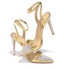 Sandalias de tacón alto puntiagudas de diamantes de imitación de comercio exterior europeo y americano para mujer, de una palabra con tacón fino y hebilla, sandalias de moda, zapatos de tacón