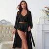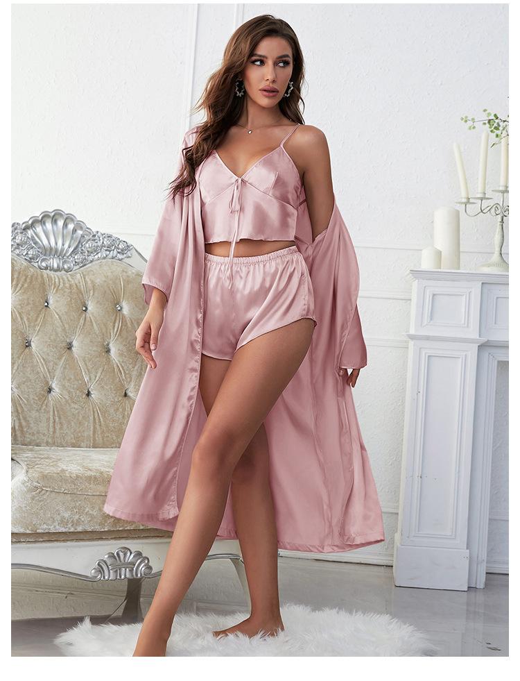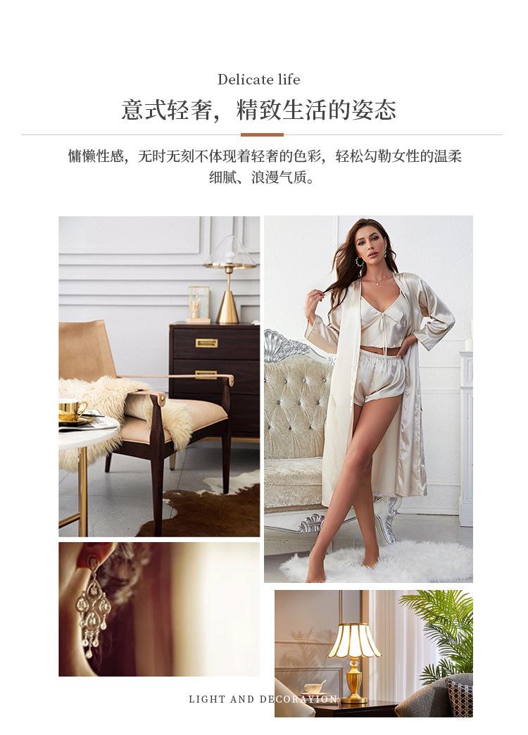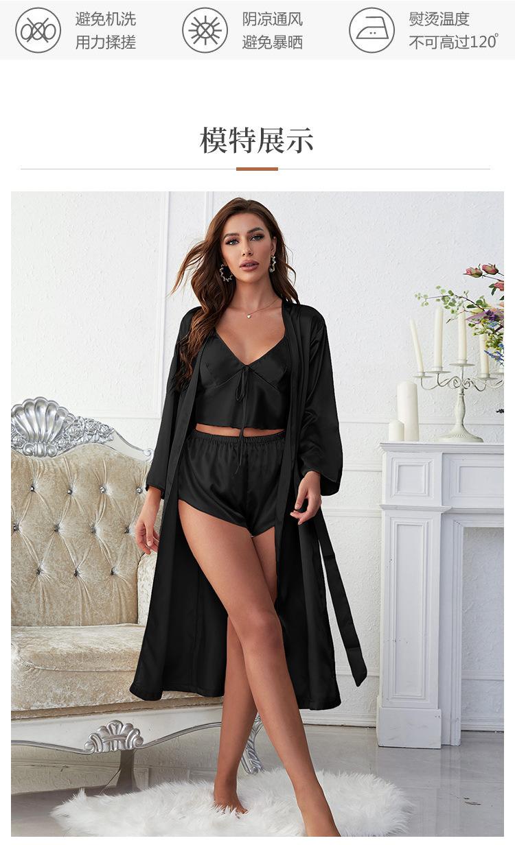 Camisón de seda de hielo transfronterizo, nuevo, informal, cómodo, con chaqueta, bata de baño de seda, pantalones cortos de moda para mujer, pijama