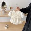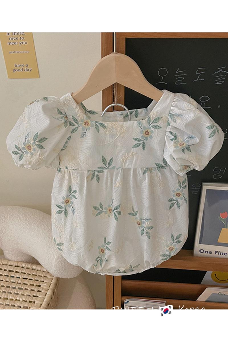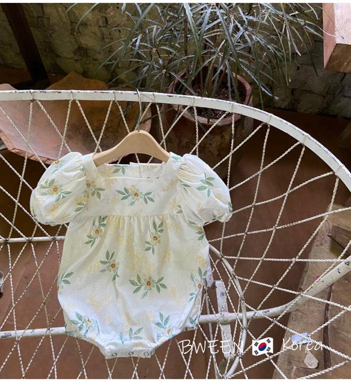 Ropa infantil coreana, mono para niña bebé, verano 22, estilo occidental, ropa de escalada para bebé, bolsa de bebé con mangas abullonadas y flores, ropa de pedo ha