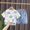 Traje de verano para niño de un año, ropa para niño, moderno, elegante, de moda, traje de bebé de manga corta, peinado de verano para bebé