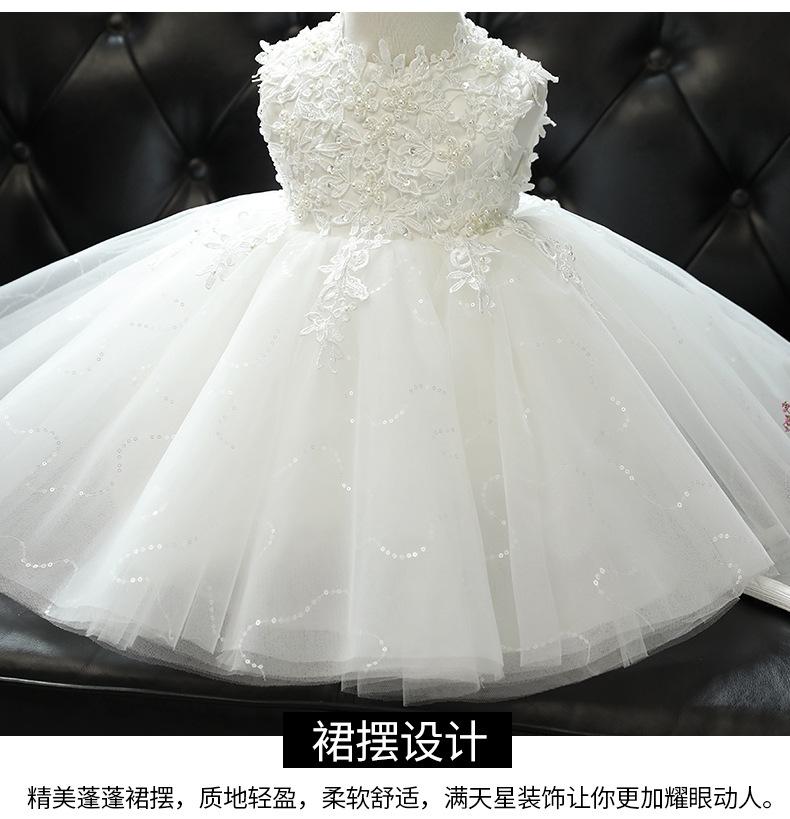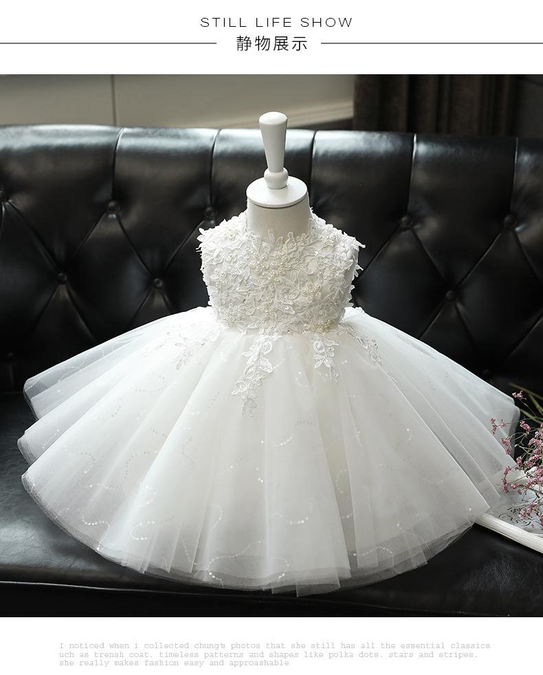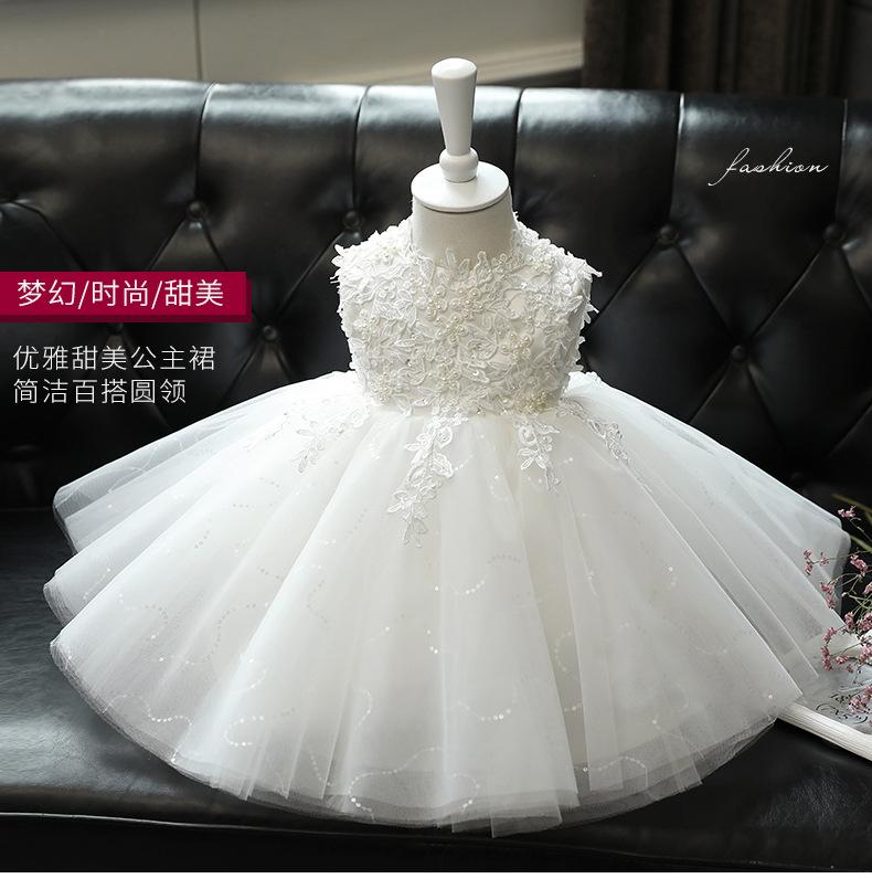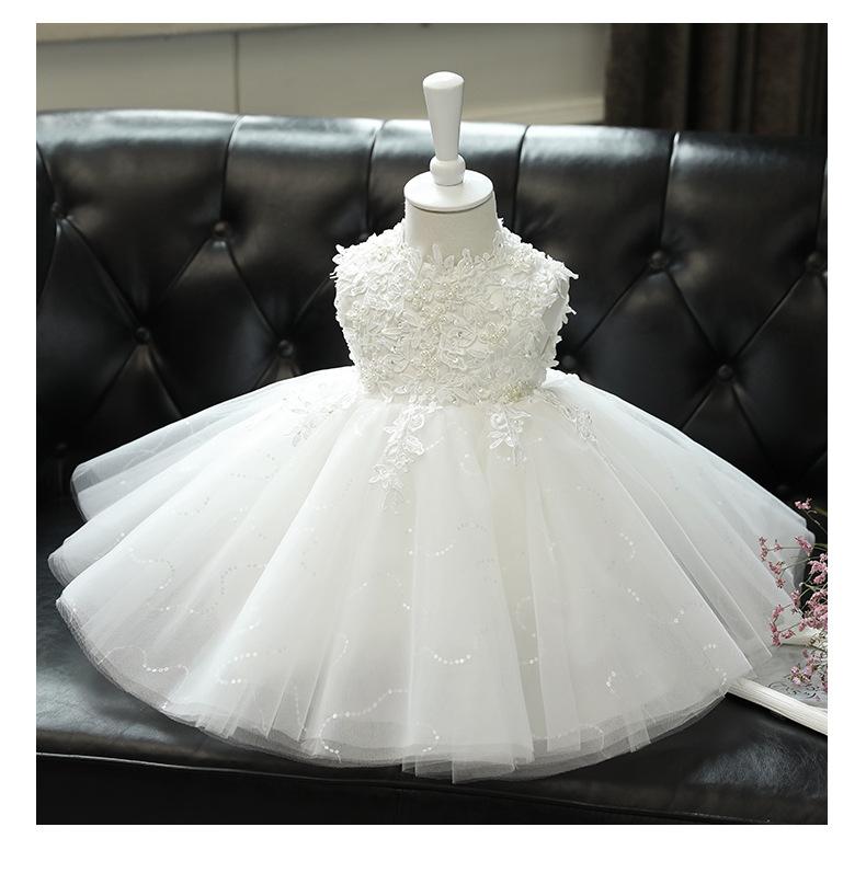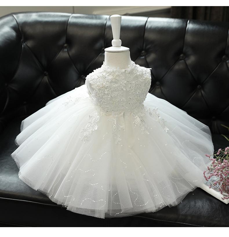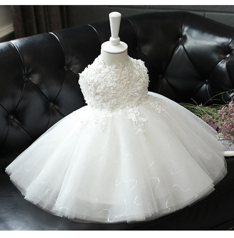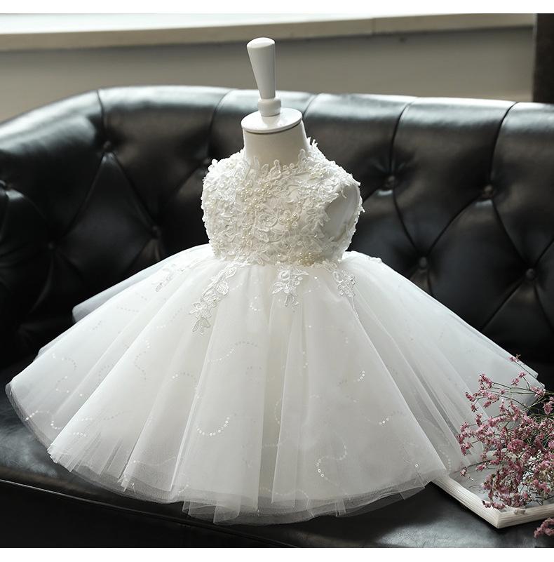 Vestido de un año para niña, vestido de princesa para bebé, blanco, niña, pasarela, disfraz para presentación de piano, niña de las flores, falda de gasa esponjosa, verano