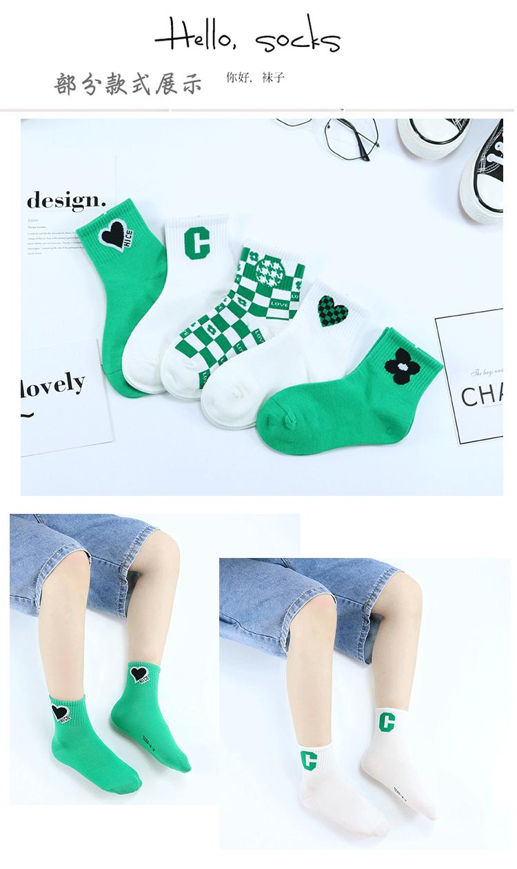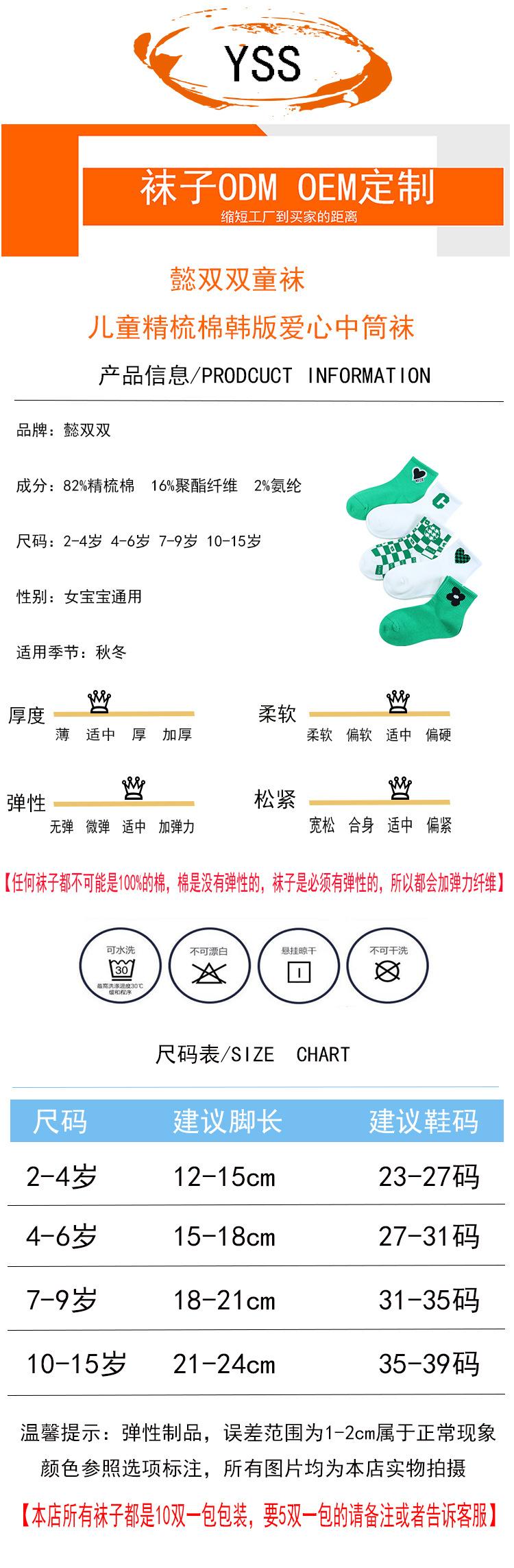 Calcetines infantiles de doble par otoño e invierno Nuevos Calcetines de media caña de dibujos animados amor algodón peinado estilo coreano calcetines de moda para niñas calcetines sin costuras