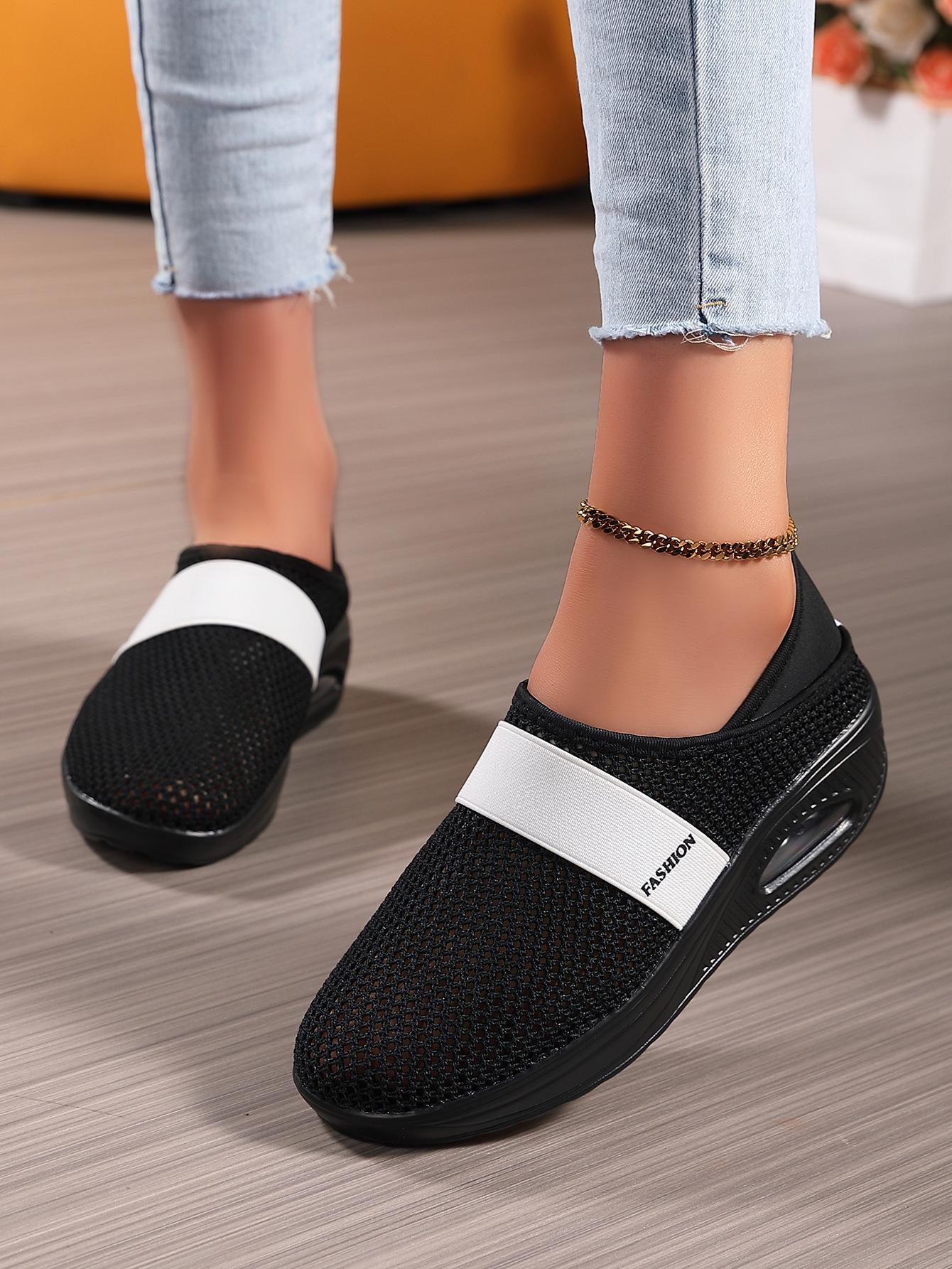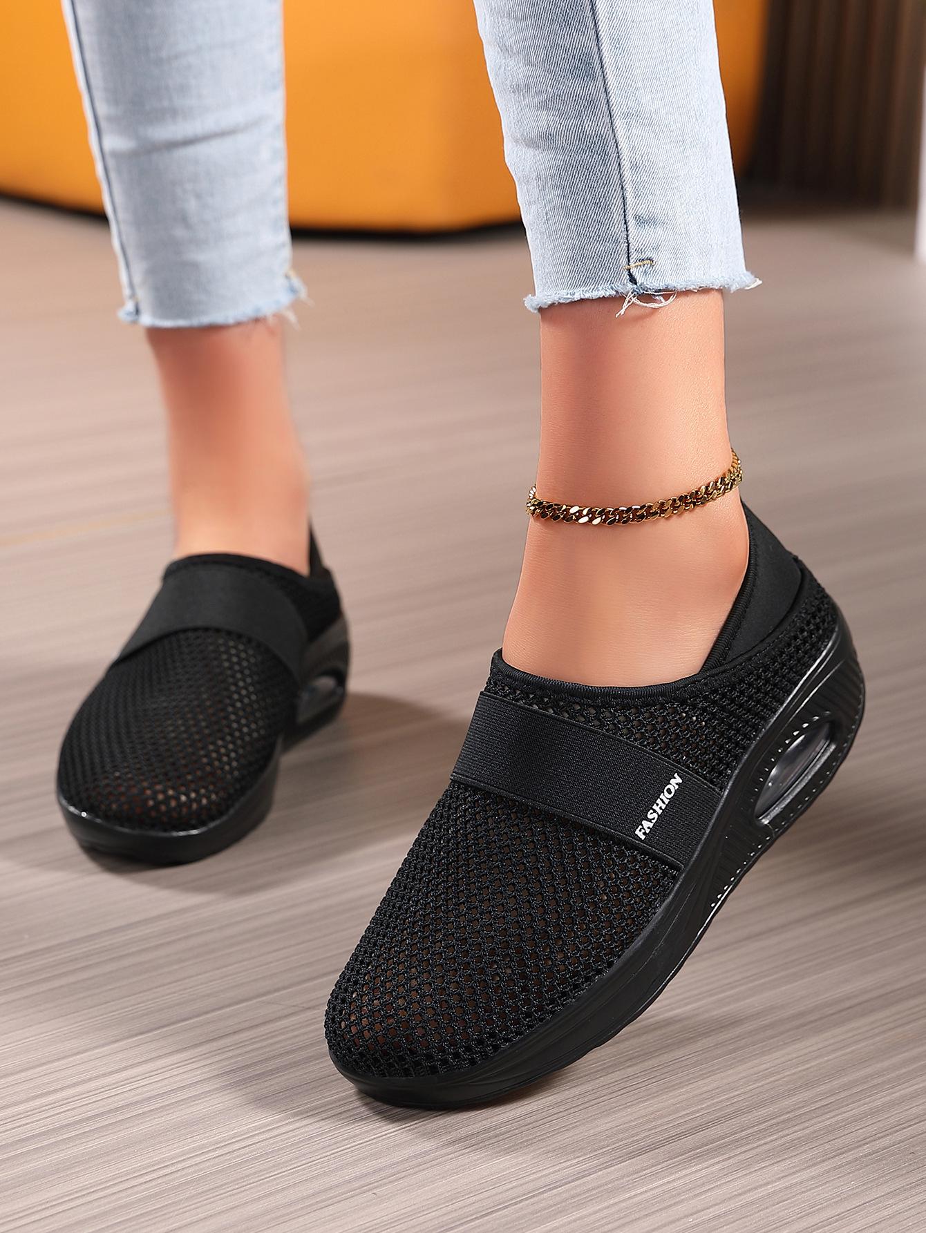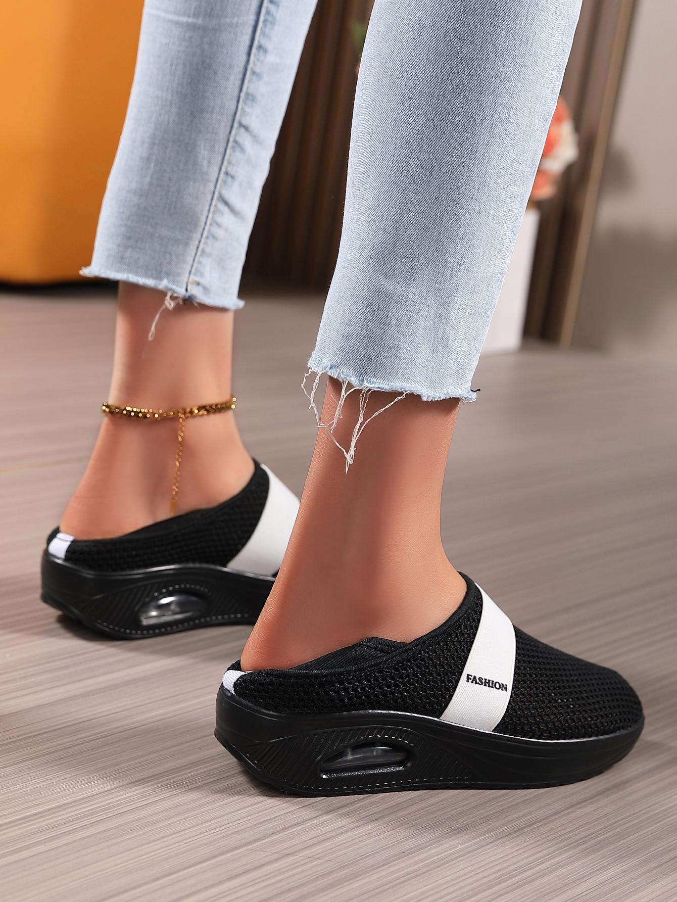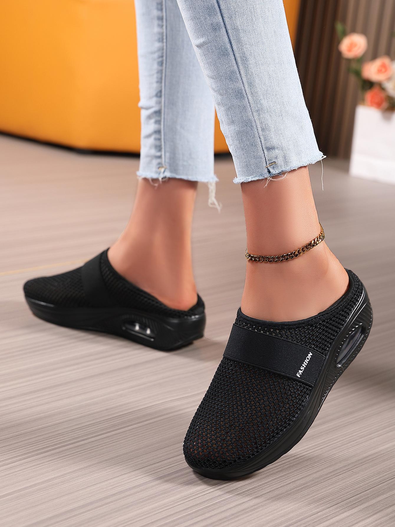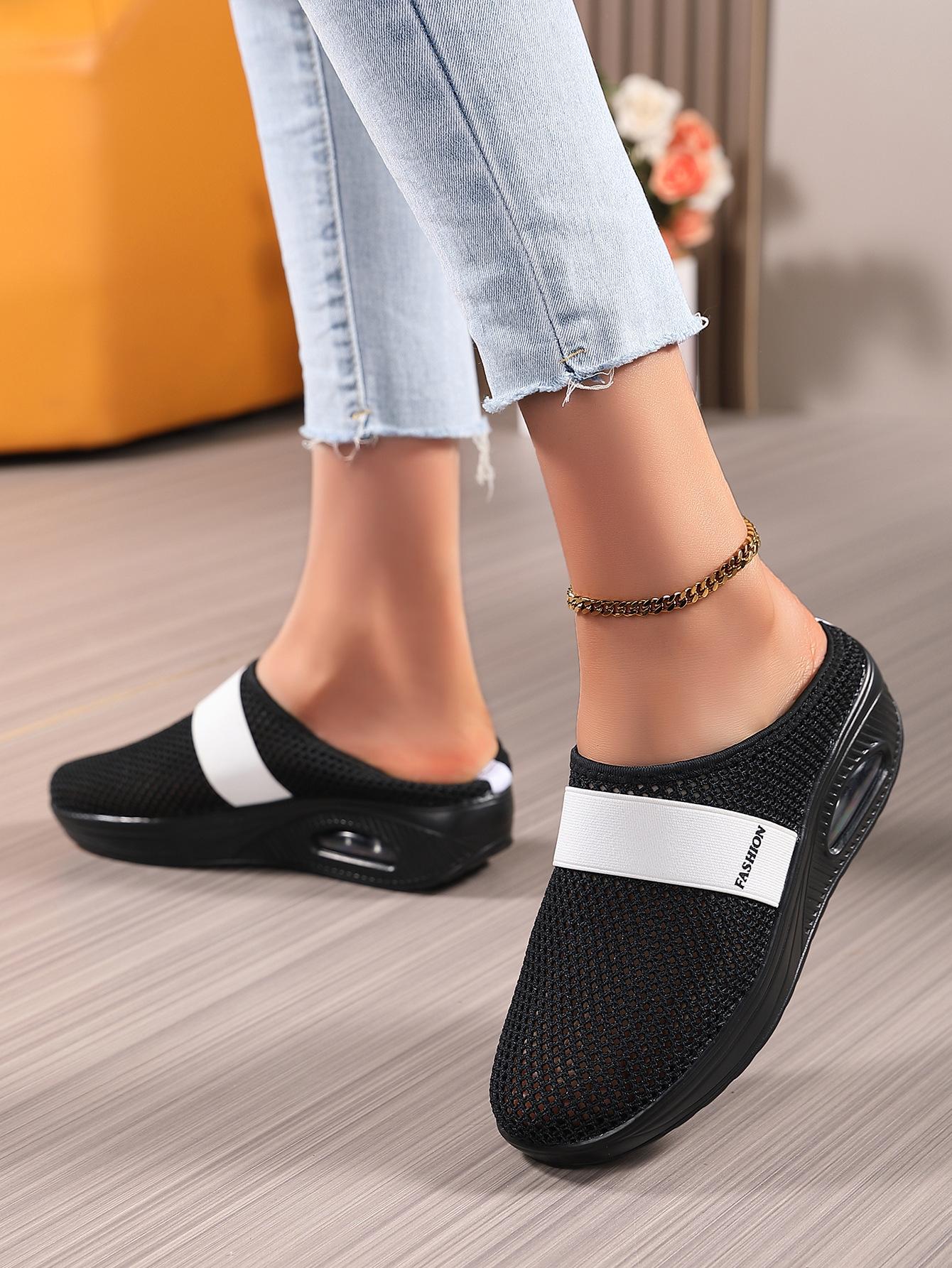 Zapatos de Mujer Transfronterizos de Primavera 2024 para Exterior Malla Zapatos Casuales Pierna Transpirable Zapatos Perezosos Zapatos de Una Capa Tejido de Mosca Talla Grande