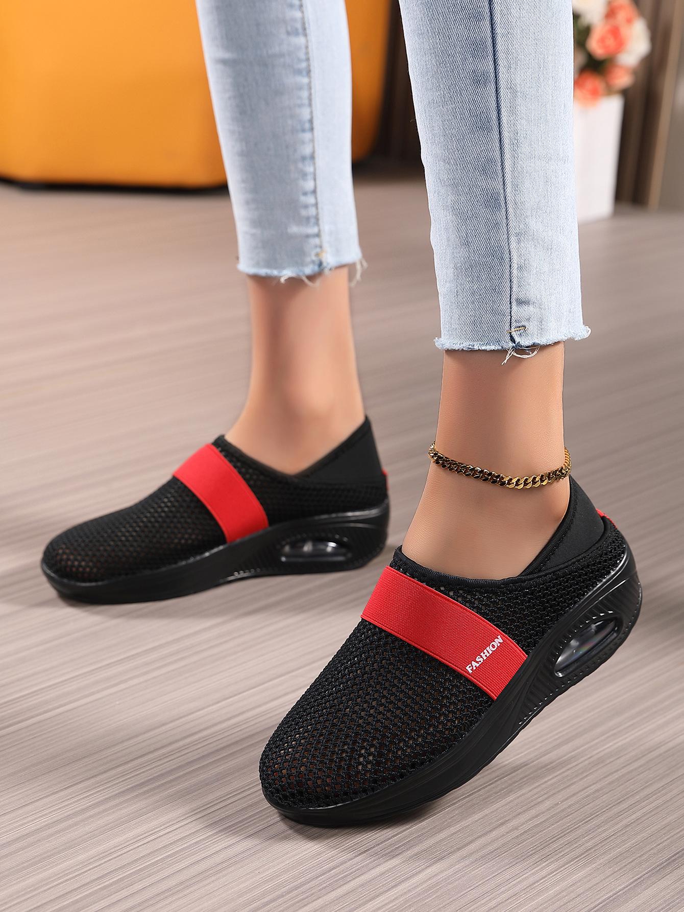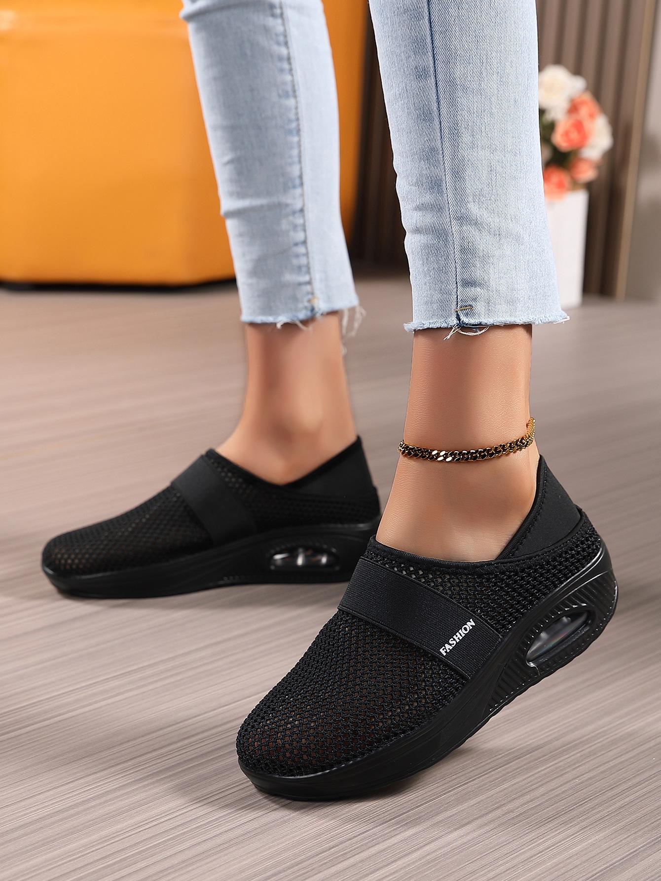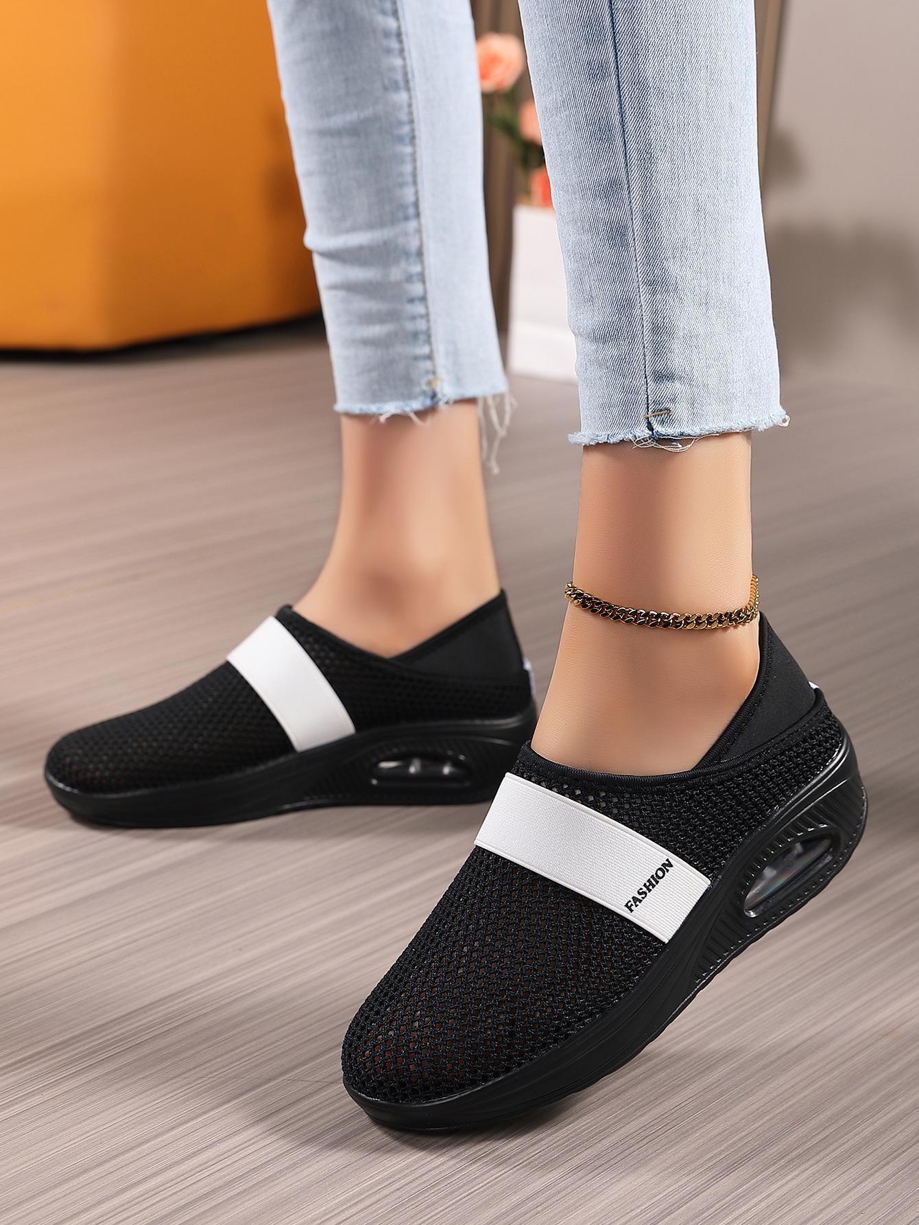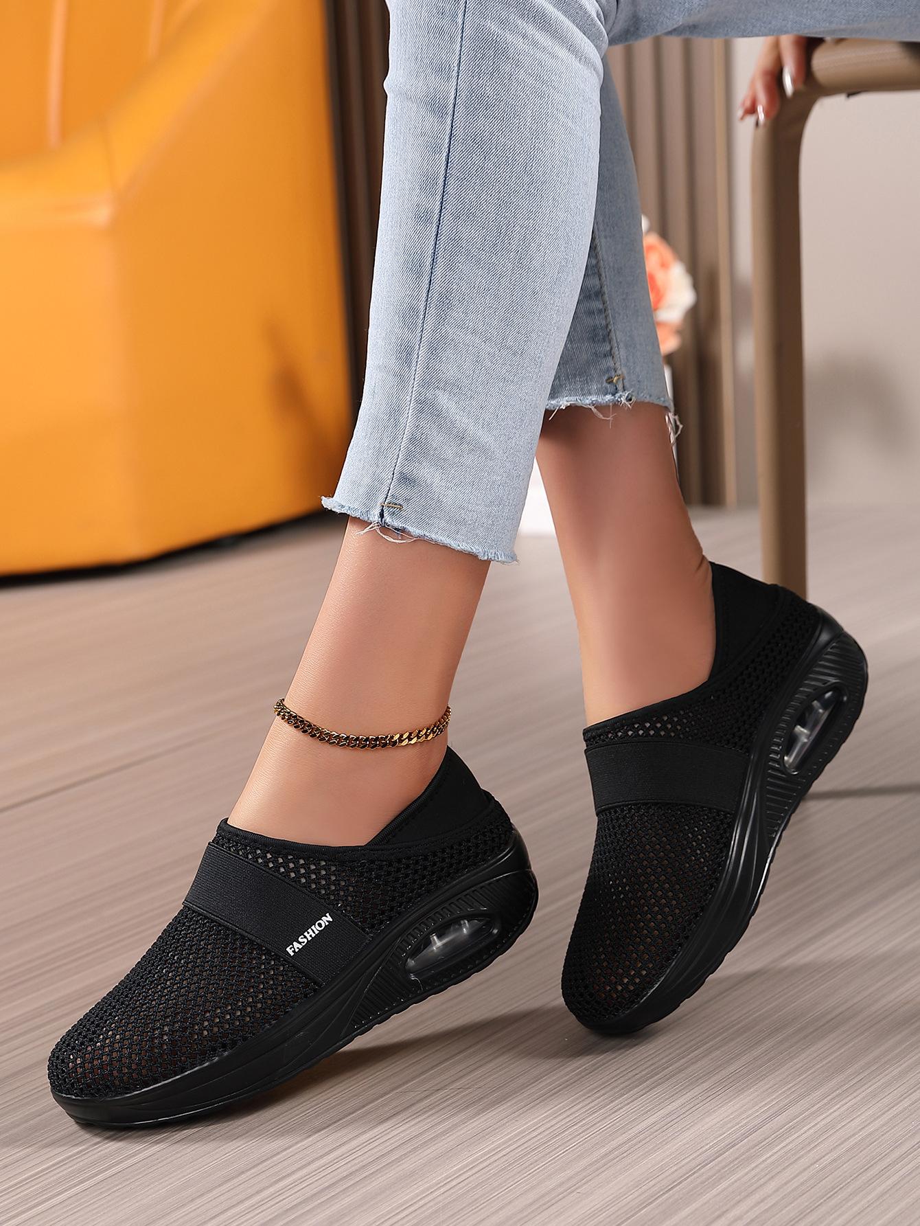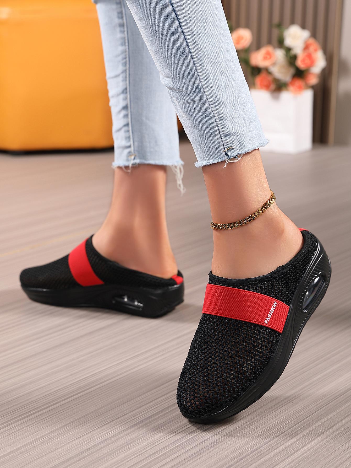 Zapatos de Mujer Transfronterizos de Primavera 2024 para Exterior Malla Zapatos Casuales Pierna Transpirable Zapatos Perezosos Zapatos de Una Capa Tejido de Mosca Talla Grande