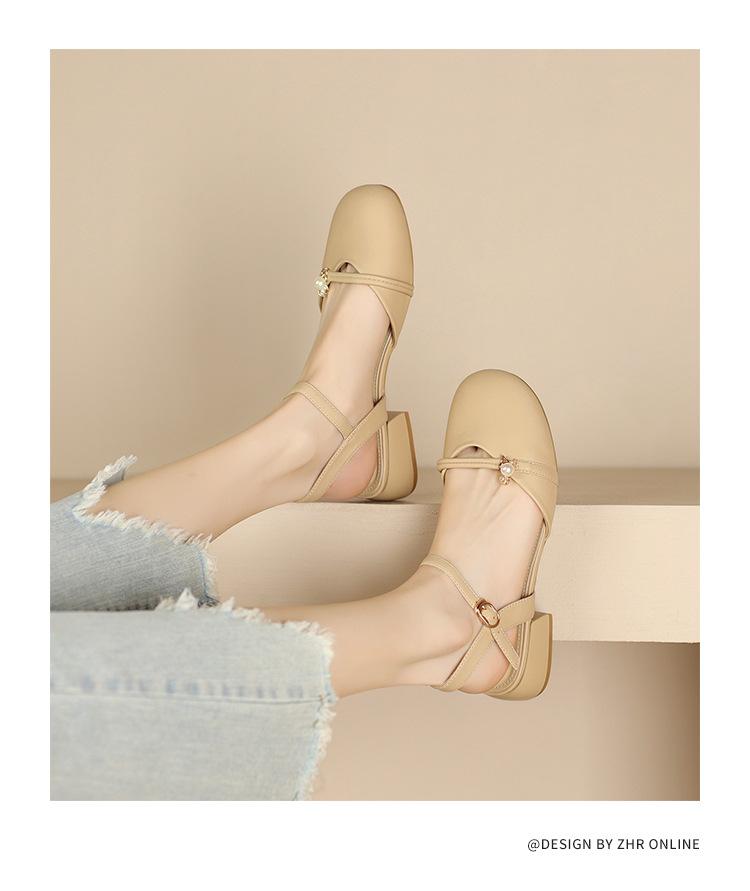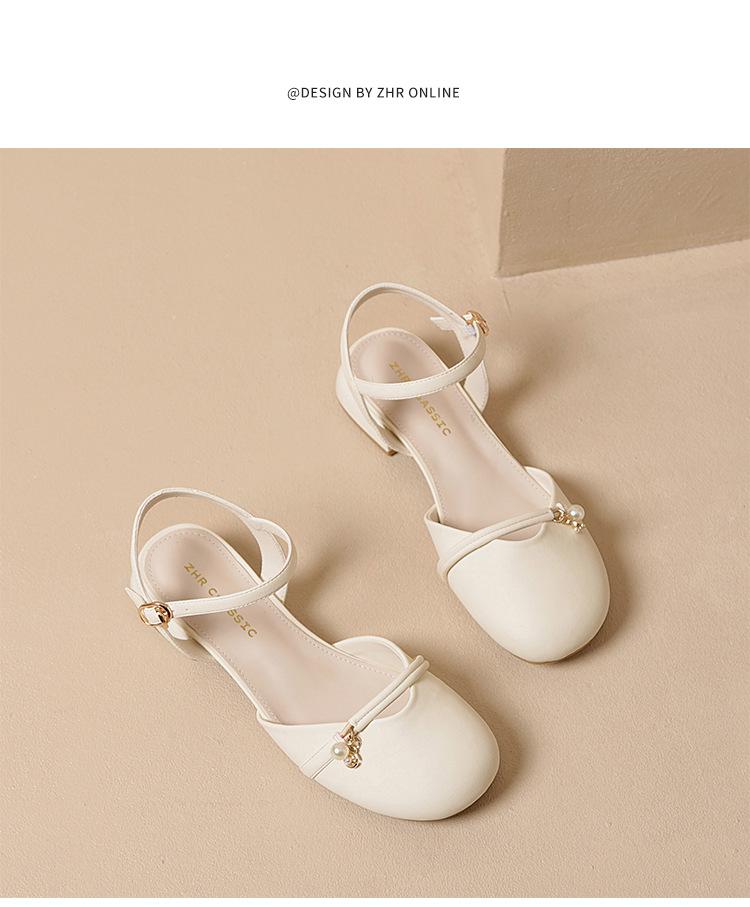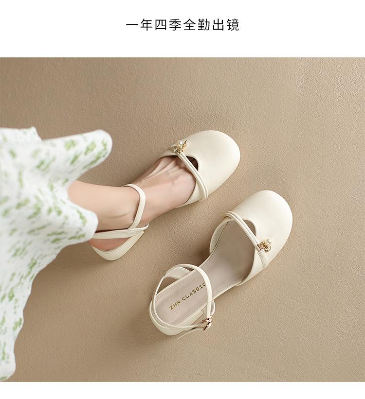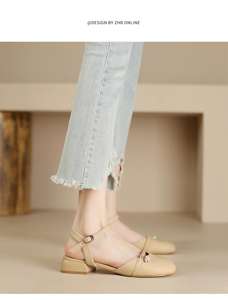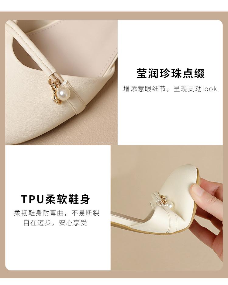 Sandalias de Punta Francesa ZHR para Mujer 2024 Nueva Moda Combinable Elegantes Sandalias Individuales Perla Dulce
