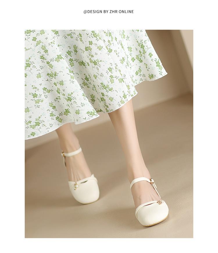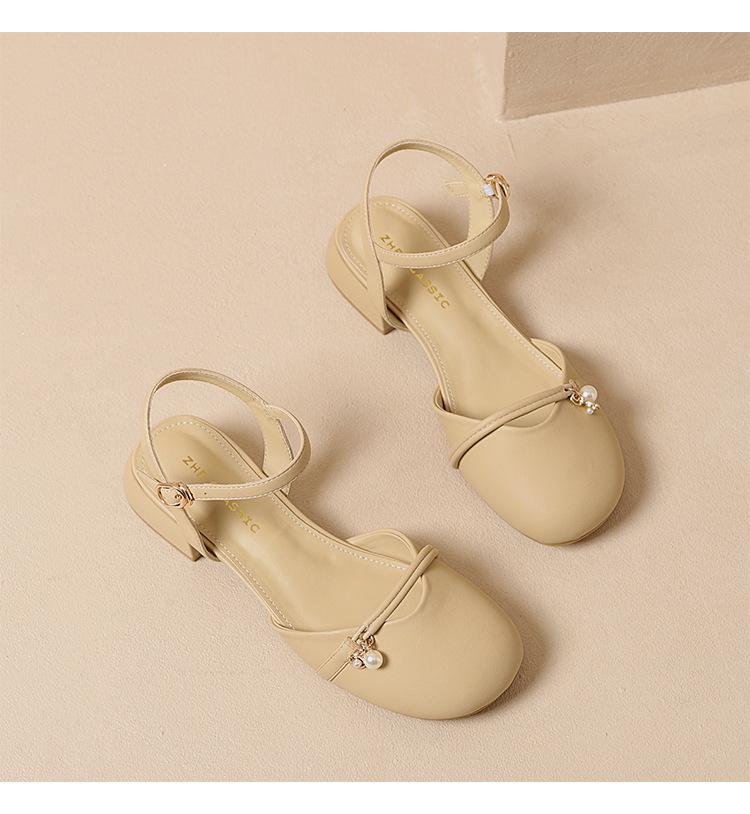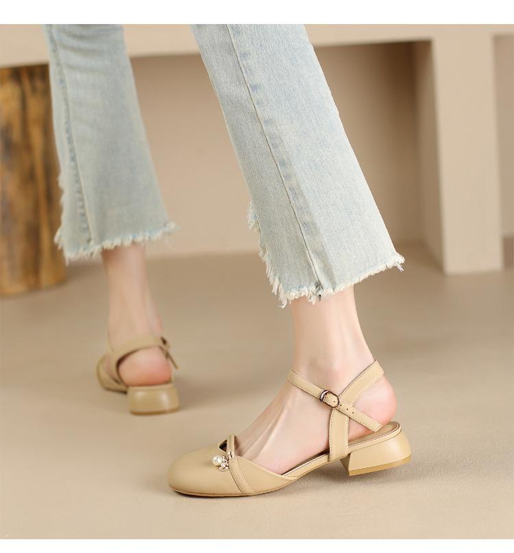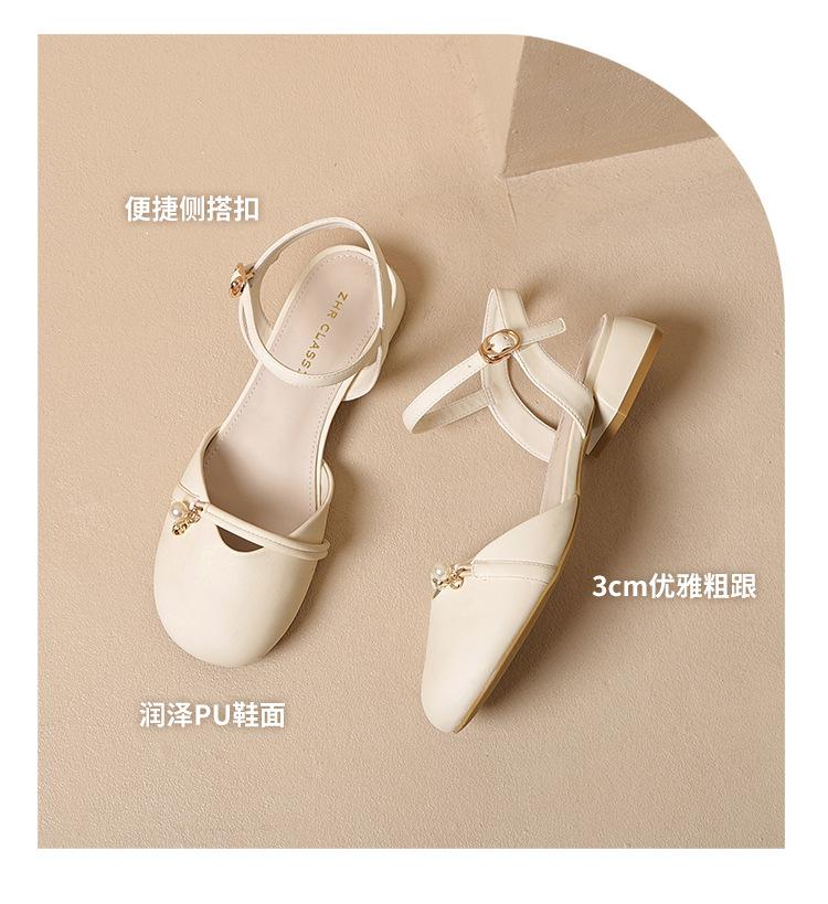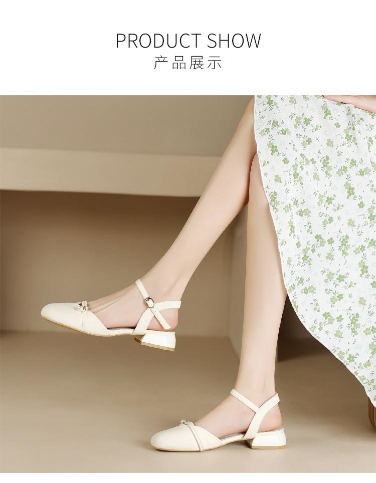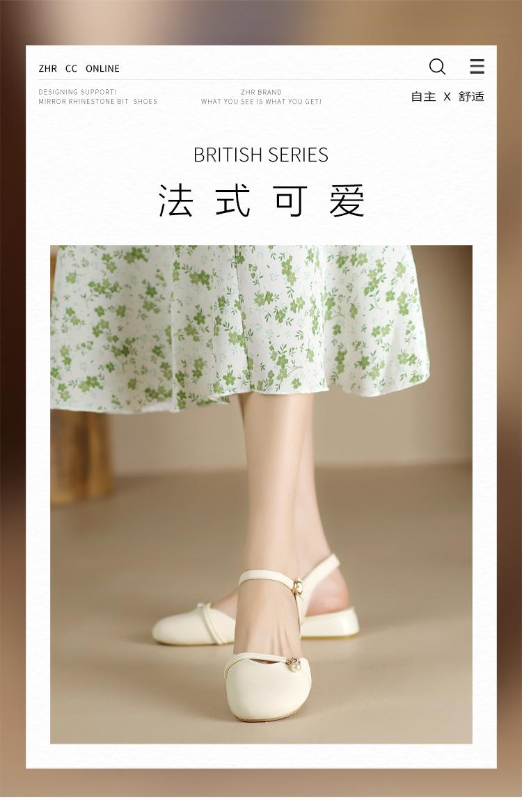 Sandalias de Punta Francesa ZHR para Mujer 2024 Nueva Moda Combinable Elegantes Sandalias Individuales Perla Dulce