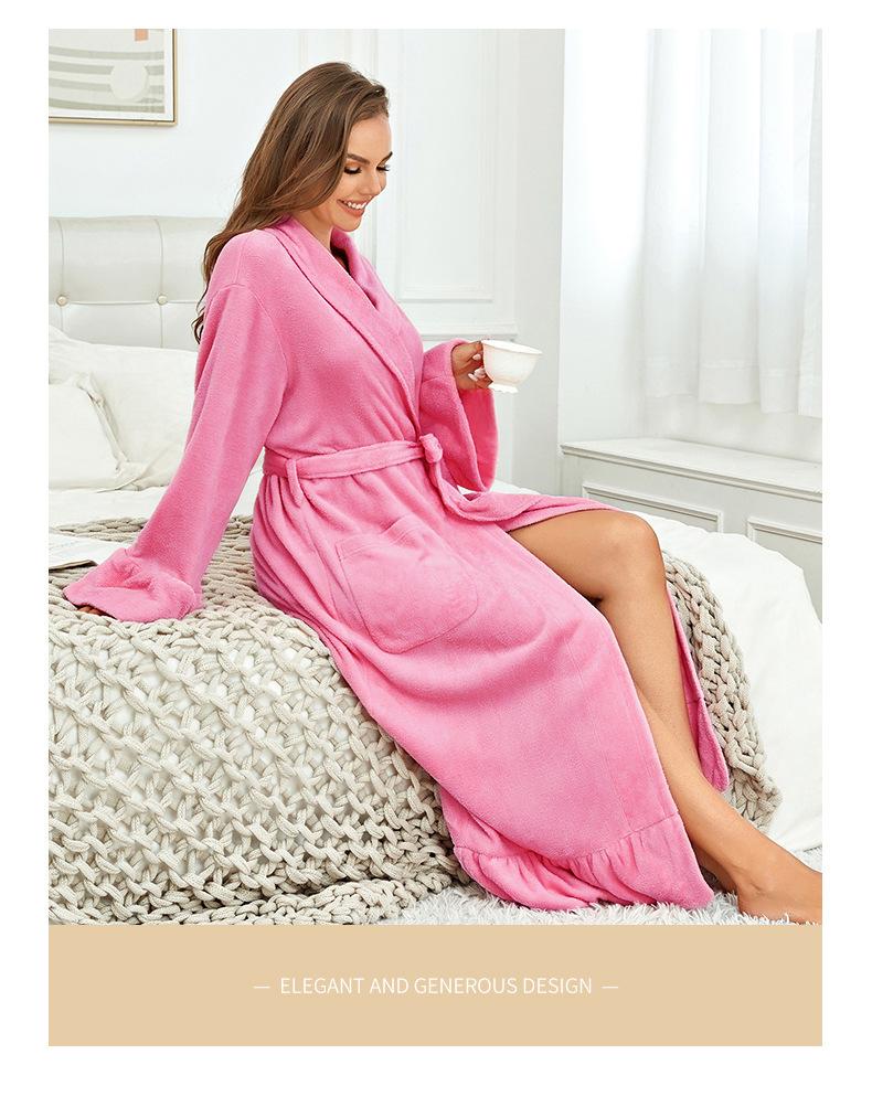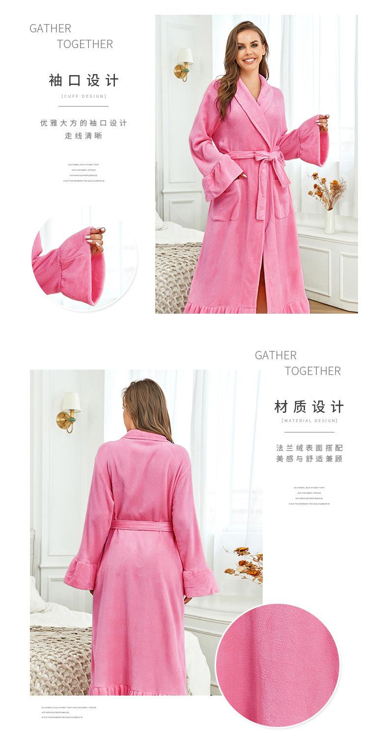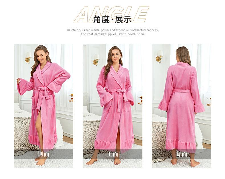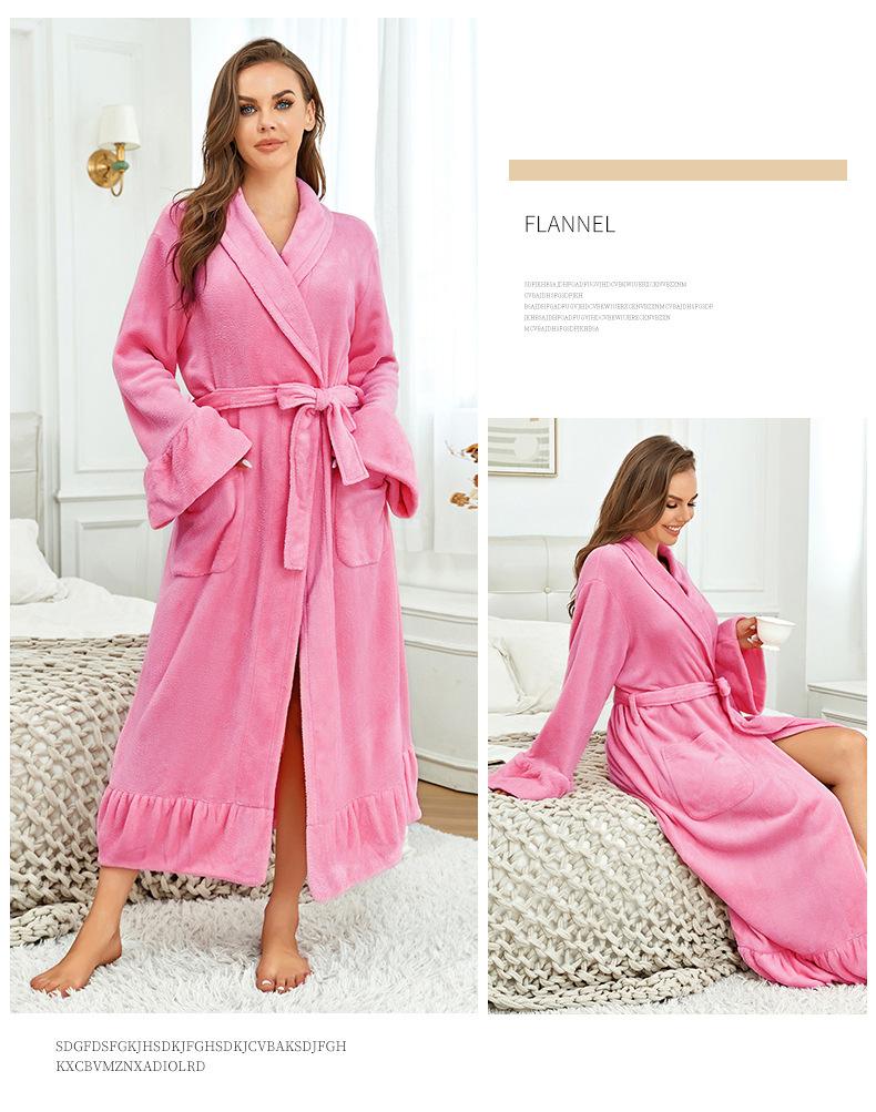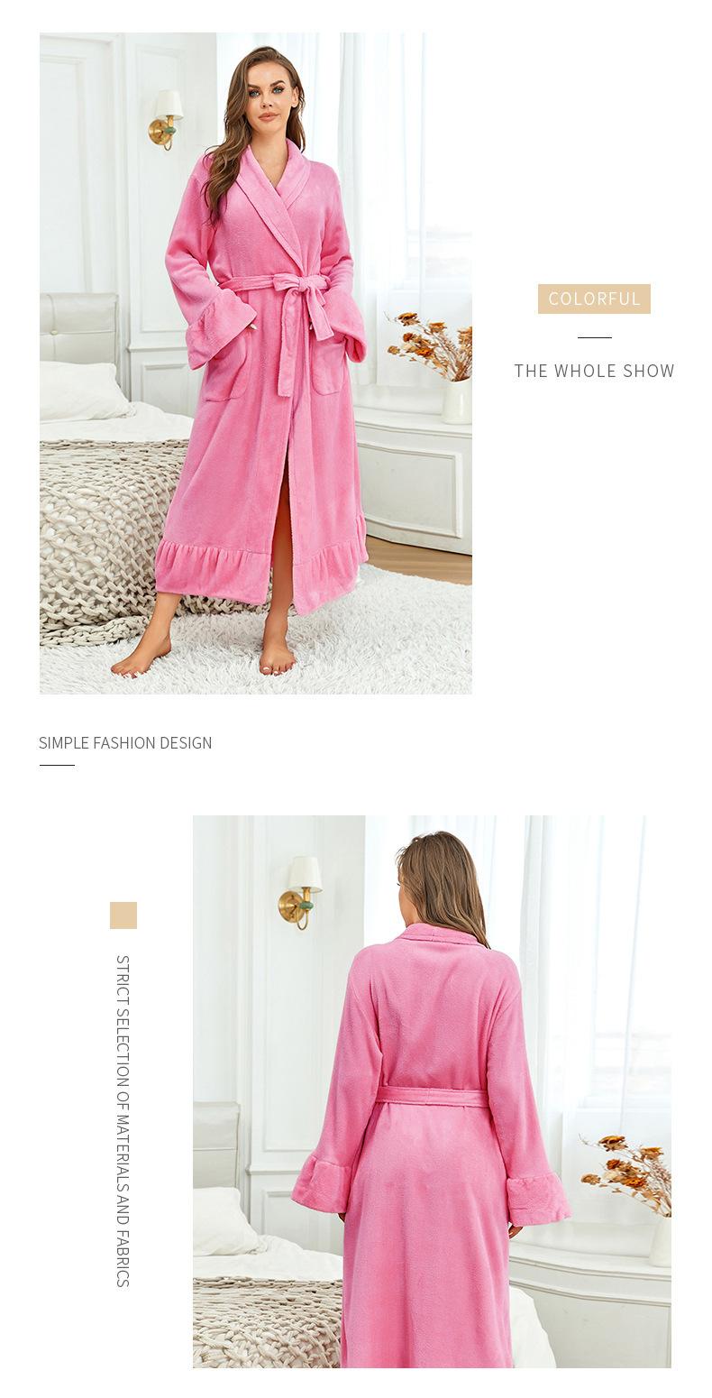 Amazon camisón rosa de franela largo con volantes de otoño e invierno ropa de casa transfronteriza bata de hotel para mujer