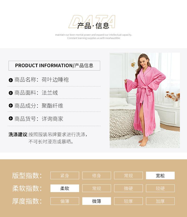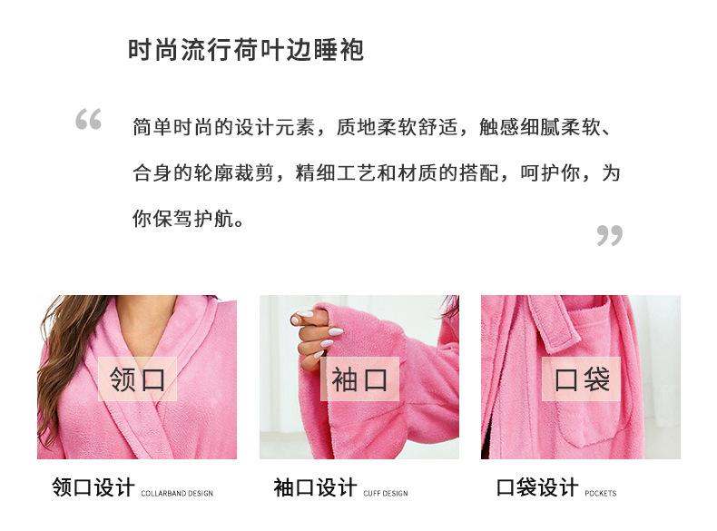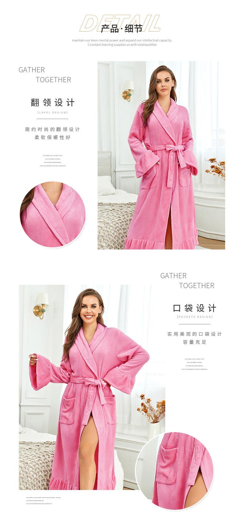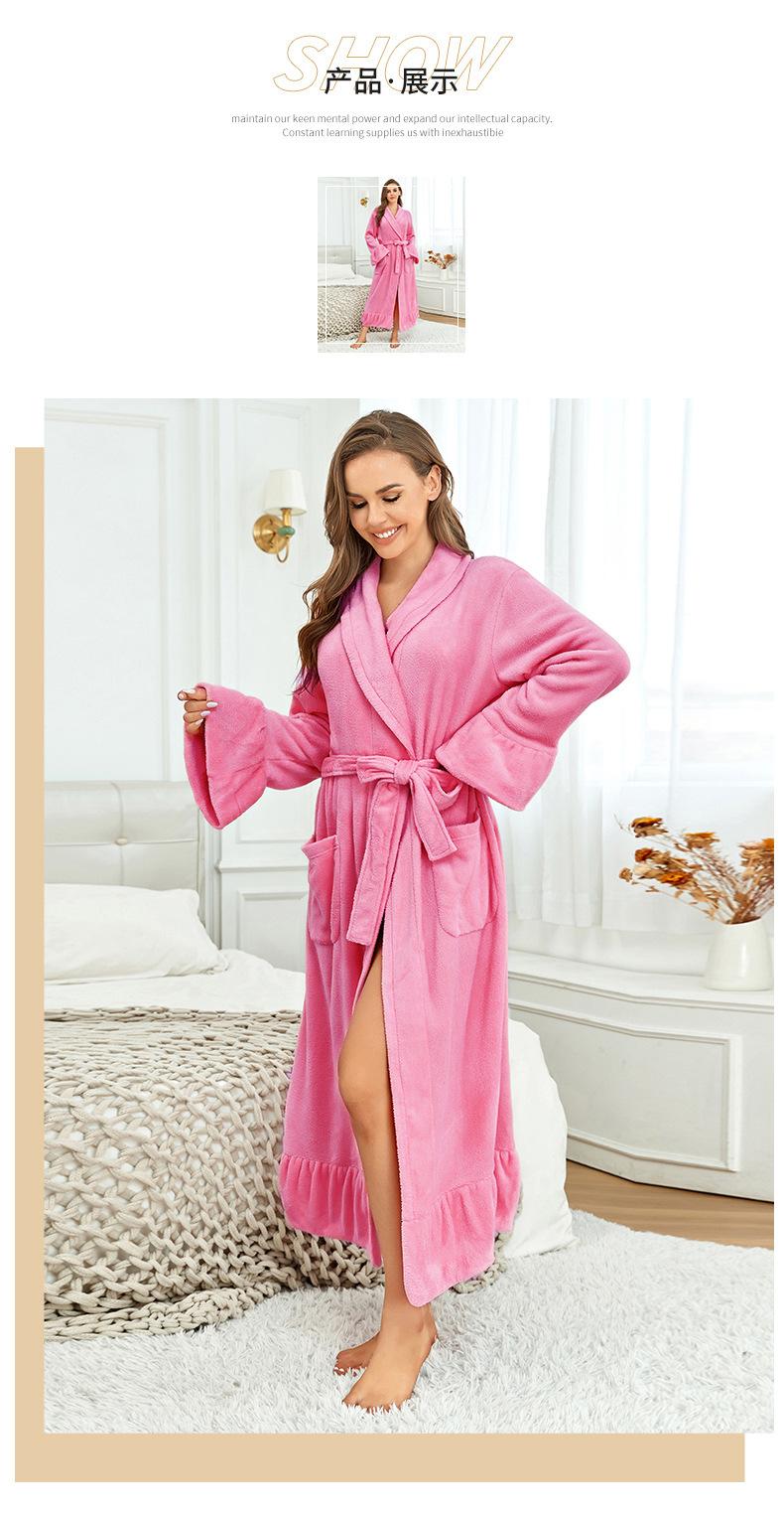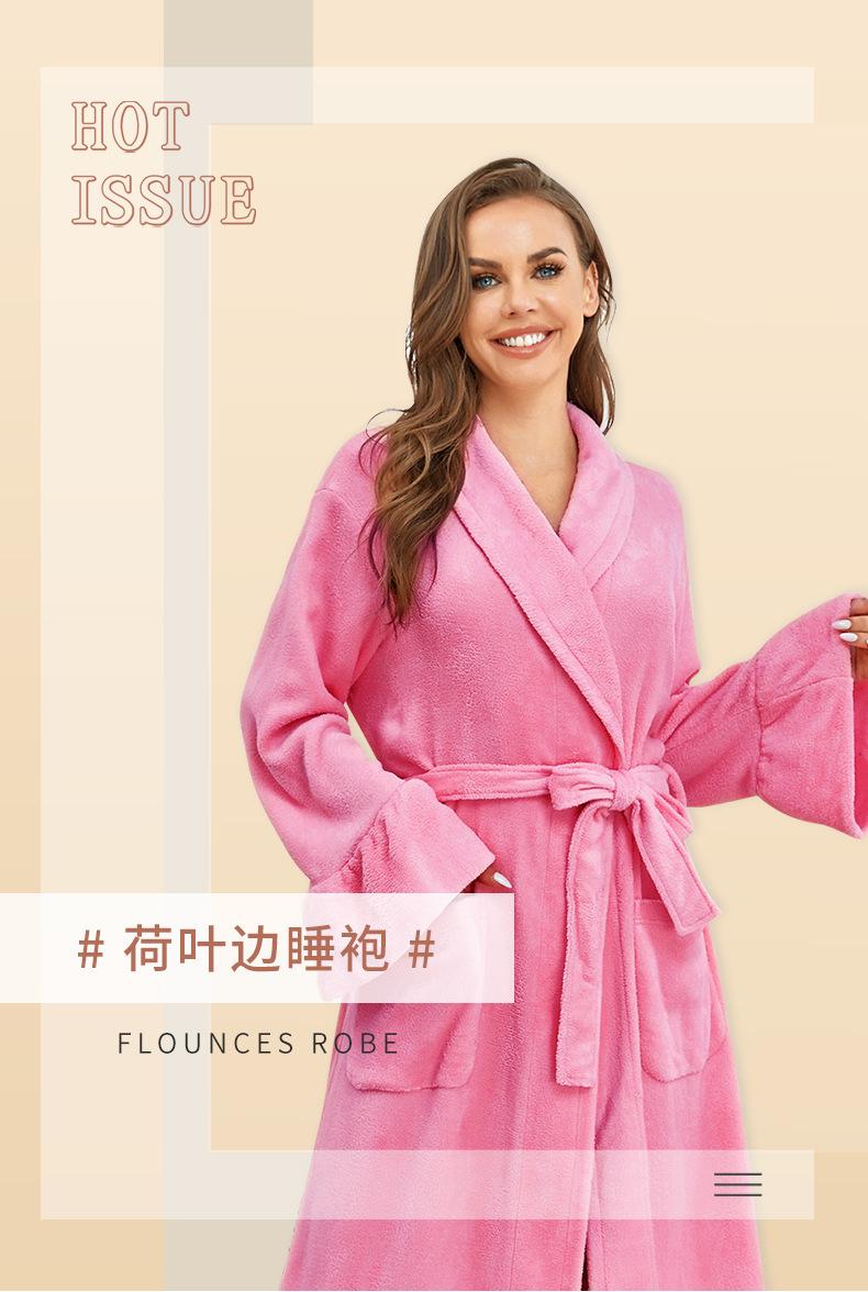 Amazon camisón rosa de franela largo con volantes de otoño e invierno ropa de casa transfronteriza bata de hotel para mujer