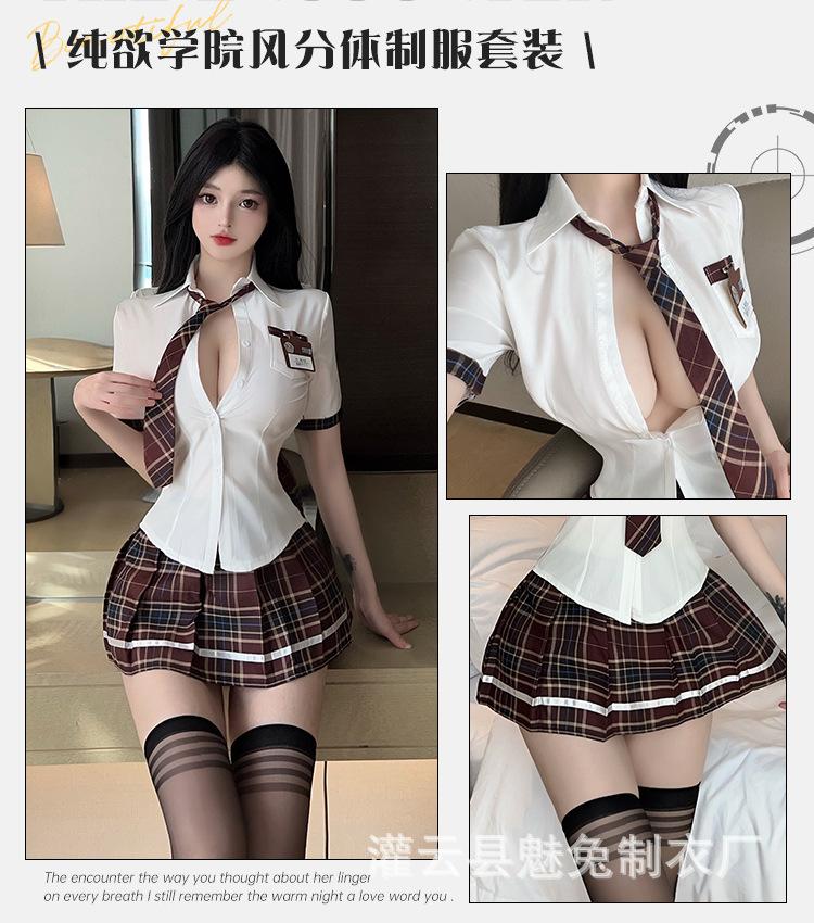 Encantadora lencería sexy de conejo estilo universitario, traje de uniforme de estudiante jk sexy, falda plisada de puro deseo, uniforme gratis 8302