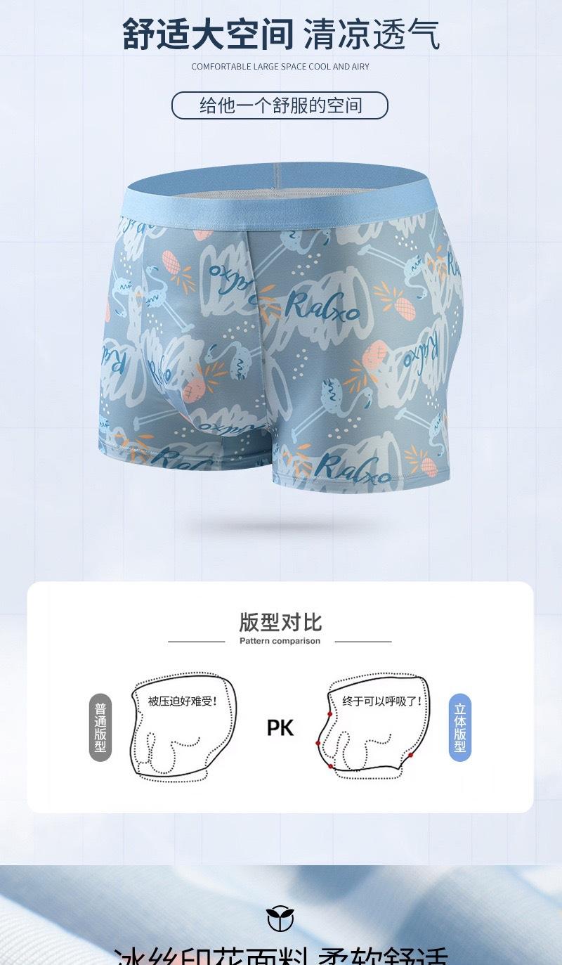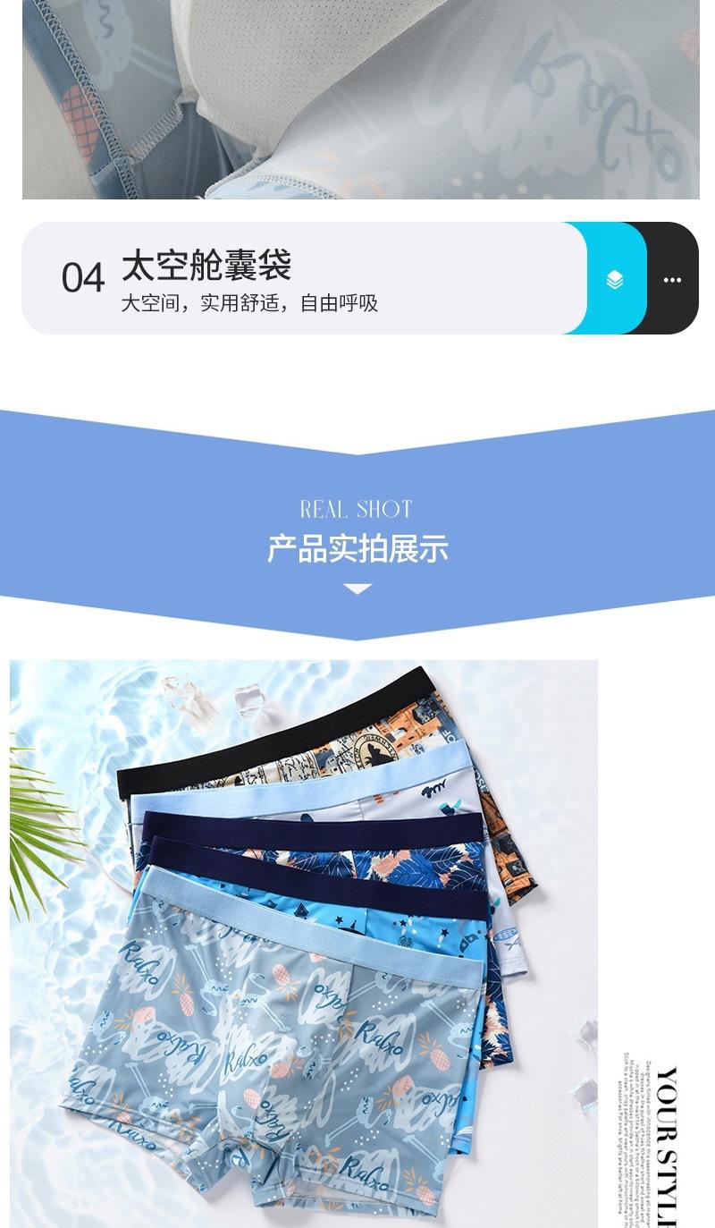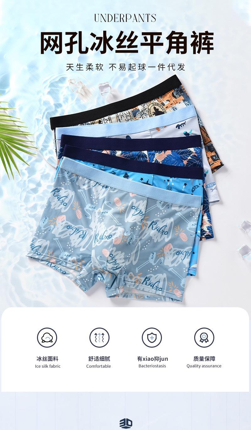 Nueva ropa interior de seda de hielo para hombre, bóxer de verano, pantalones cortos ultrafinos frescos, ropa interior fina con estampado de moda, venta al por mayor