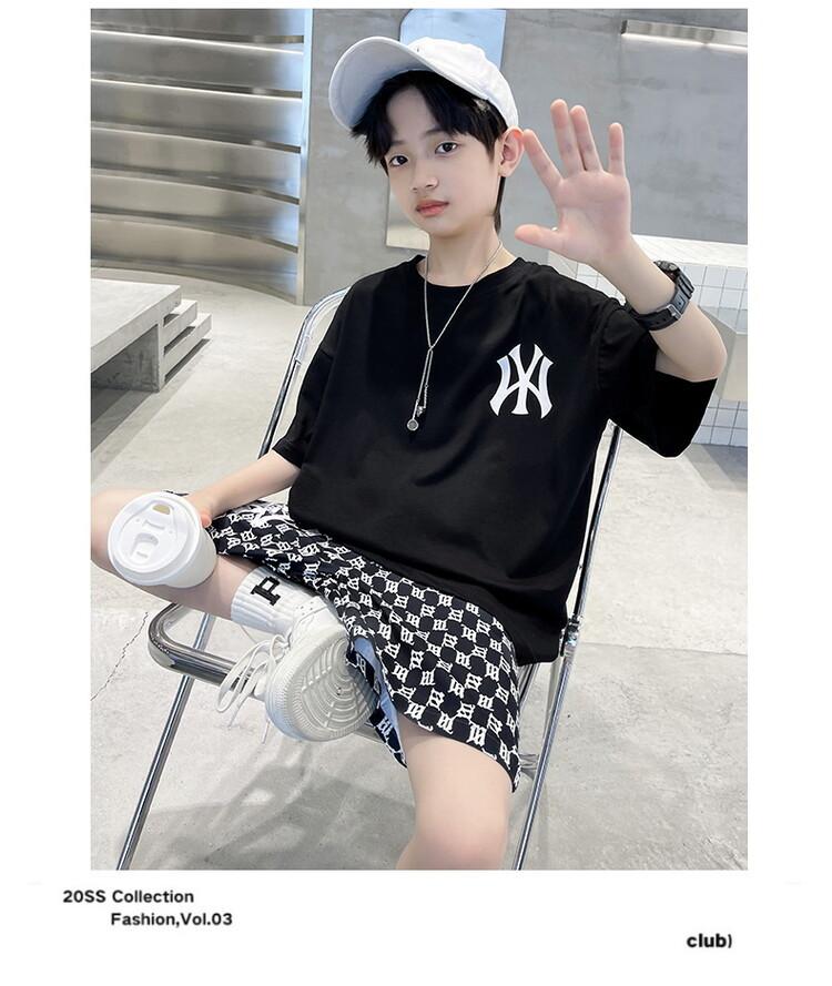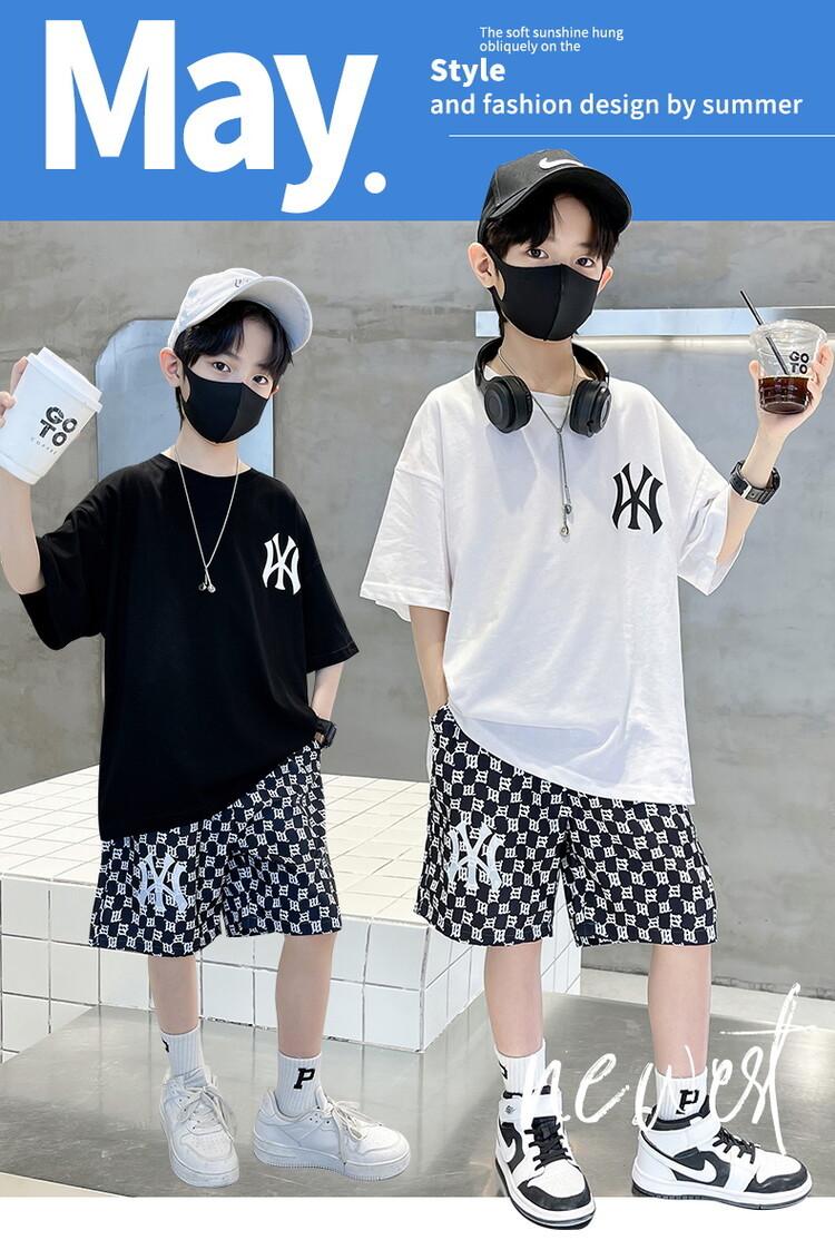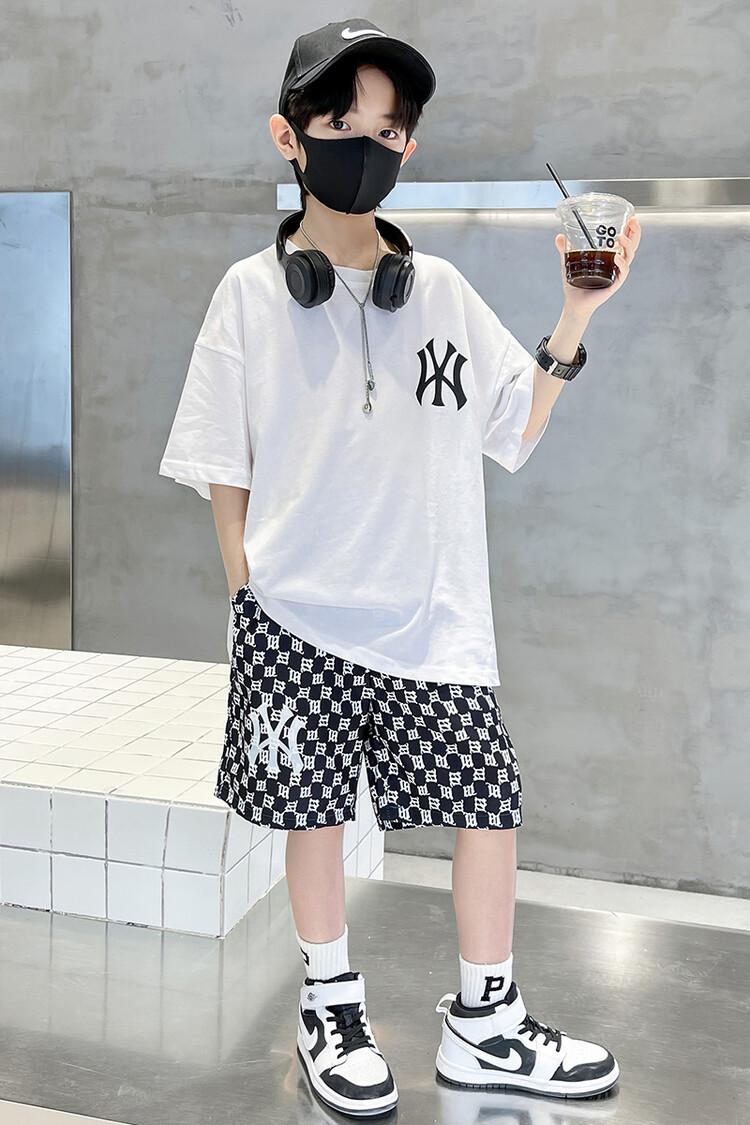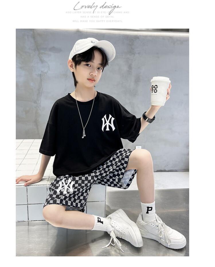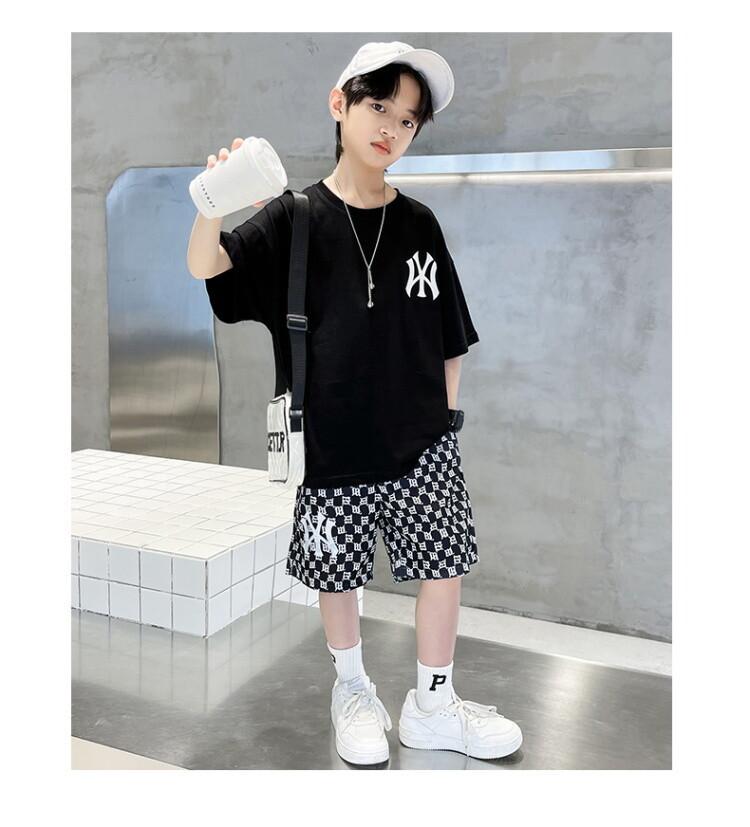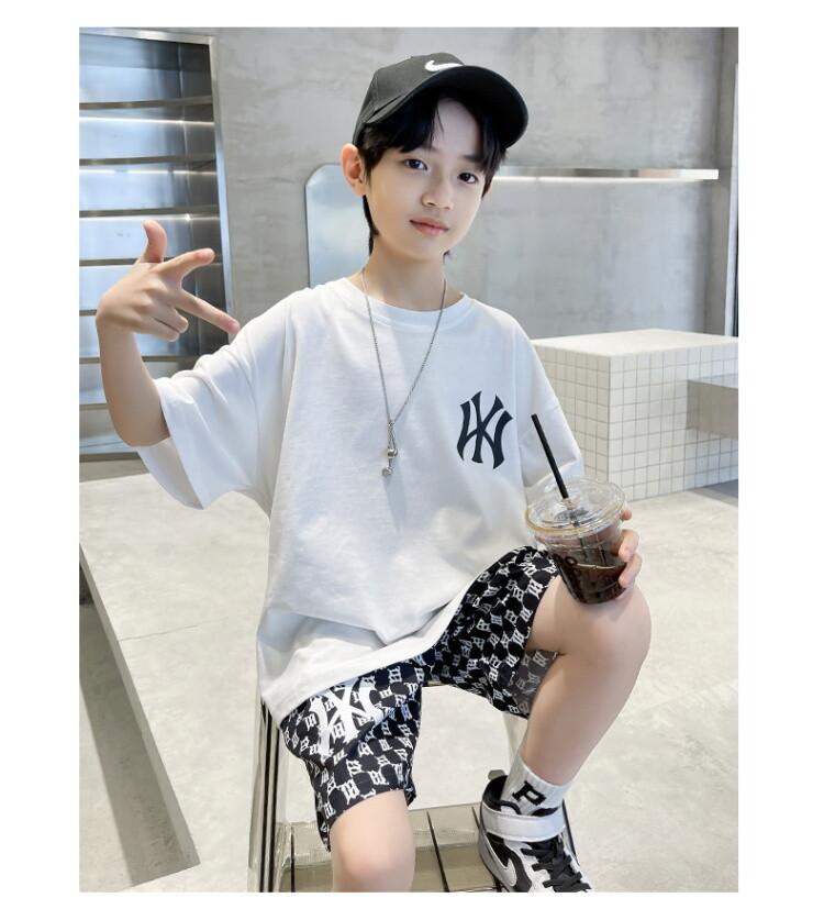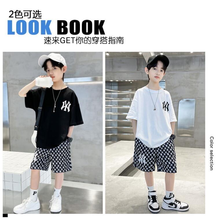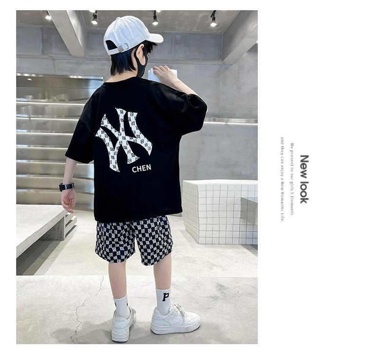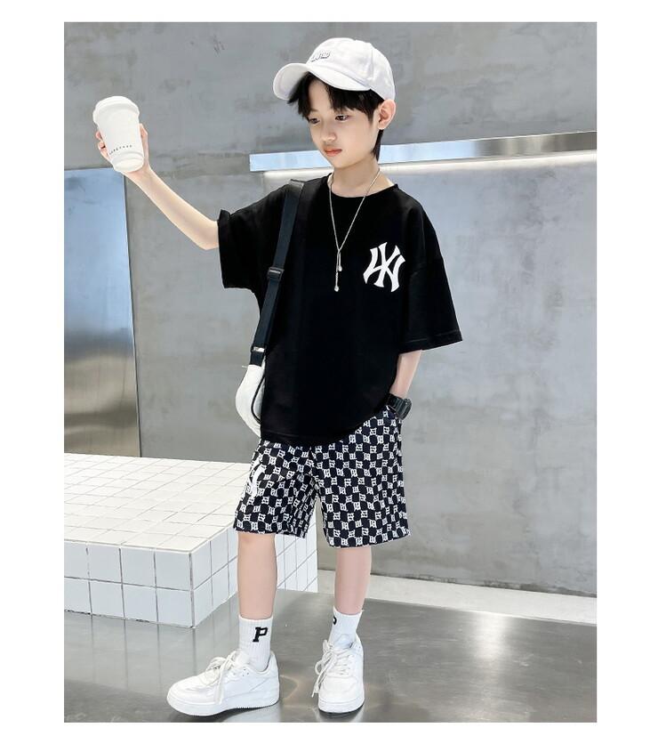 Conjunto de letras wY para niño, verano 2023, nuevo conjunto de dos piezas moderno y atractivo para niños de talla mediana y grande, ropa de comercio exterior para niños.