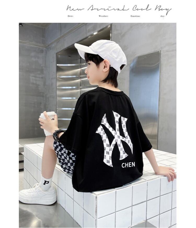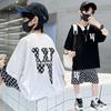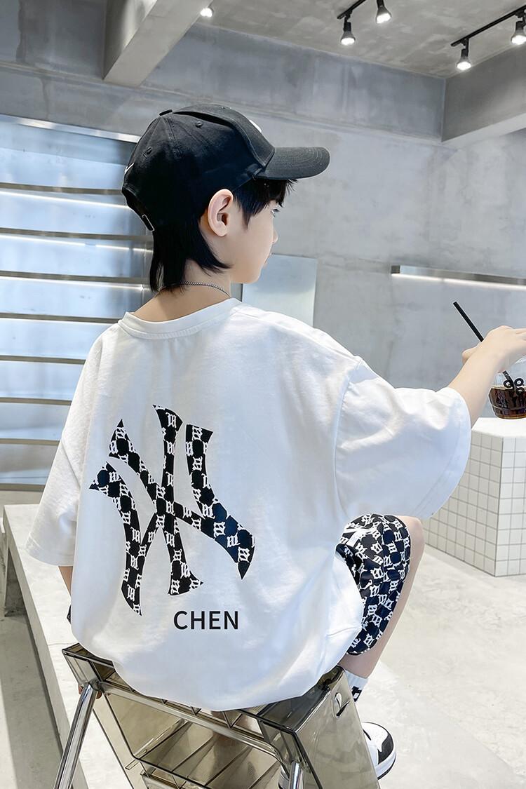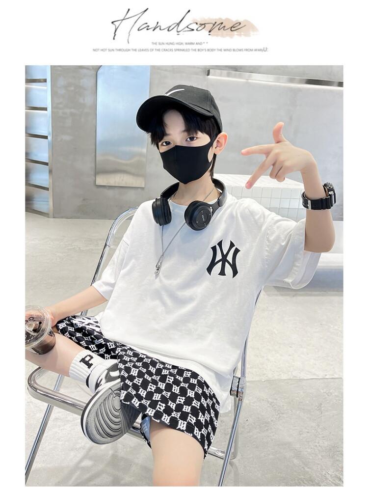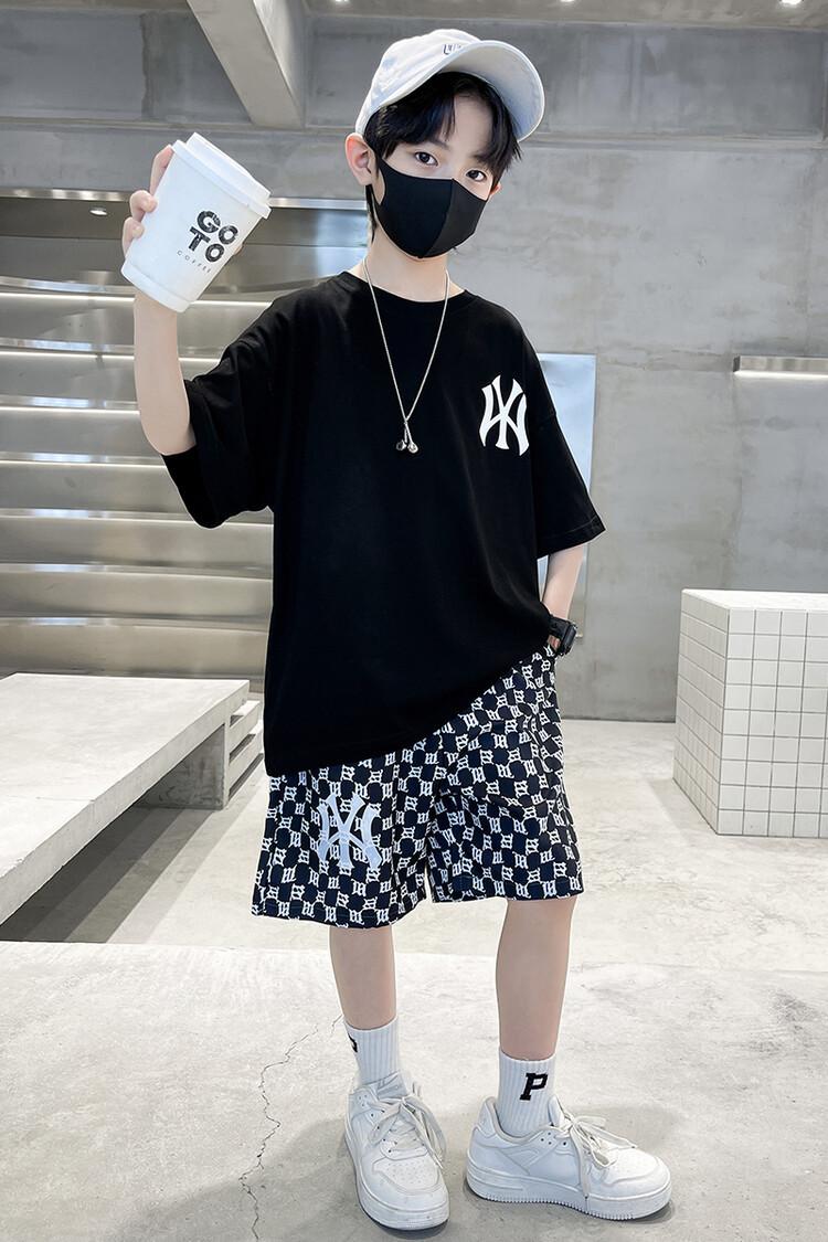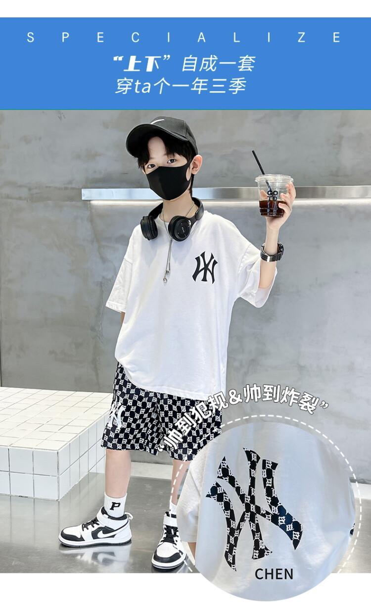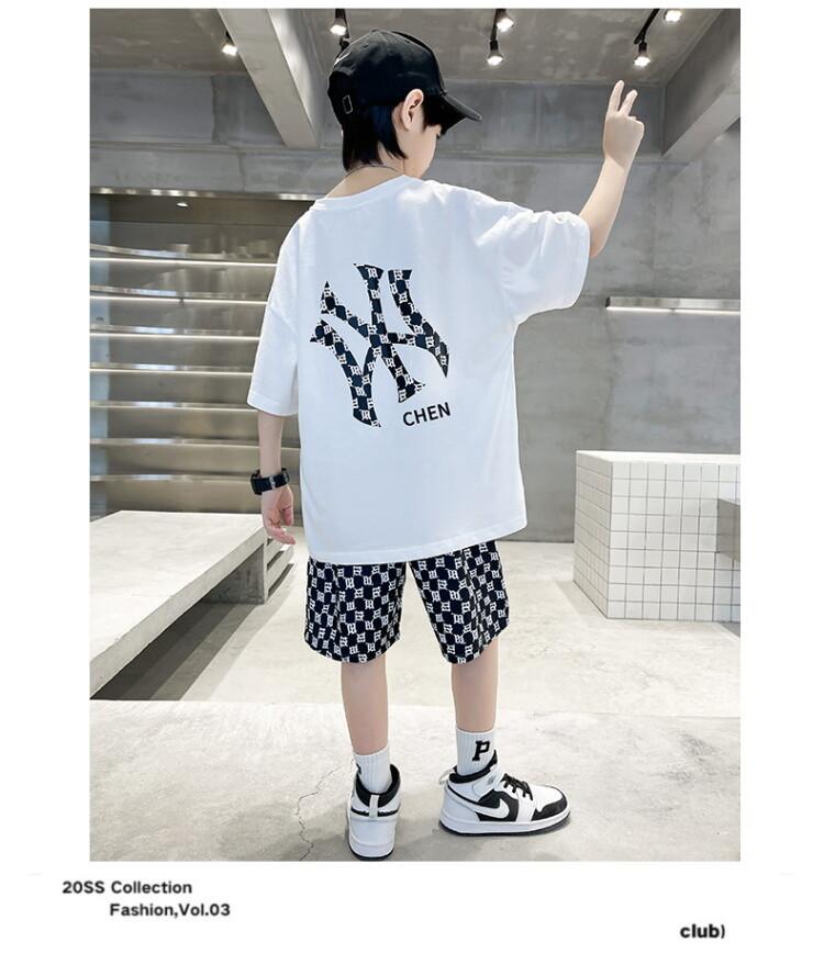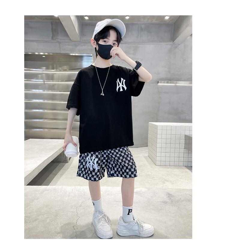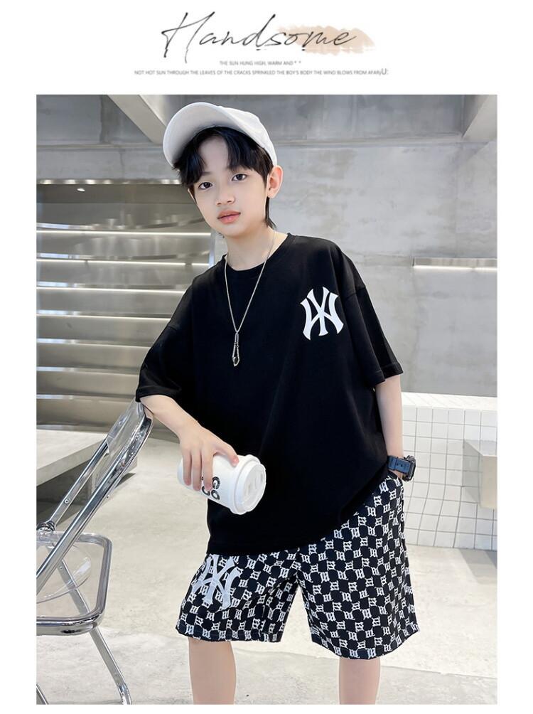 Conjunto de letras wY para niño, verano 2023, nuevo conjunto de dos piezas moderno y atractivo para niños de talla mediana y grande, ropa de comercio exterior para niños.