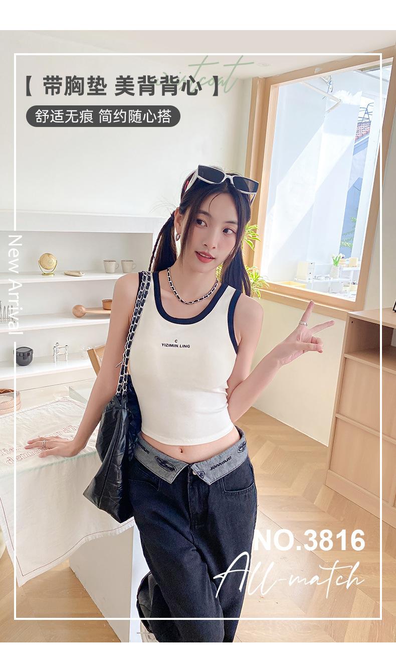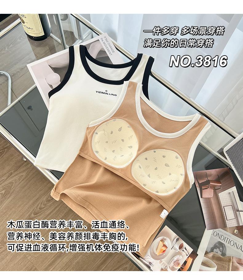 Chaleco de algodón para mujer ropa interior con almohadilla en el pecho top corto sin mangas para mujer verano ombligo descubierto fondo se puede usar afuera deportes pecho envuelto