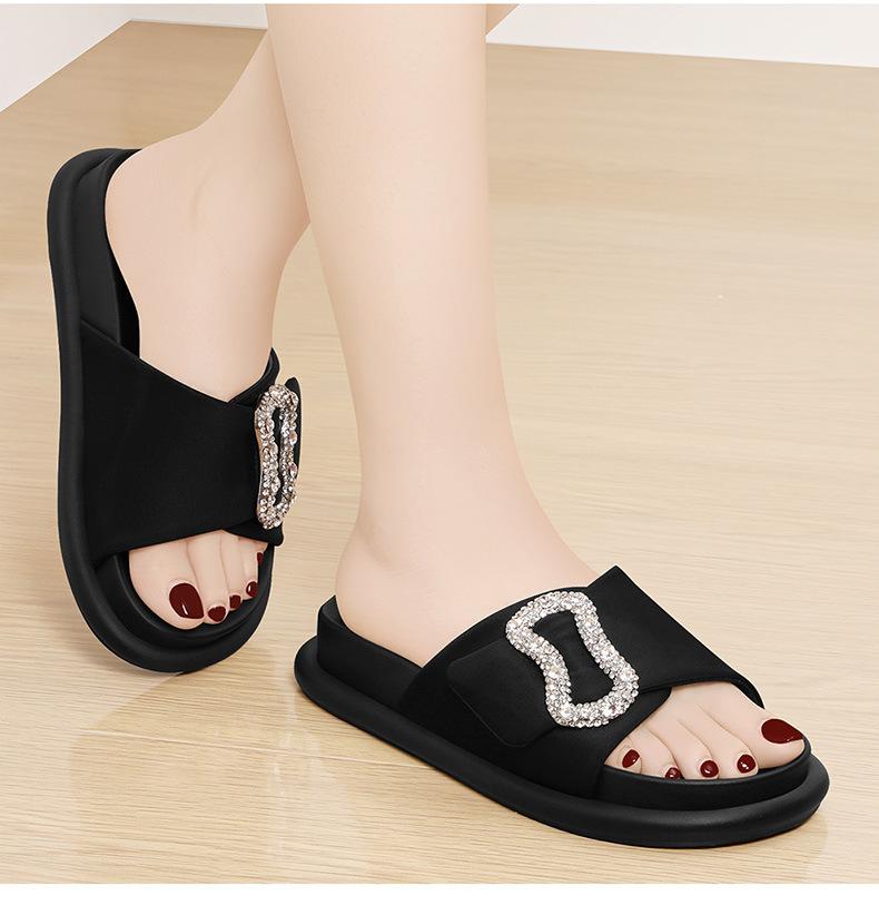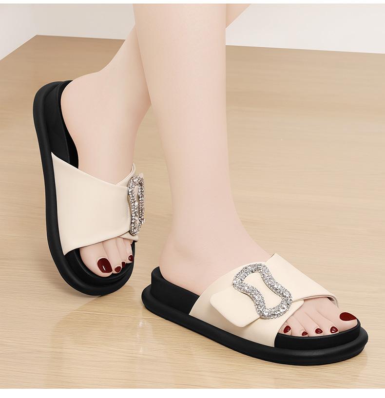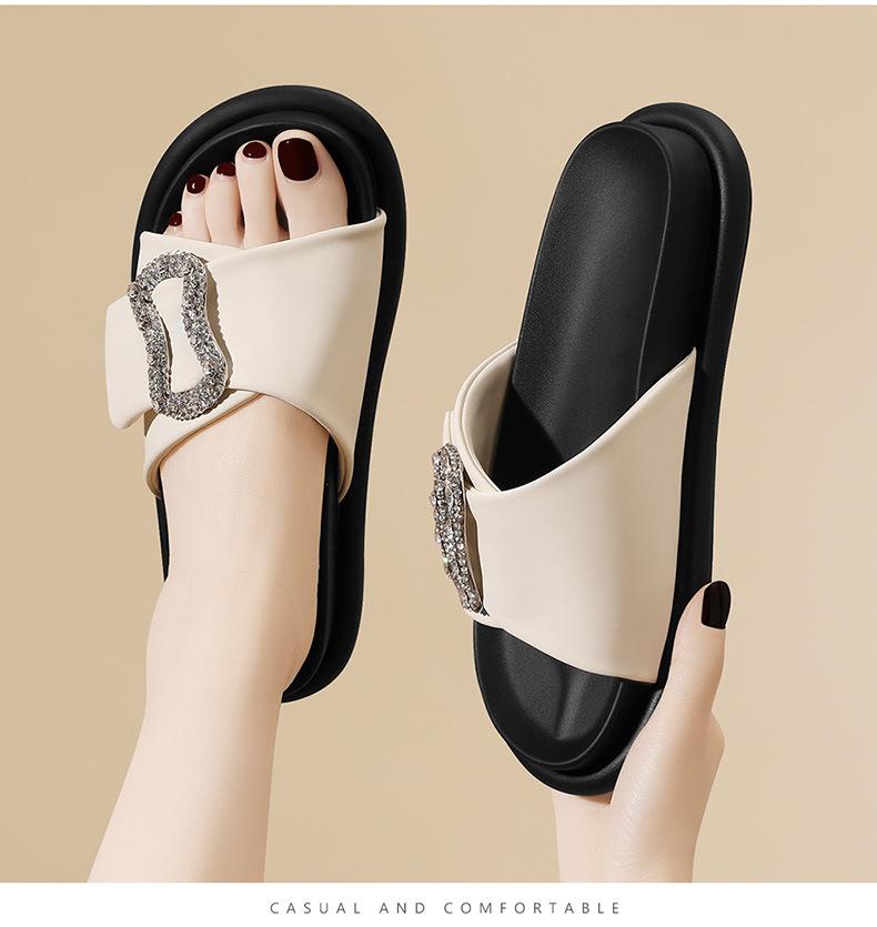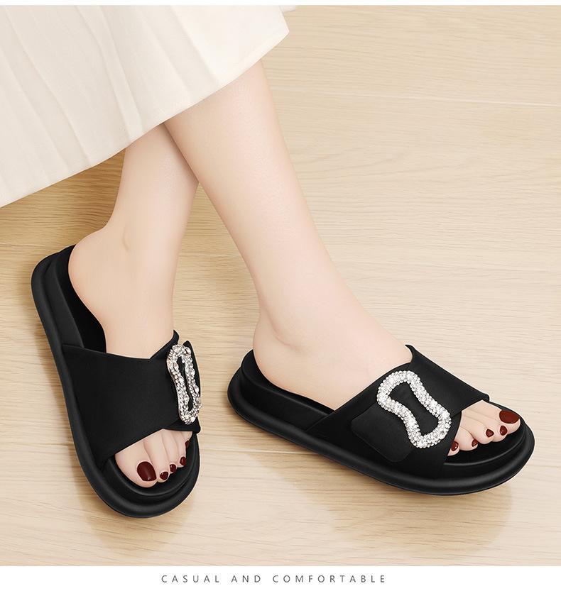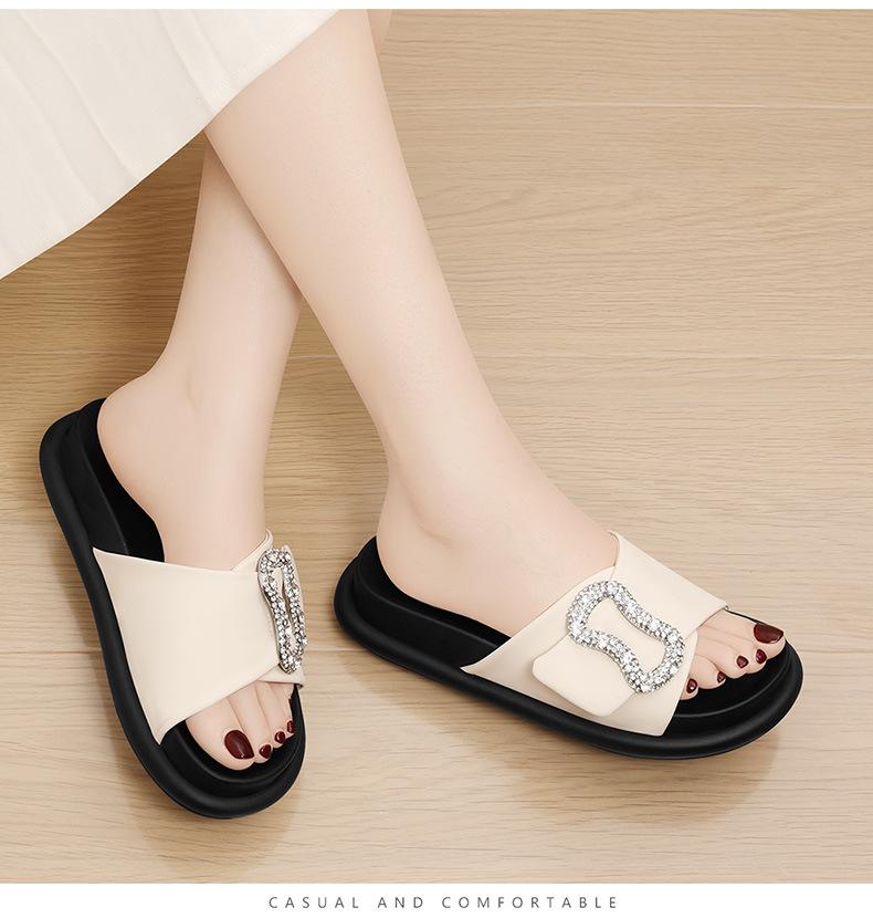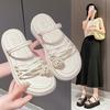 Pantuflas gruesas con cristales cruzados para mujer, combinables con todo, para verano 2024