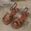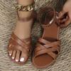 Sandalias planas de moda nueva de primavera y verano al por mayor, sandalias romanas cruzadas versátiles de moda planas cómodas