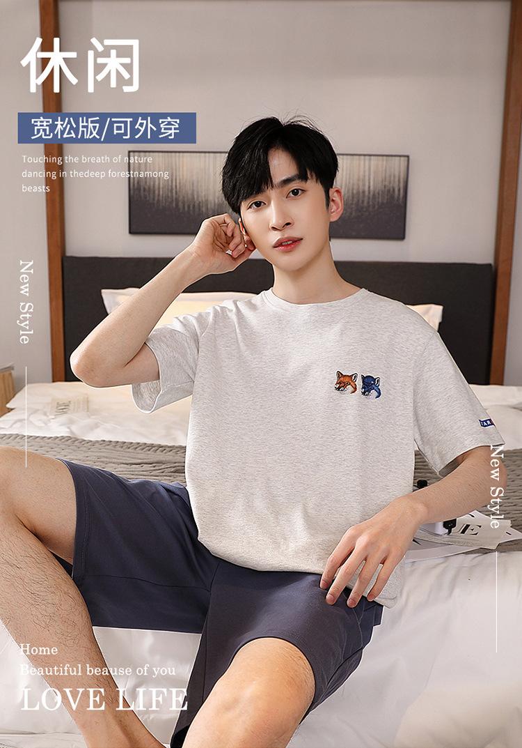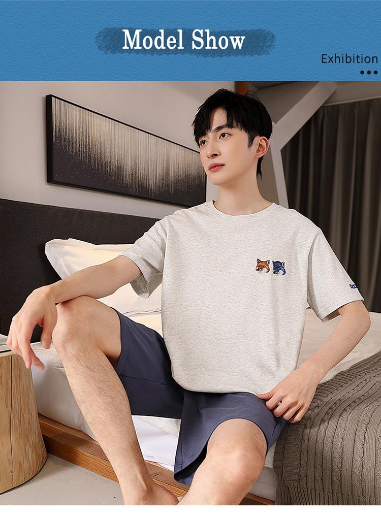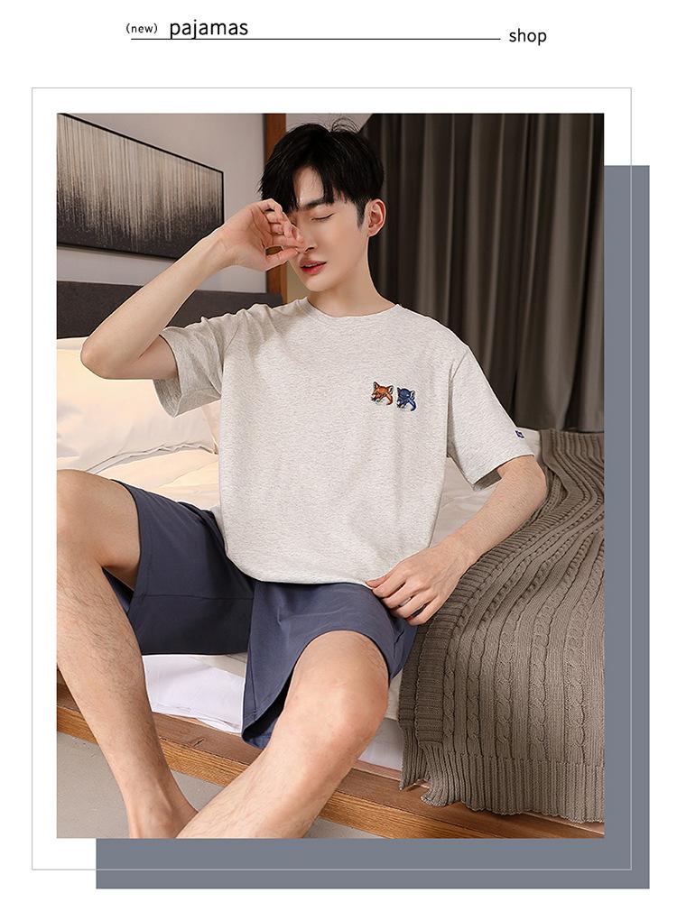 Pijama para hombre Casual Verano Algodón Puro Simple Manga Corta Talla Grande Juvenil Ropa para el Hogar Se Puede Usar Afuera Traje Algodón Puro Transpirable