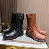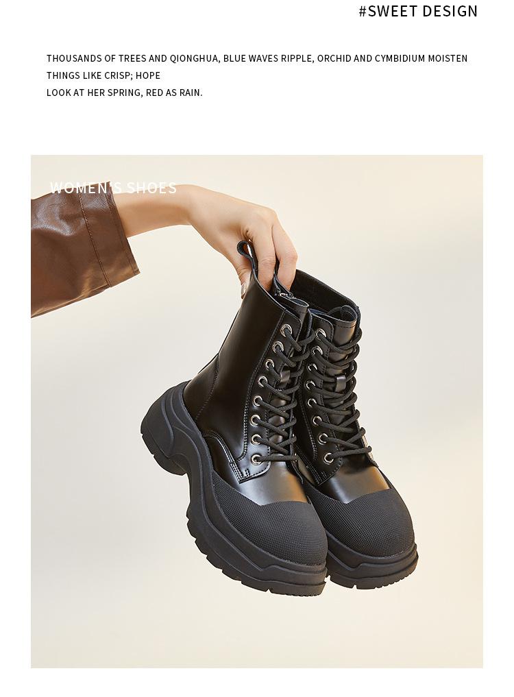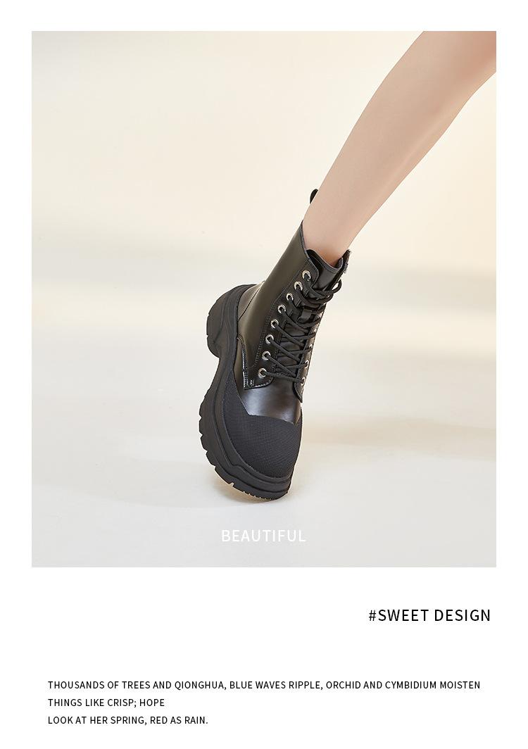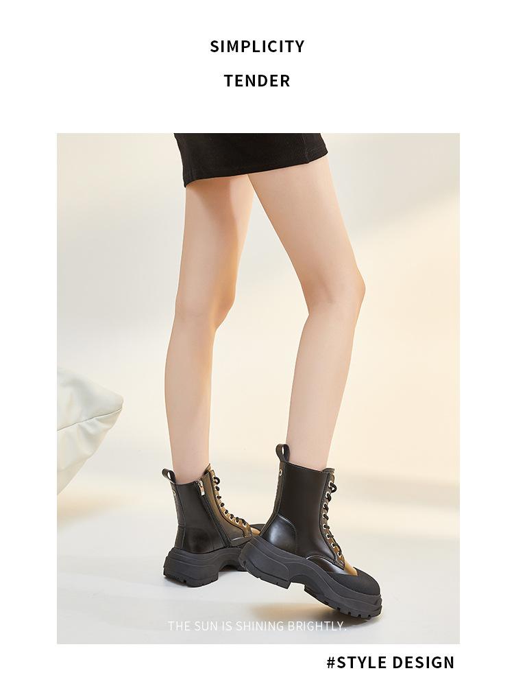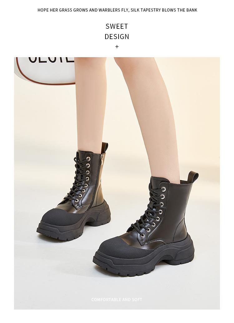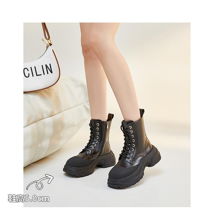 Botas Martin de piel auténtica para mujer, suela gruesa, nuevas 2023, forradas de vellón, punta cerrada, estilo coreano, botas de media caña con cordones, botas de caballero, botas delgadas para mujer
