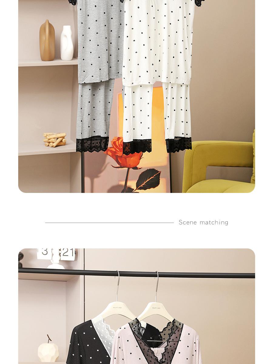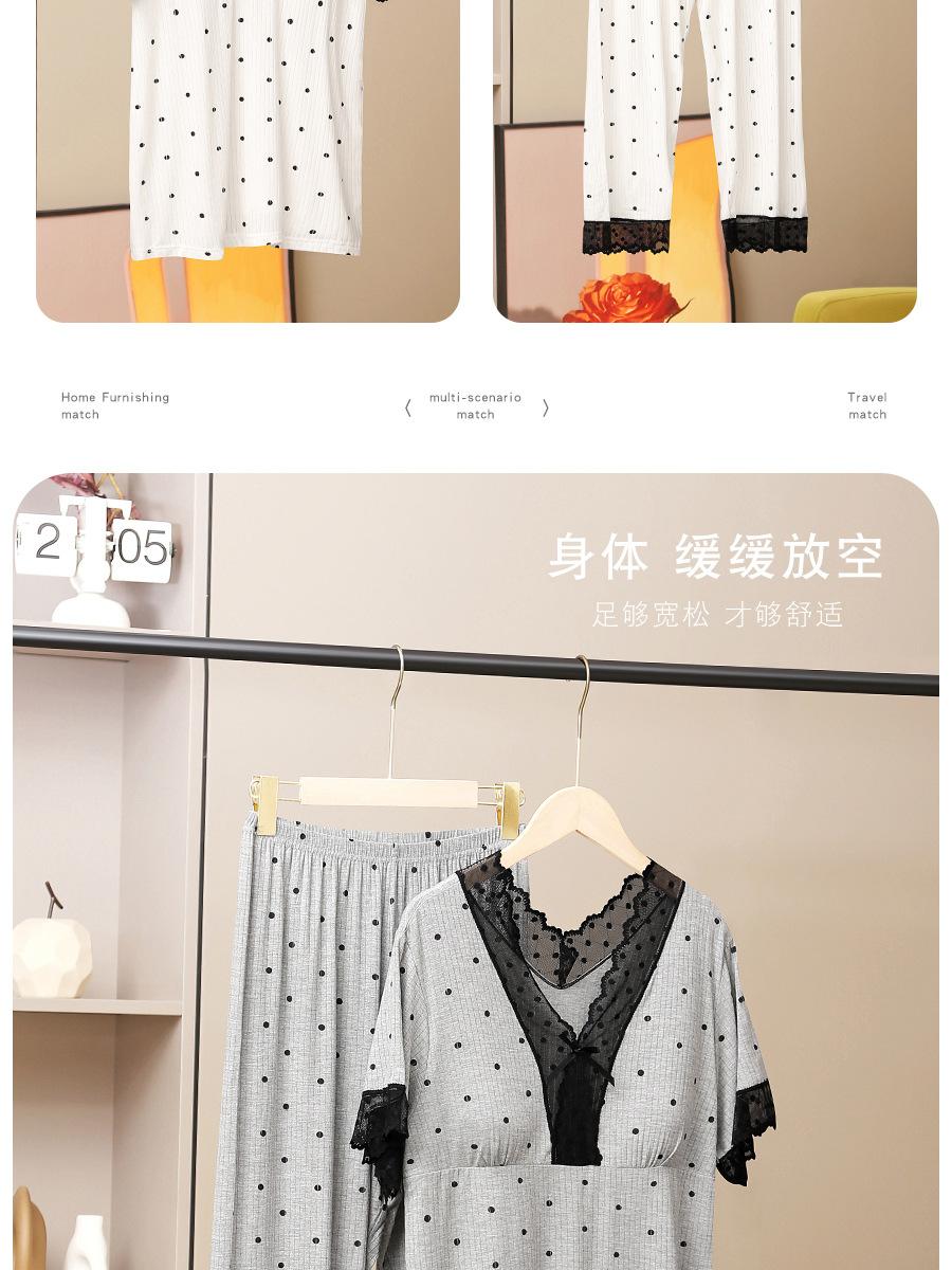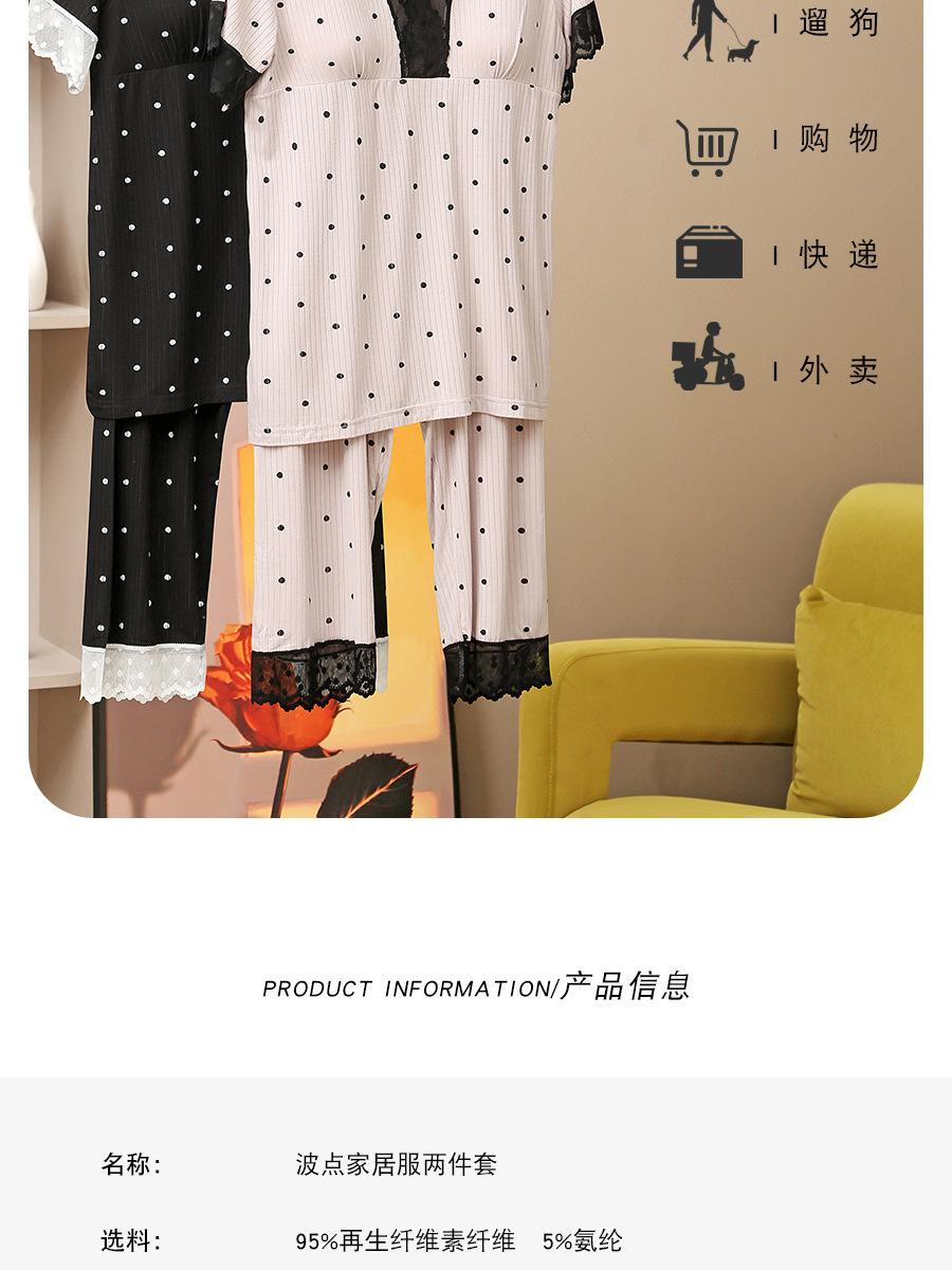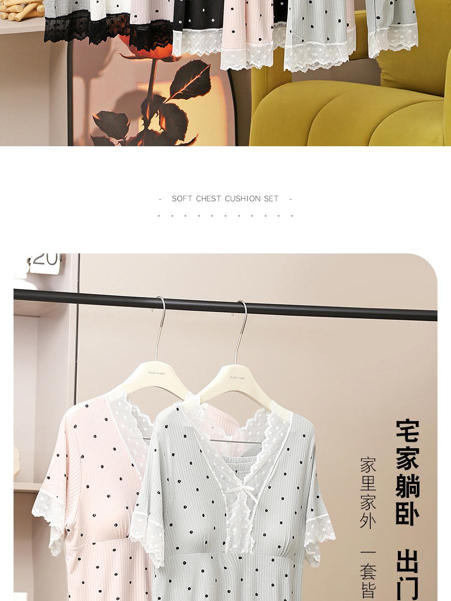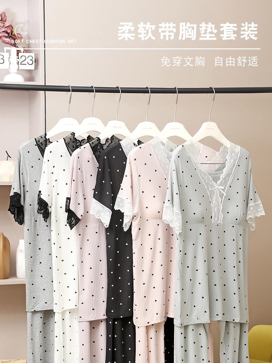 Venta al por mayor de fábrica Verano para mujer Pijama con almohadilla Traje Ropa para el hogar Cuello en V Encaje Elástico Moda Onda Punto Ropa Exterior