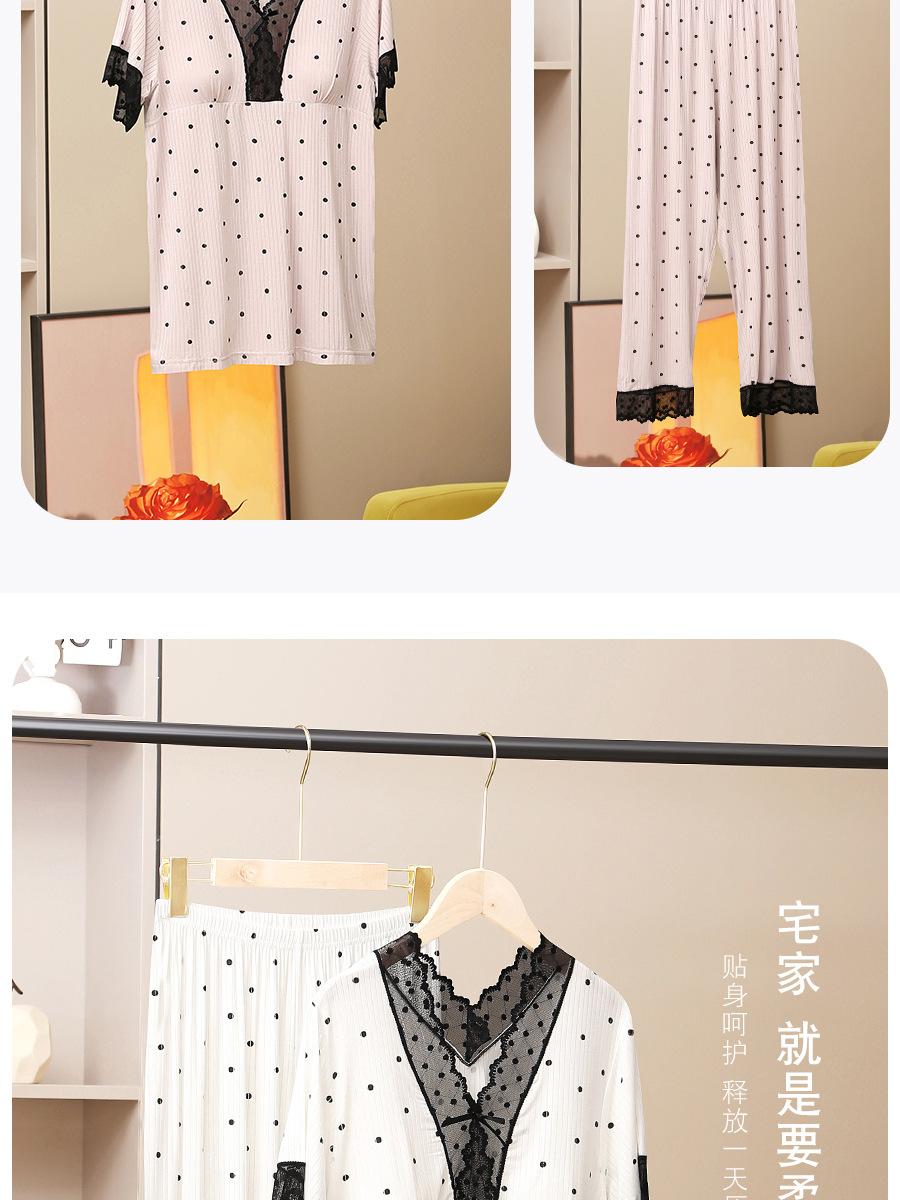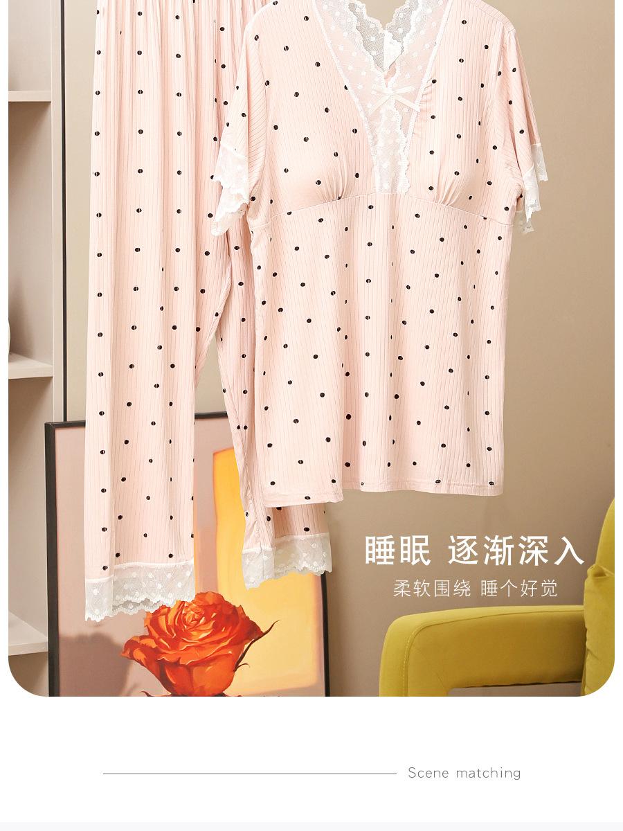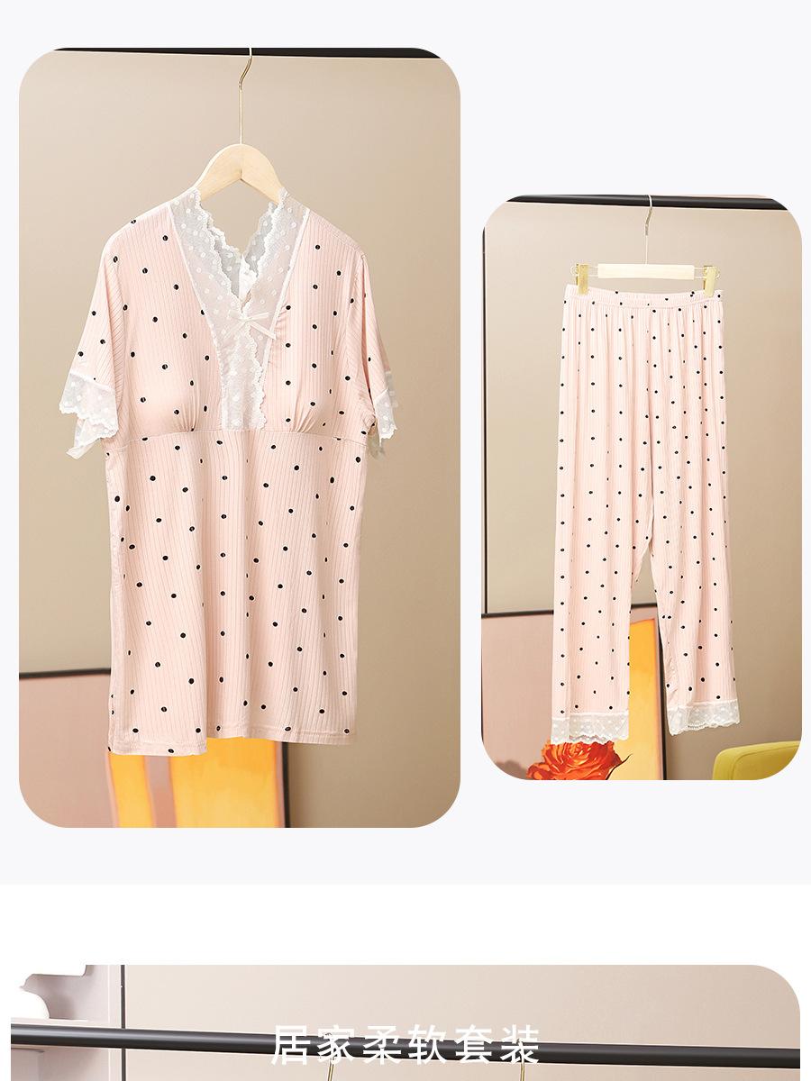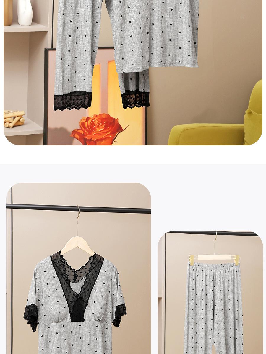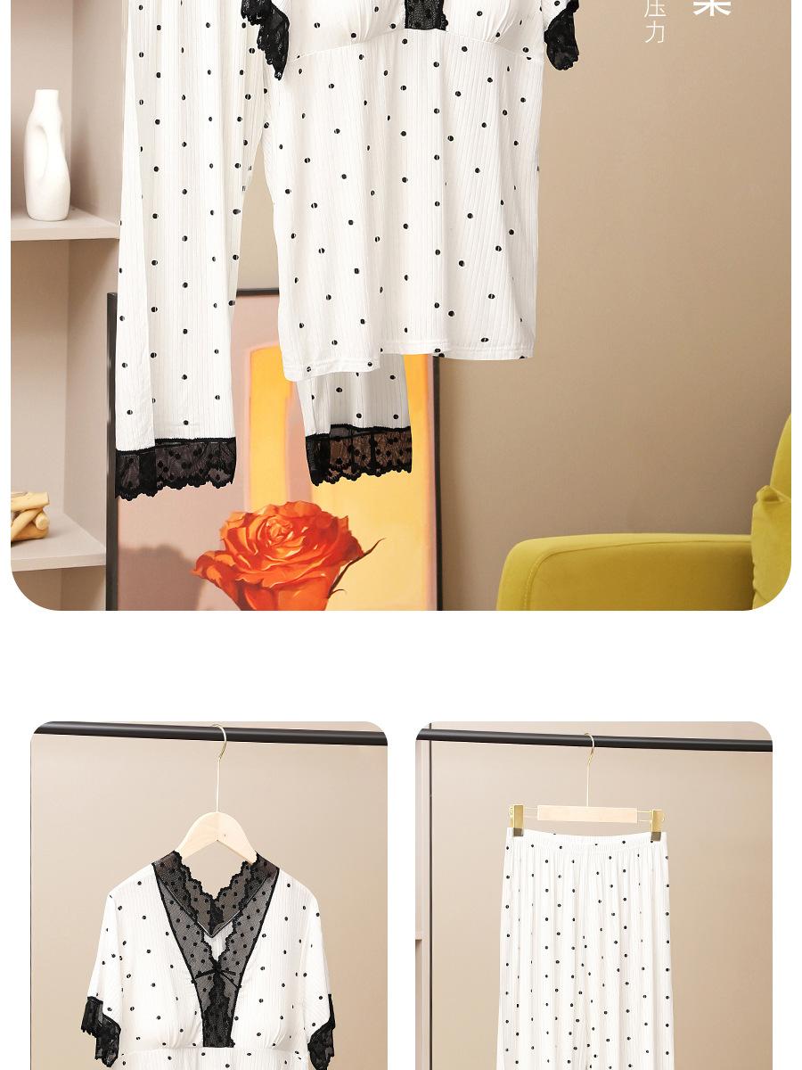 Venta al por mayor de fábrica Verano para mujer Pijama con almohadilla Traje Ropa para el hogar Cuello en V Encaje Elástico Moda Onda Punto Ropa Exterior