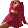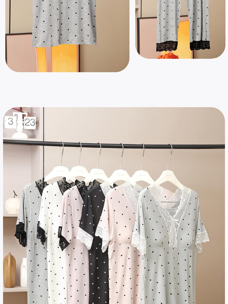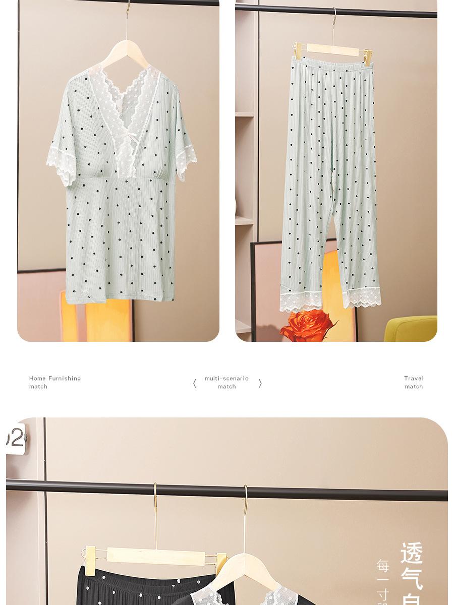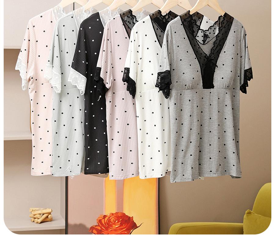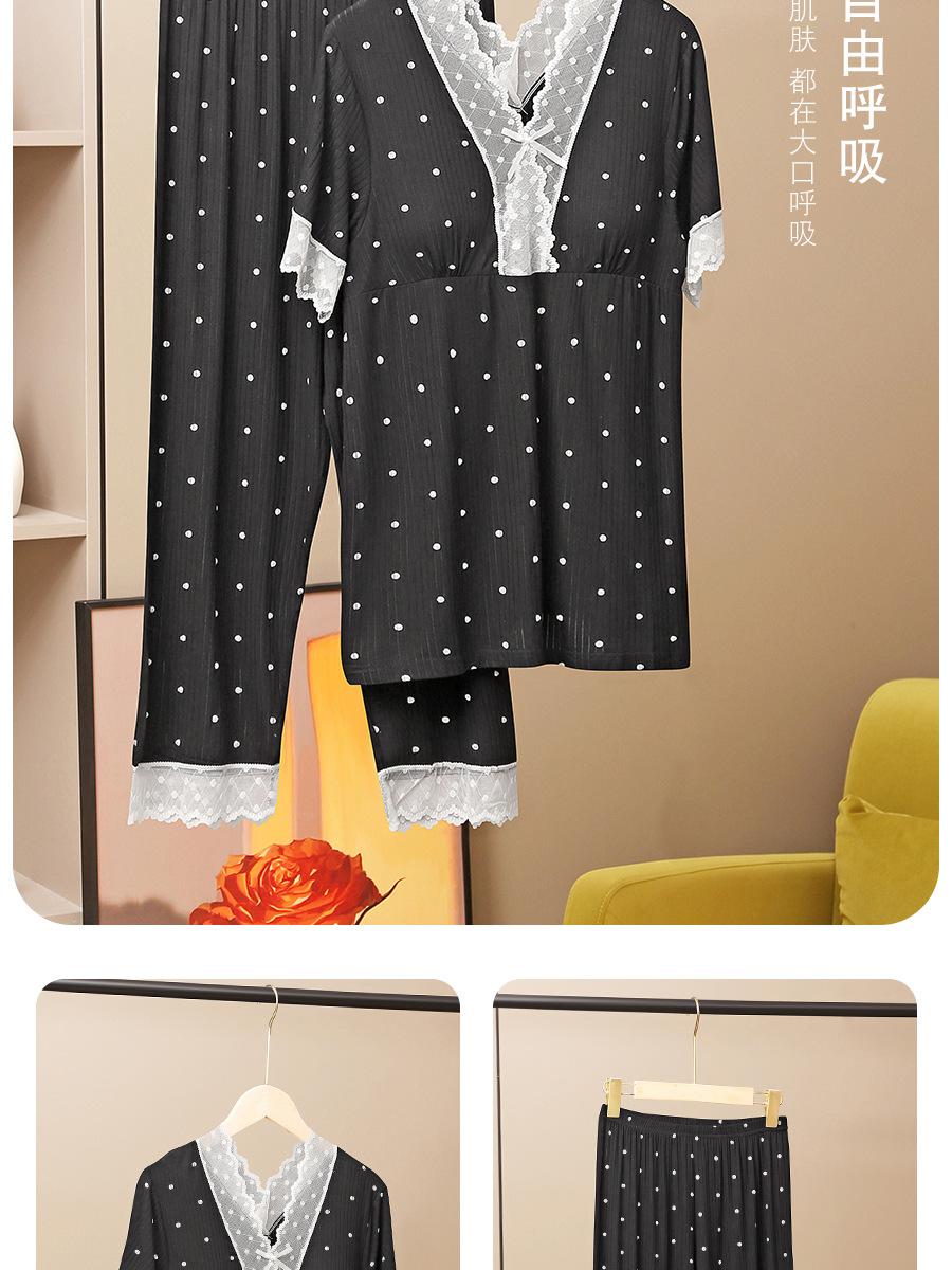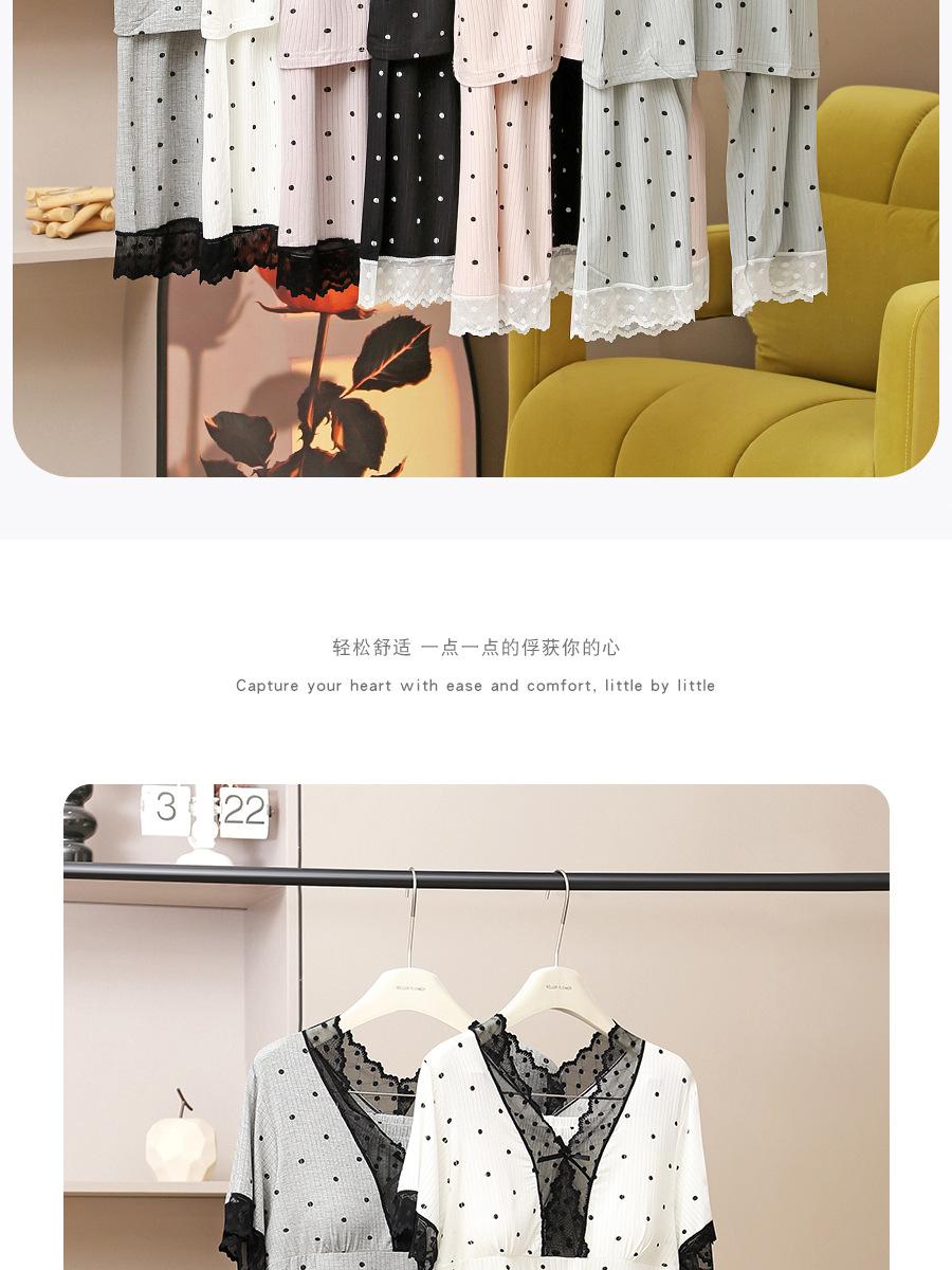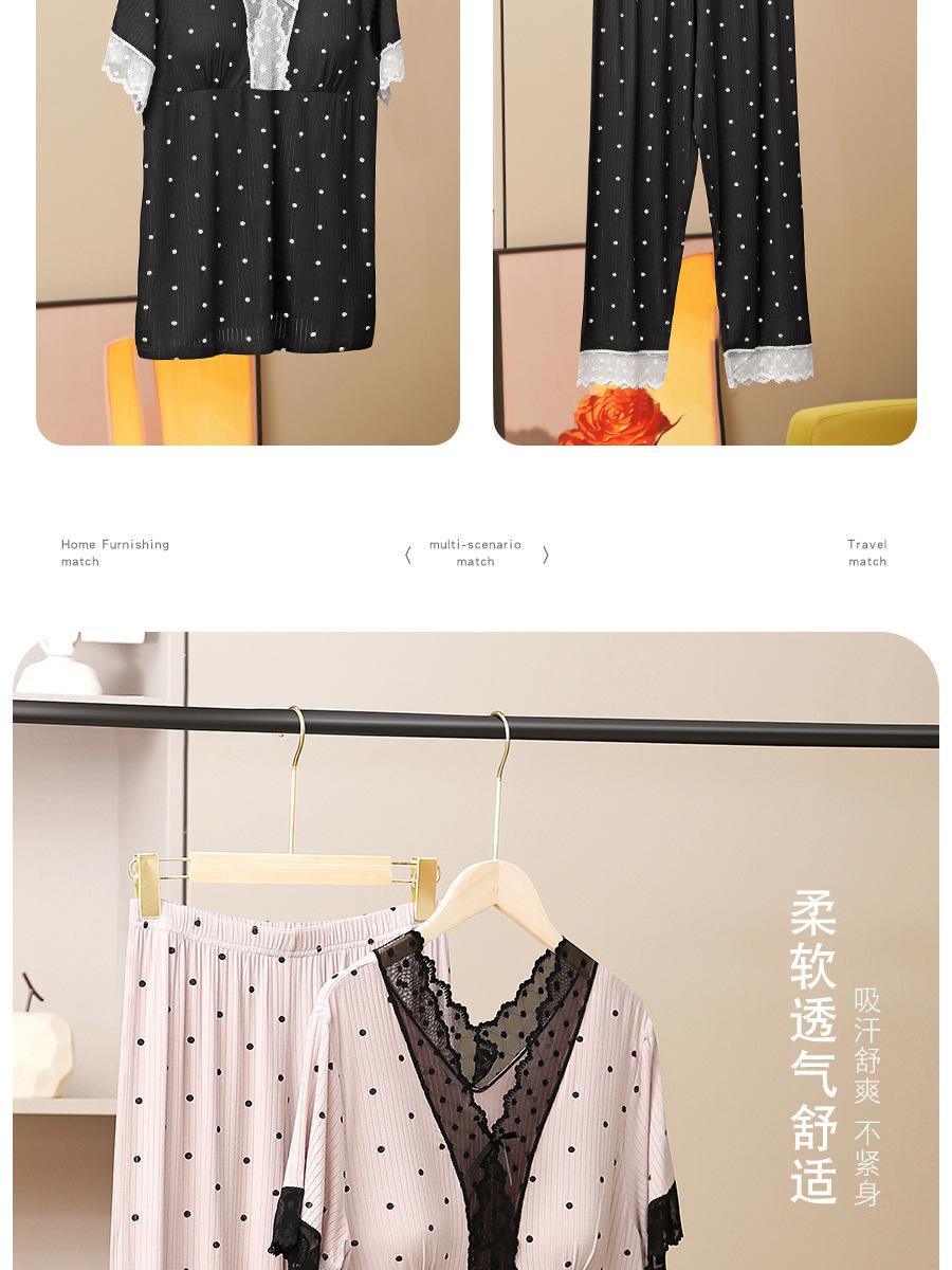Venta al por mayor de fábrica Verano para mujer Pijama con almohadilla Traje Ropa para el hogar Cuello en V Encaje Elástico Moda Onda Punto Ropa Exterior