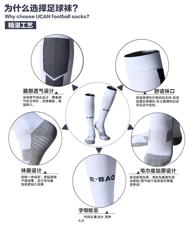 RBAO Calcetines de Fútbol de Fondo de Toalla Nuevos para Adulto de Tubo Largo Hasta la Rodilla Protectores de Tobillo y Pantorrilla Calcetines para Correr 6603
