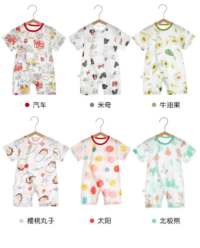 Mono de manga corta para recién nacido, de verano, fino, de algodón, sin hueso, con solapa inclinada, para kayak, escalada, pijama, ropa para recién nacido