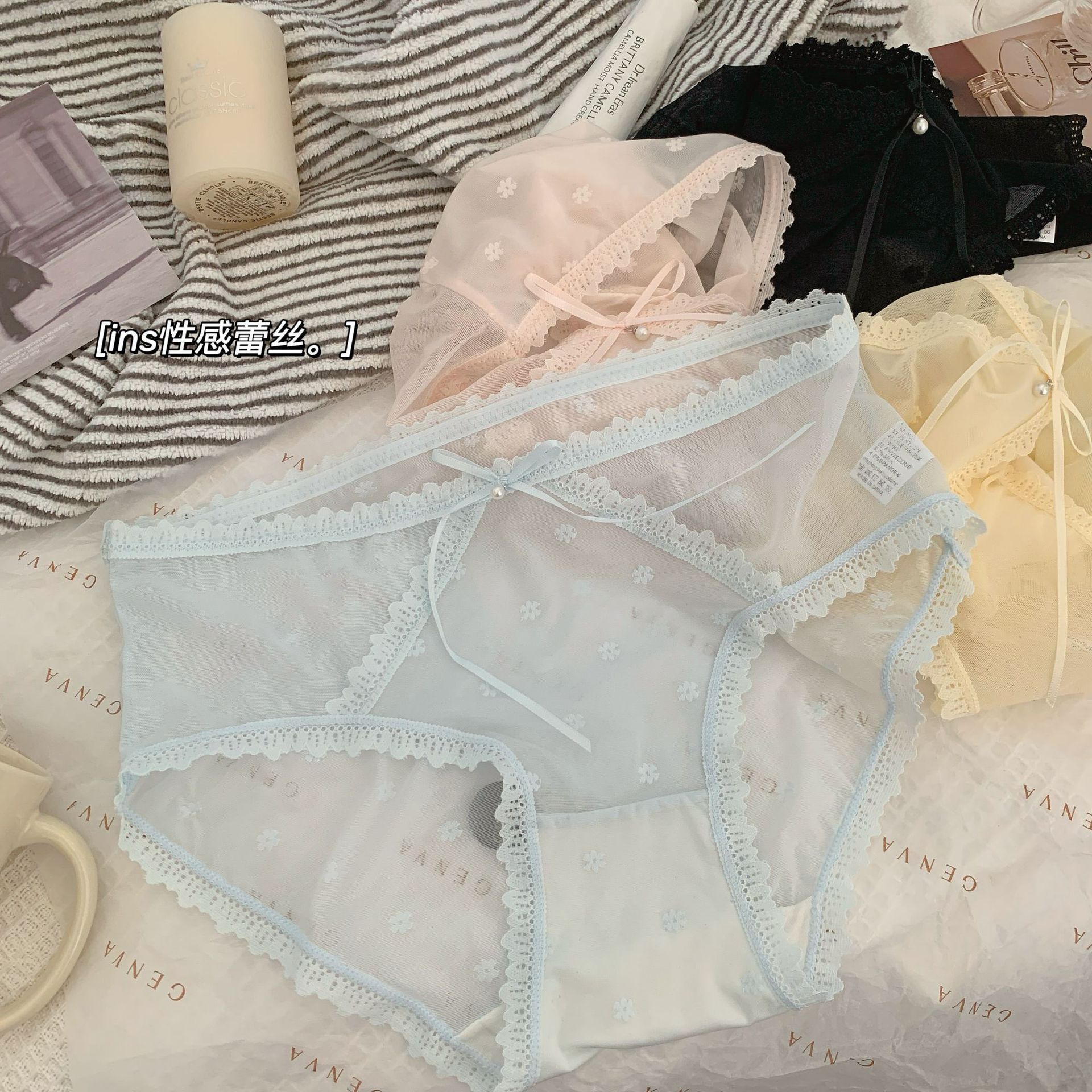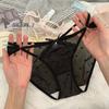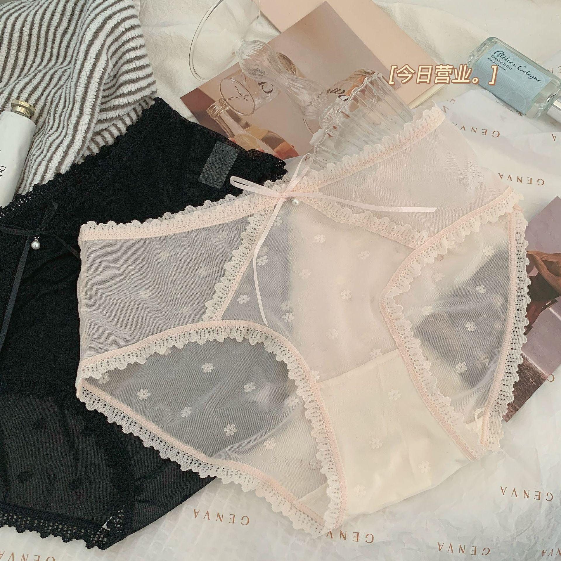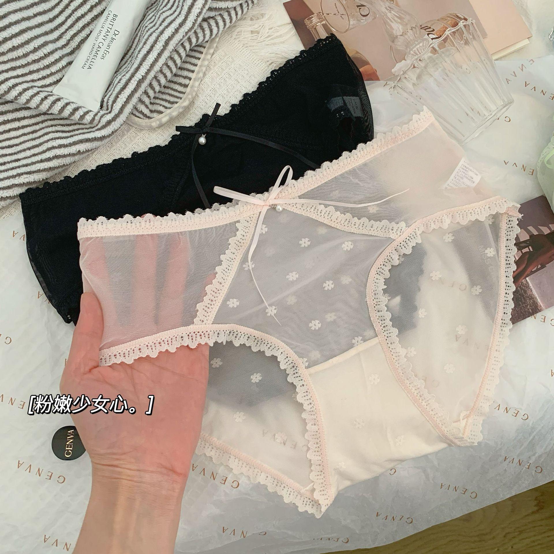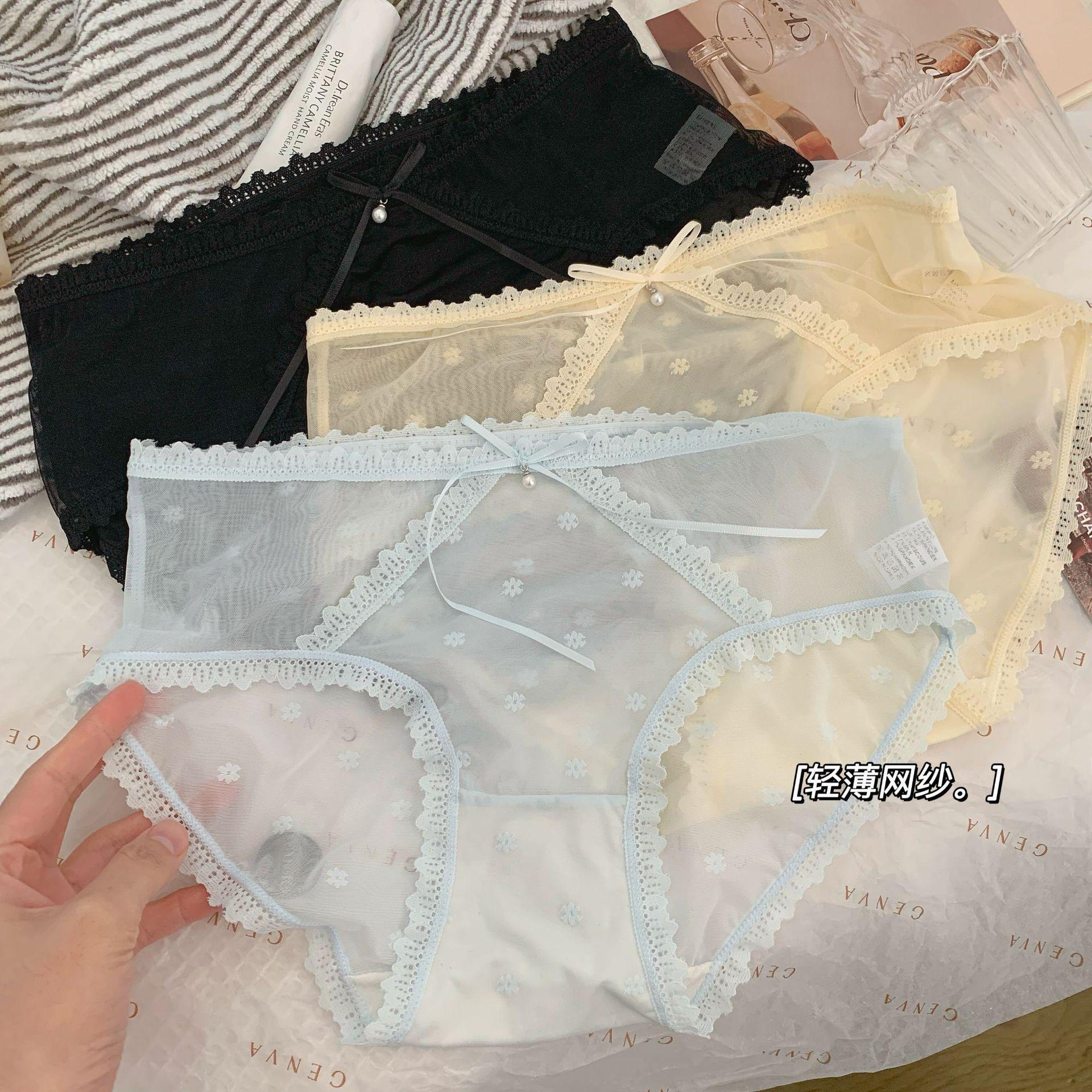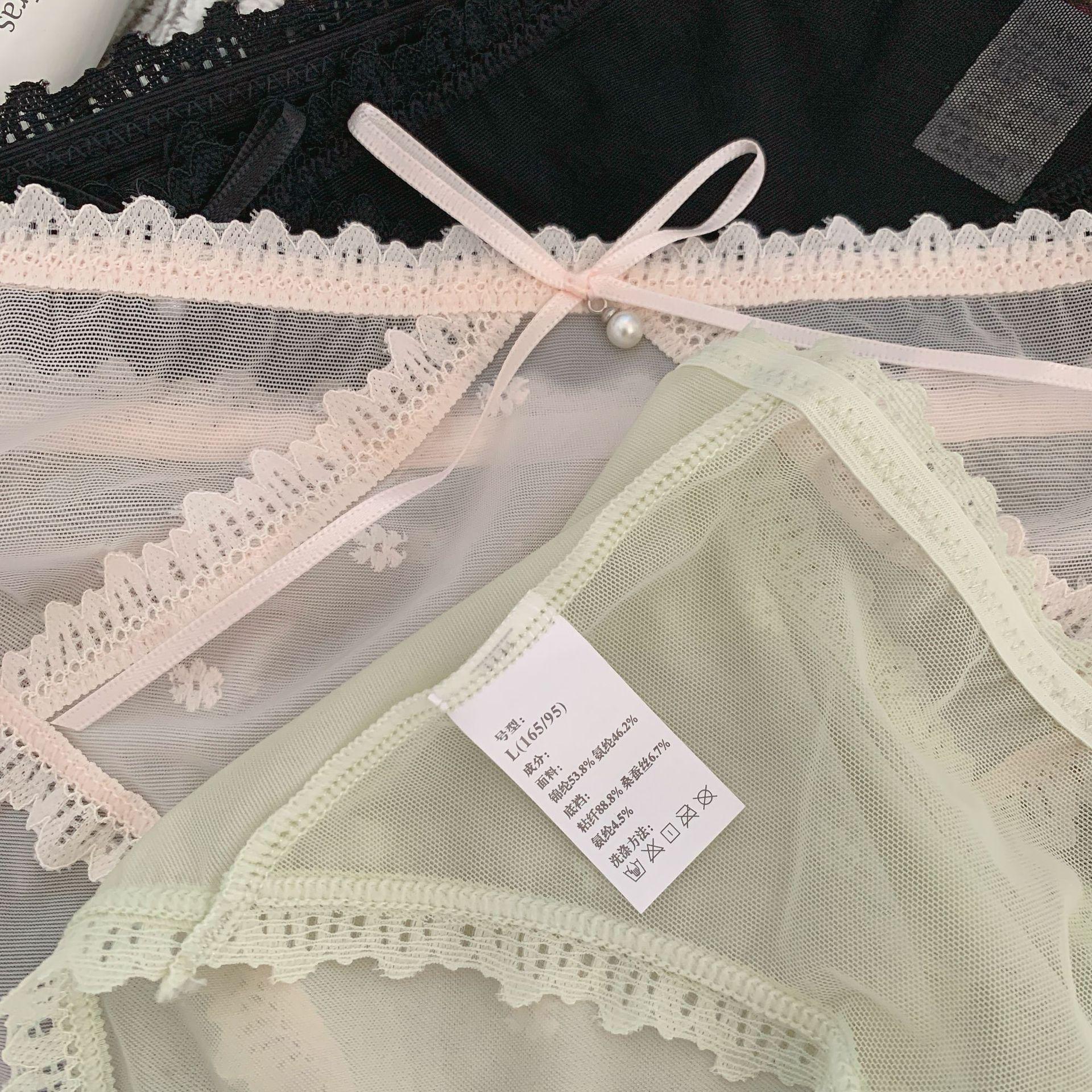 Ropa interior sexy de encaje de malla negra para niña, bragas de seda morera con entrepierna y cintura media, venta al por mayor