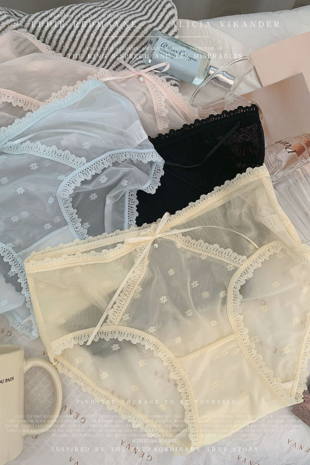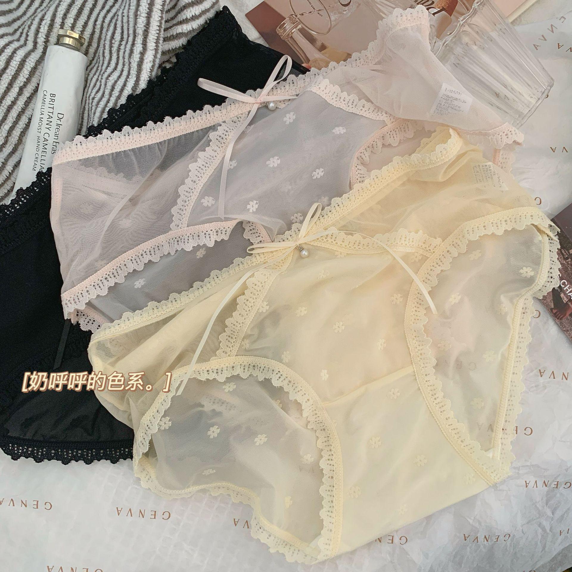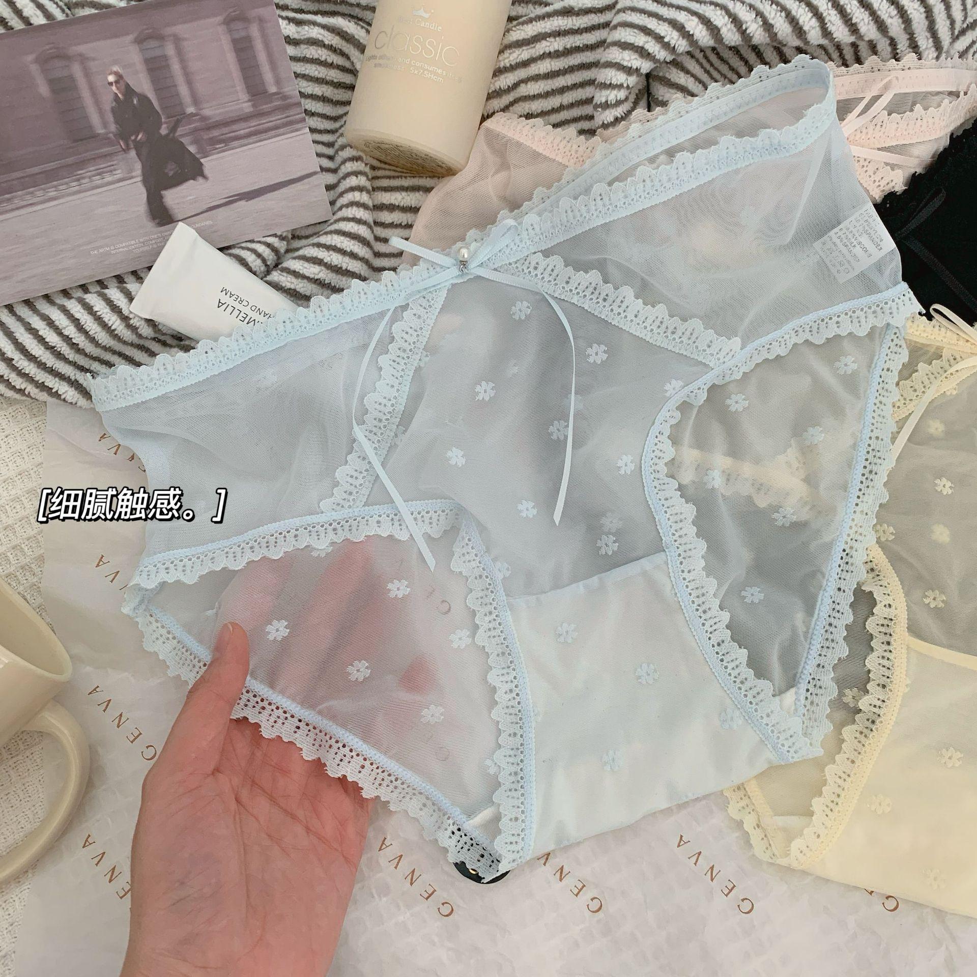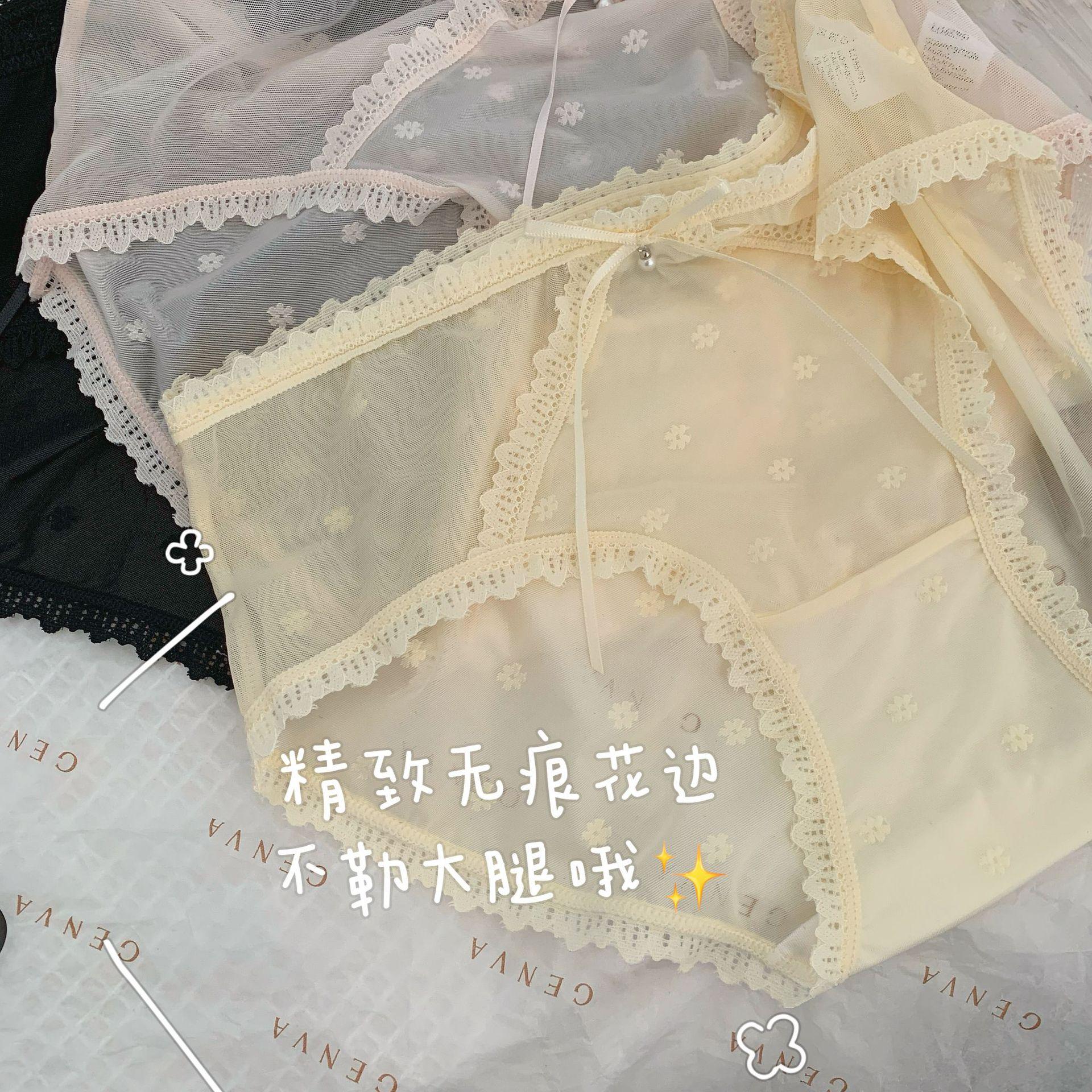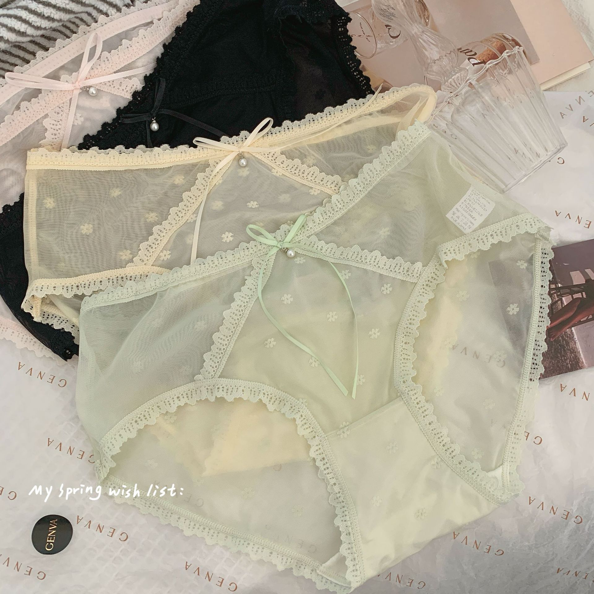 Ropa interior sexy de encaje de malla negra para niña, bragas de seda morera con entrepierna y cintura media, venta al por mayor
