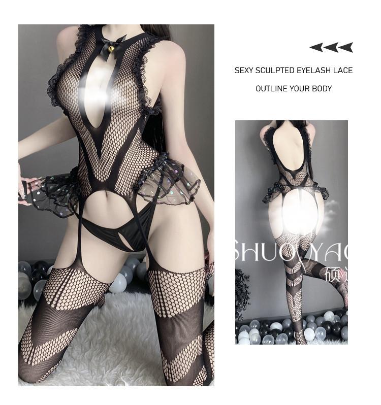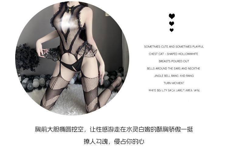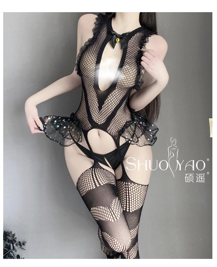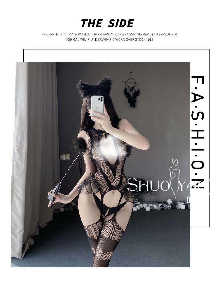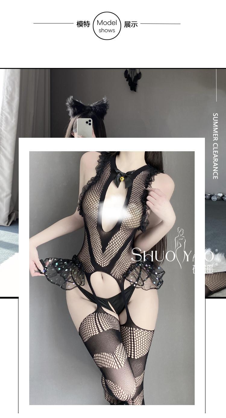 Shuo Yao ropa interior sexy chica gato tentación sexy abierto medias enterizas medias de red medias nalgas traje uniforme 283