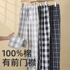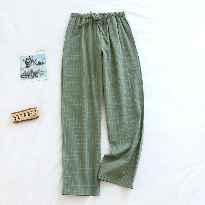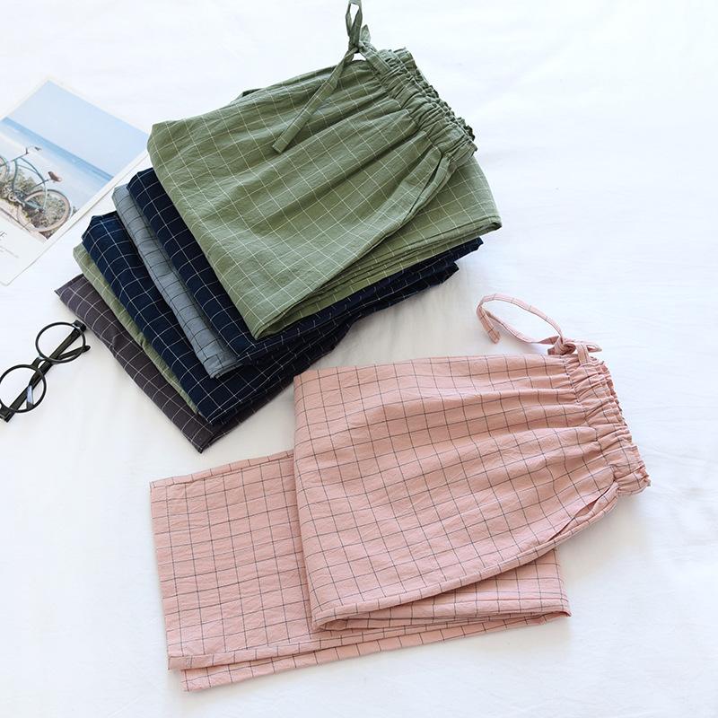 Ropa de Casa para Hombre y Mujer Pantalones de Pijama Talla Grande Pantalones para Pareja Algodón Lavado de una Sola Capa Pantalones a Cuadros Algodón Fino de Verano Recién Llegado