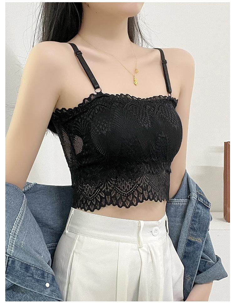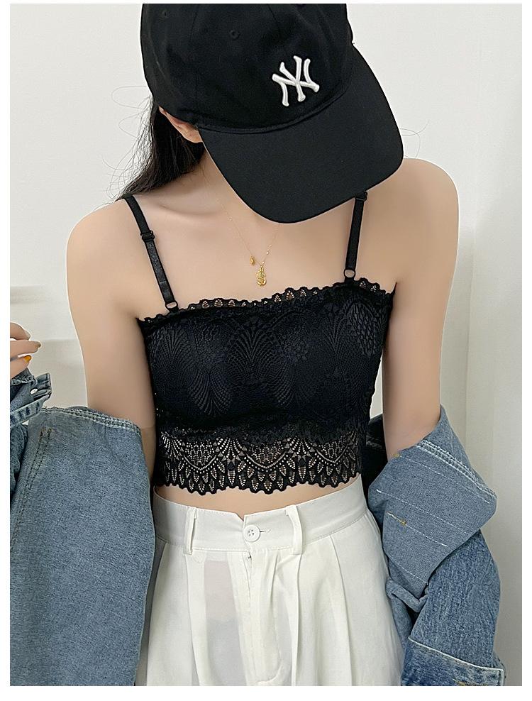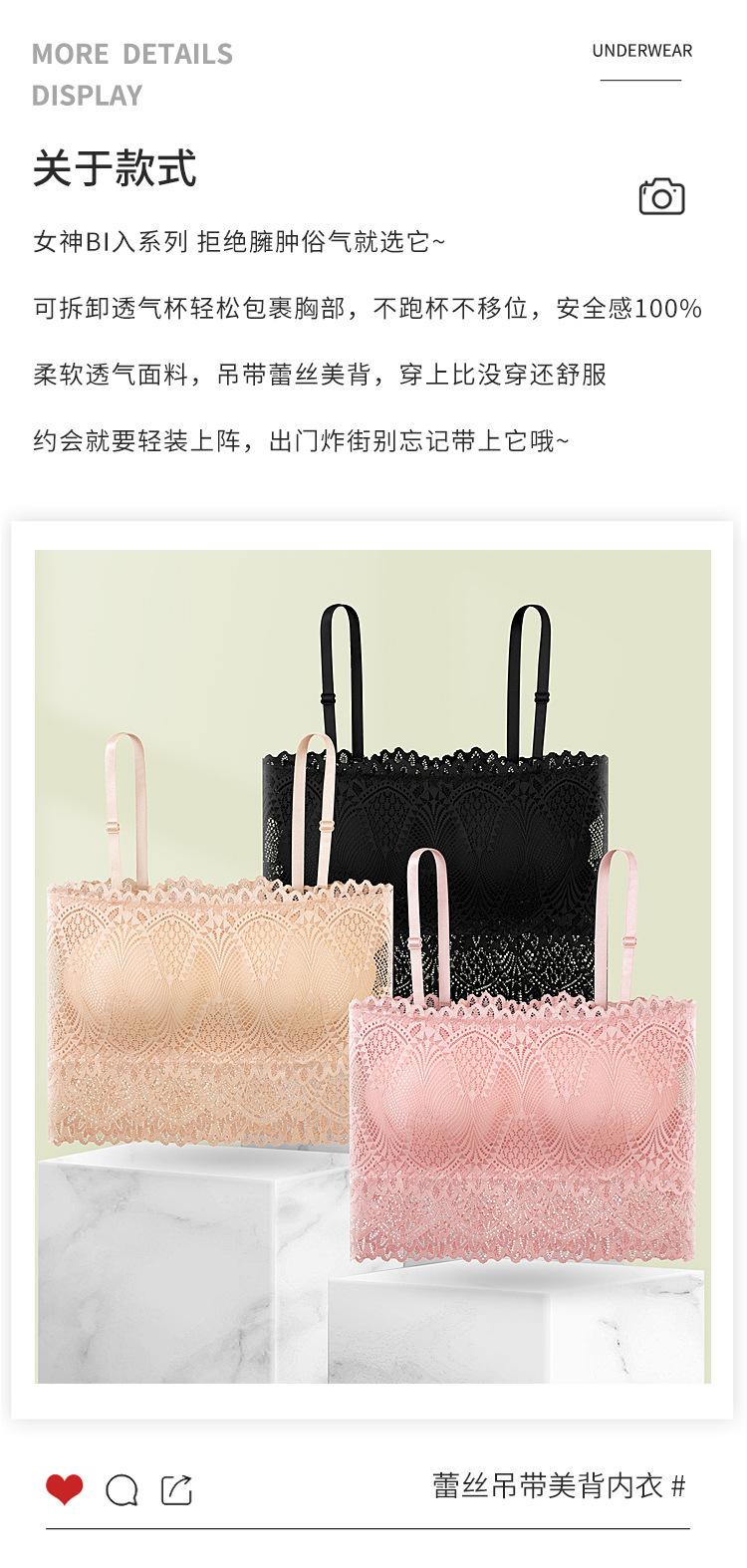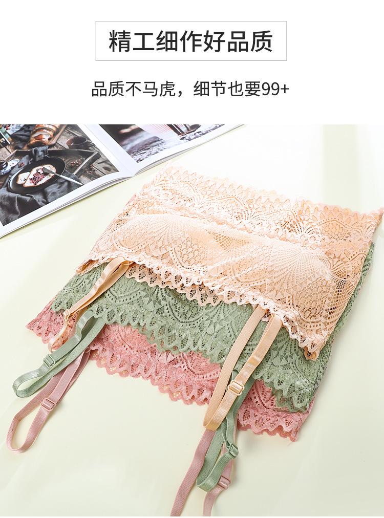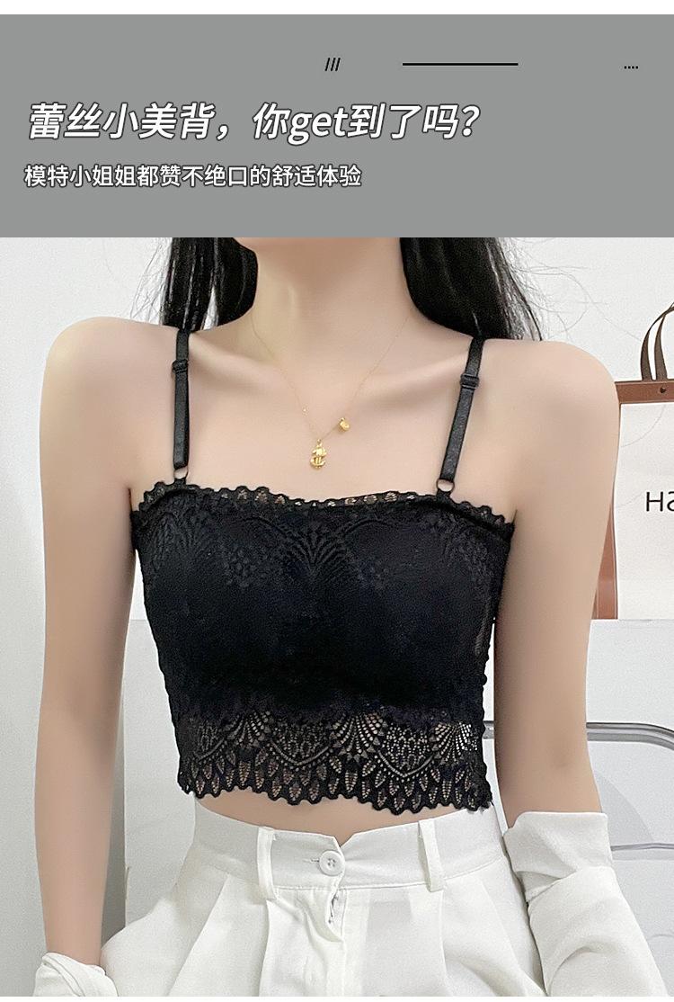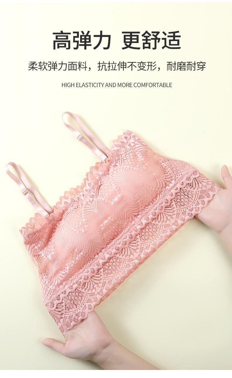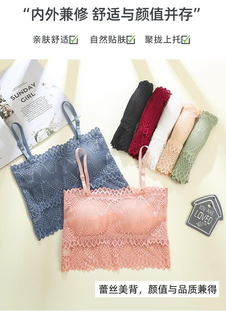 Ropa interior de verano con encaje de belleza con tiras en la espalda para mujer, sexy, con efecto borroso, envuelto en el pecho, antiexposición, alta elasticidad, transpirable, cómodo, sin costuras.