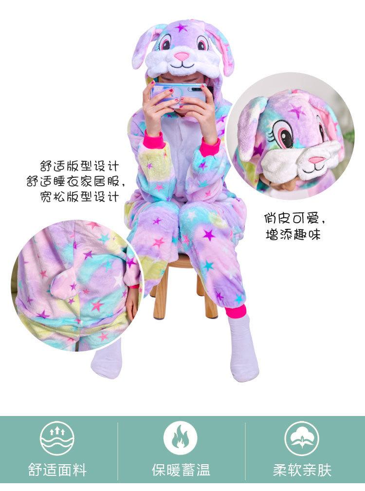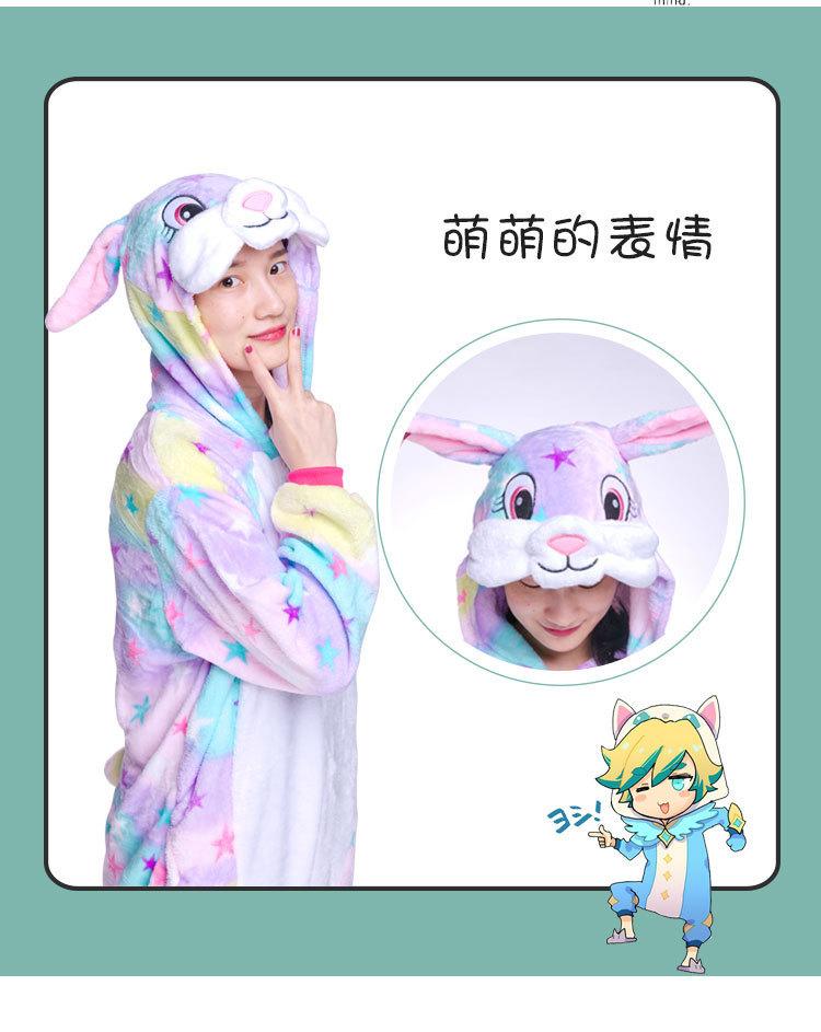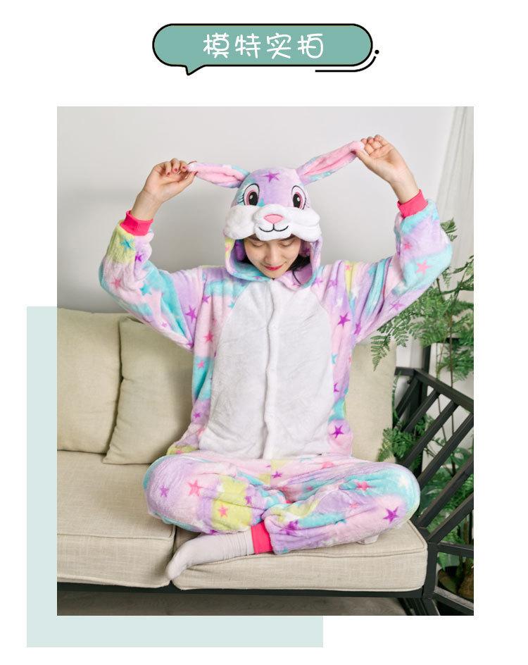 Pijama de una pieza de franela con diseño de estrella de conejo para hombre y mujer, de dibujos animados, para el hogar, para actuaciones