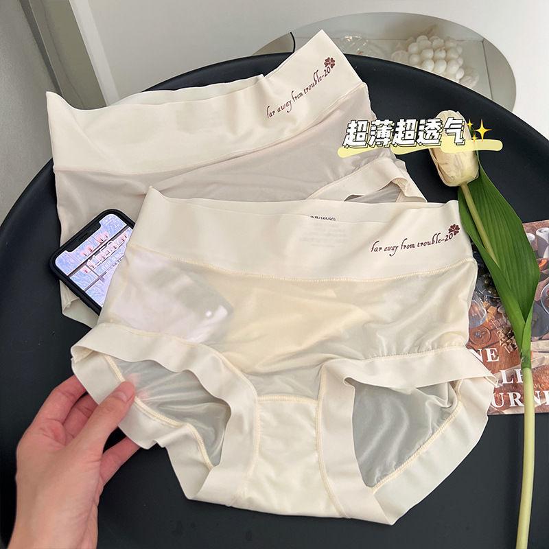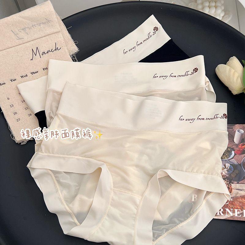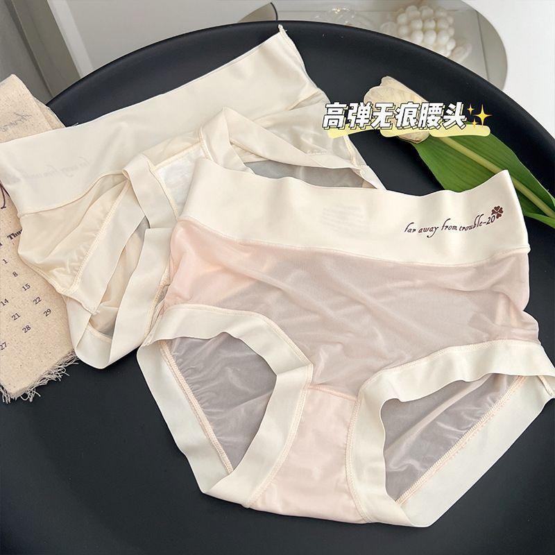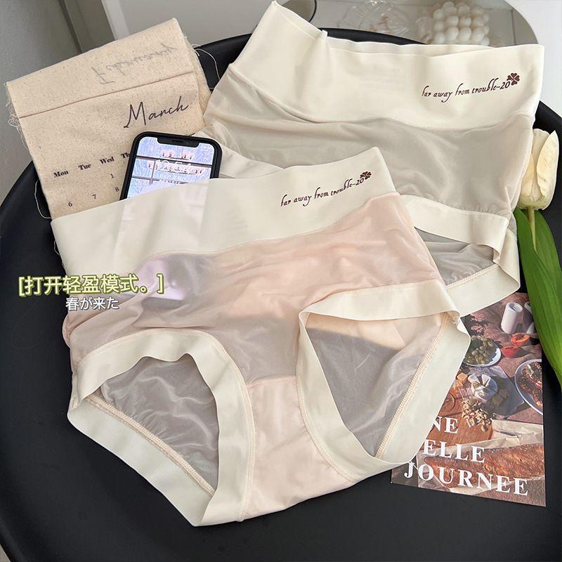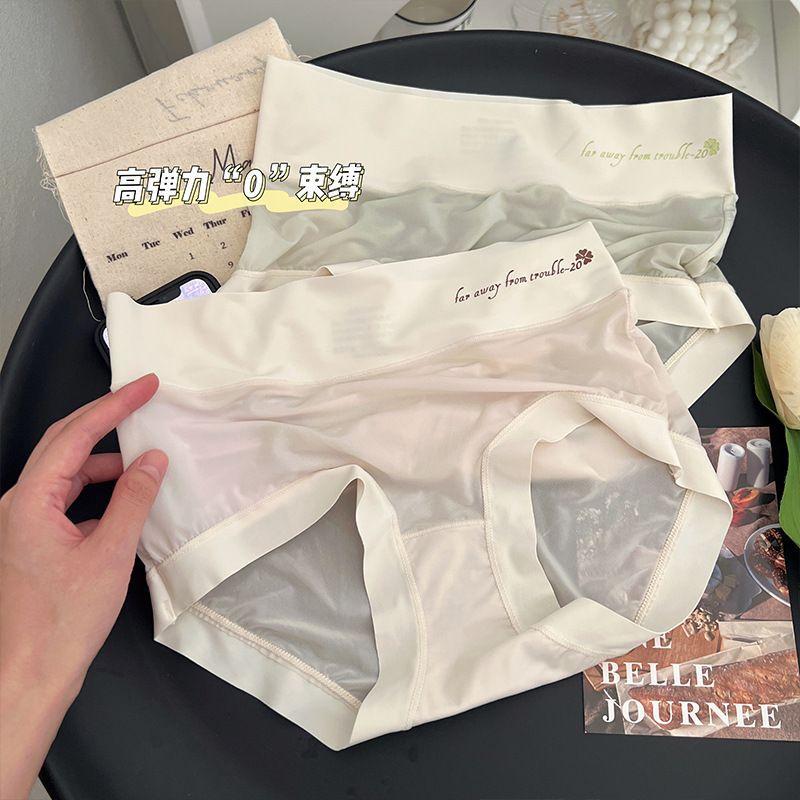 Braguitas Abdominales de Cintura Alta para Mujer Seda de Hielo Sin Marcas Verano Delgadas Transpirables Pantalones Mascarilla Facial Desnuda Calzones para Estudiante