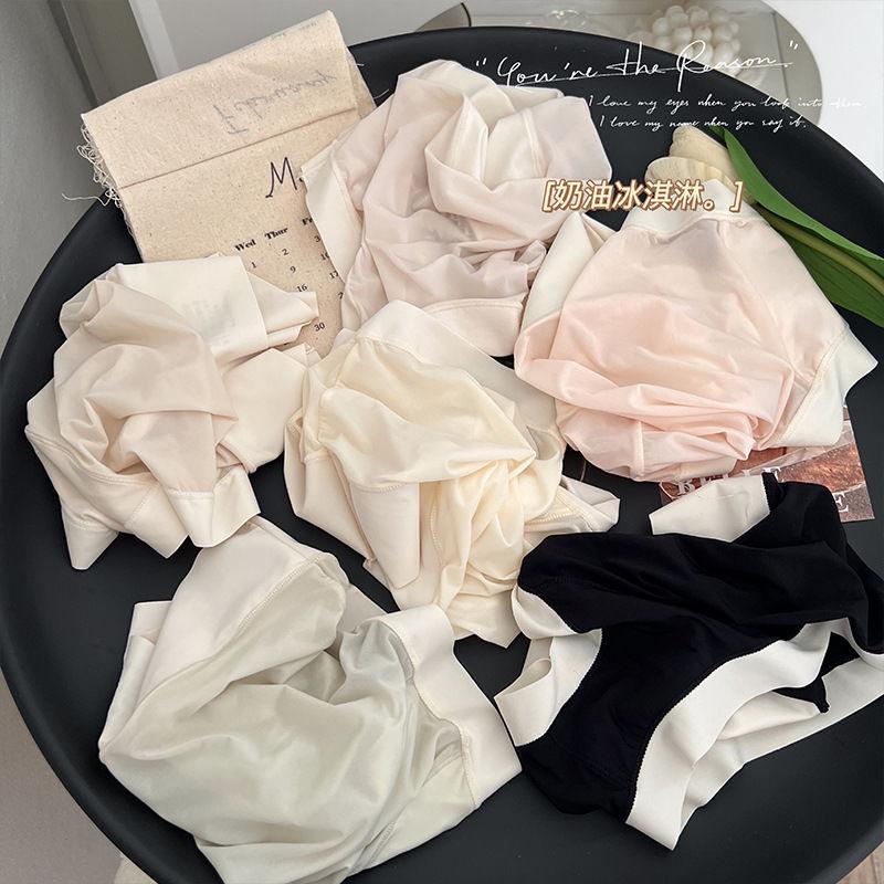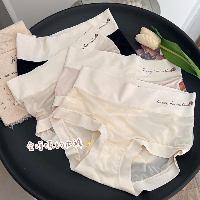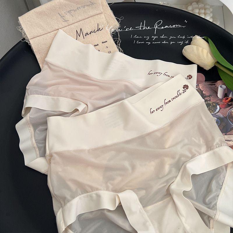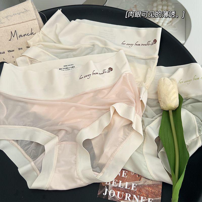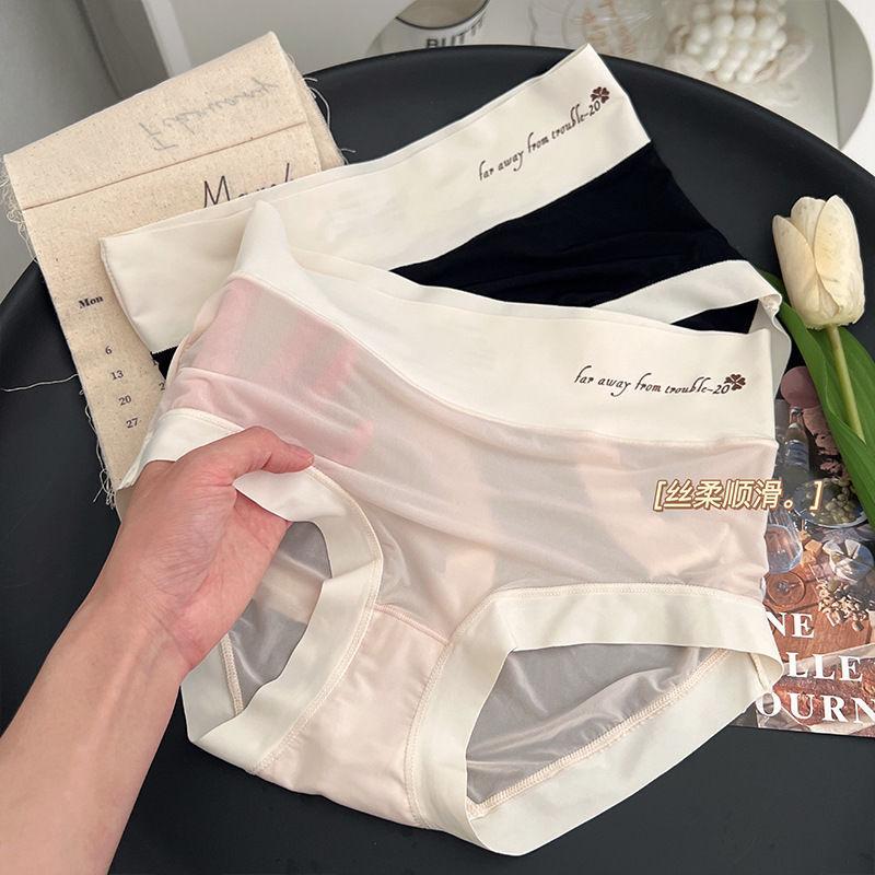 Braguitas Abdominales de Cintura Alta para Mujer Seda de Hielo Sin Marcas Verano Delgadas Transpirables Pantalones Mascarilla Facial Desnuda Calzones para Estudiante