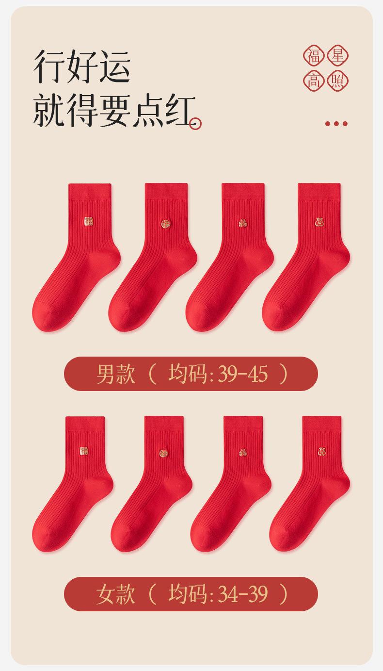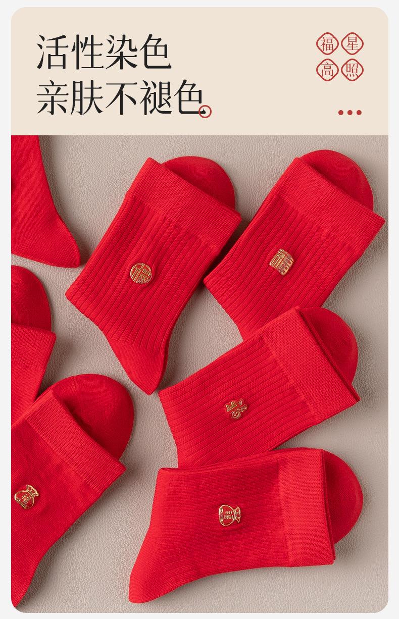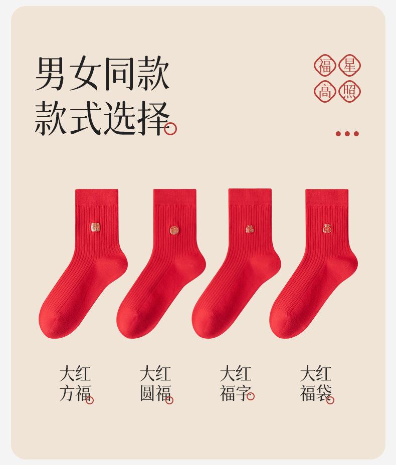 Compra Calcetines rojos calcetines de boda calcetines rojos del año de nacimiento festivos calcetines de puro algodón de media caña otoño e invierno rojo chino calcetines del mismo estilo para hombres y mujeres al por mayor en Joom.pro
