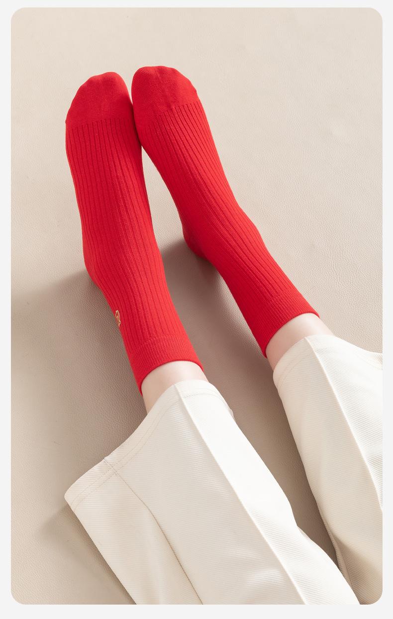Calcetines rojos calcetines de boda calcetines rojos del año de nacimiento festivos calcetines de puro algodón de media caña otoño e invierno rojo chino calcetines del mismo estilo para hombres y mujeres