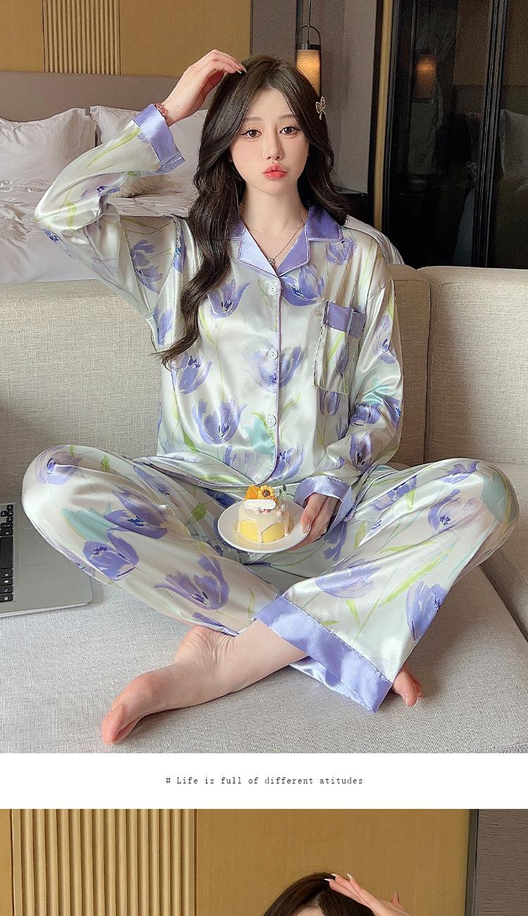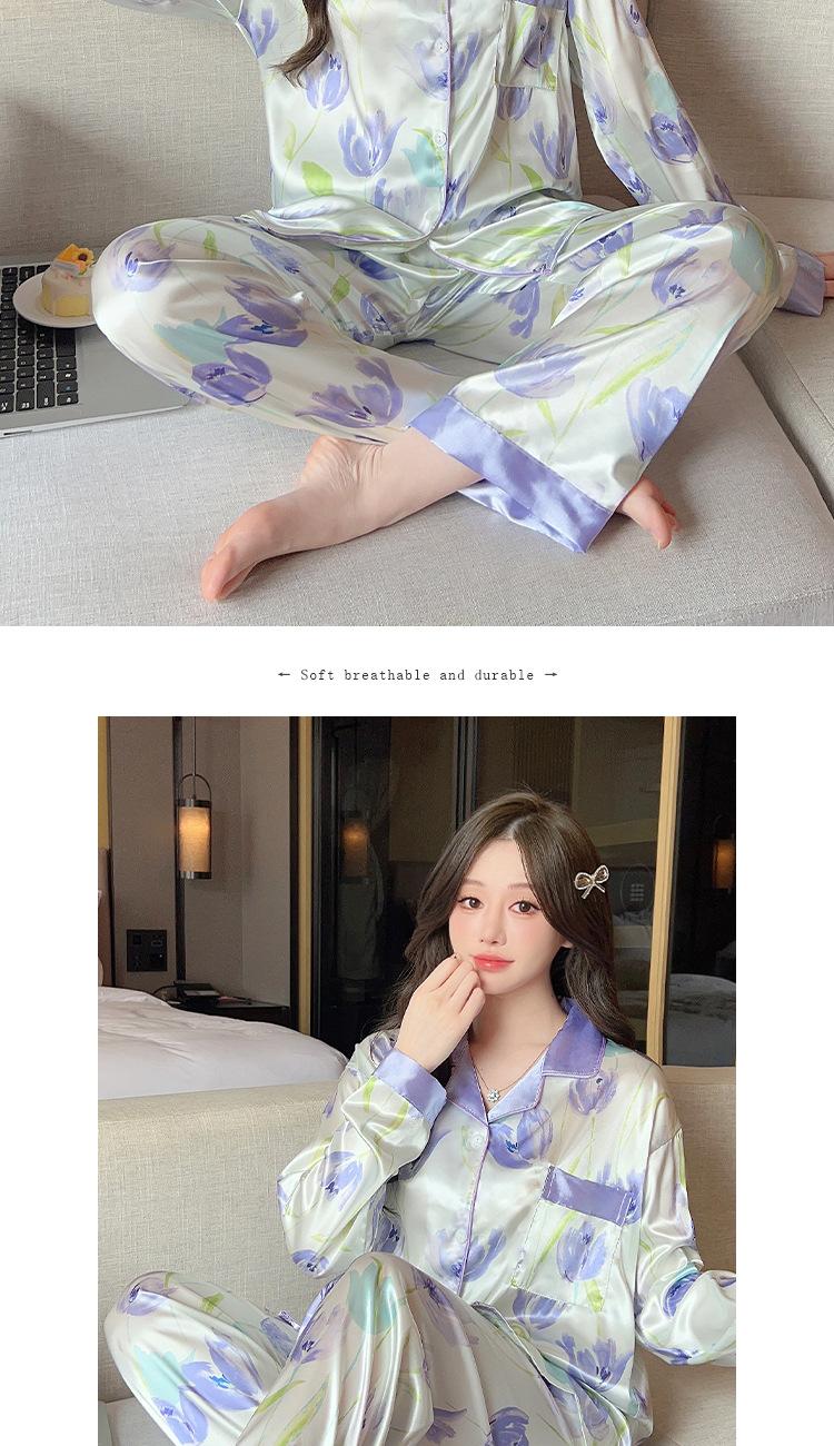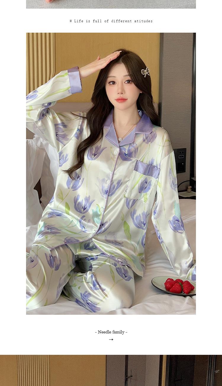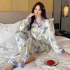 Pijama estilo pastoral de tulipán para mujer, cárdigan de manga larga para primavera y verano, ropa informal para el hogar para niña, venta al por mayor.