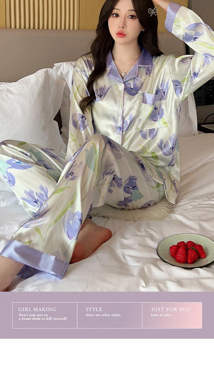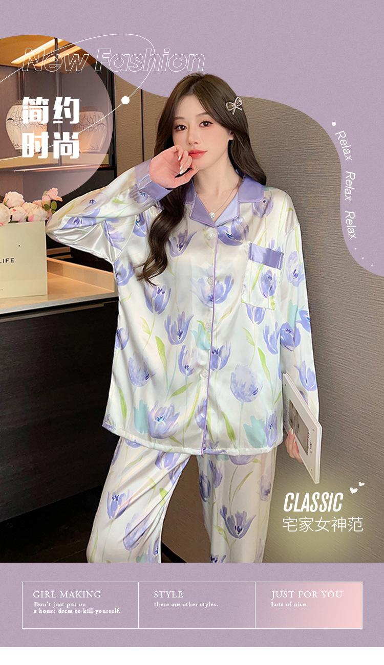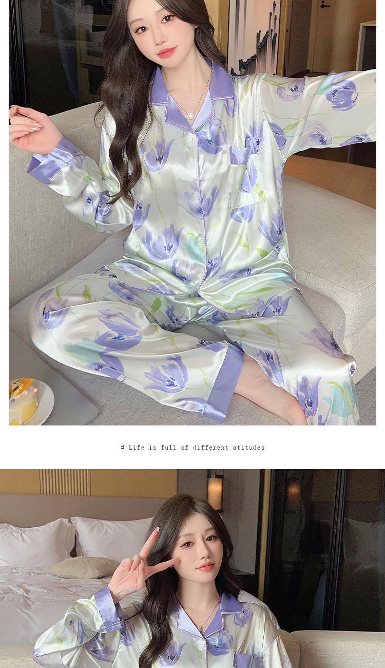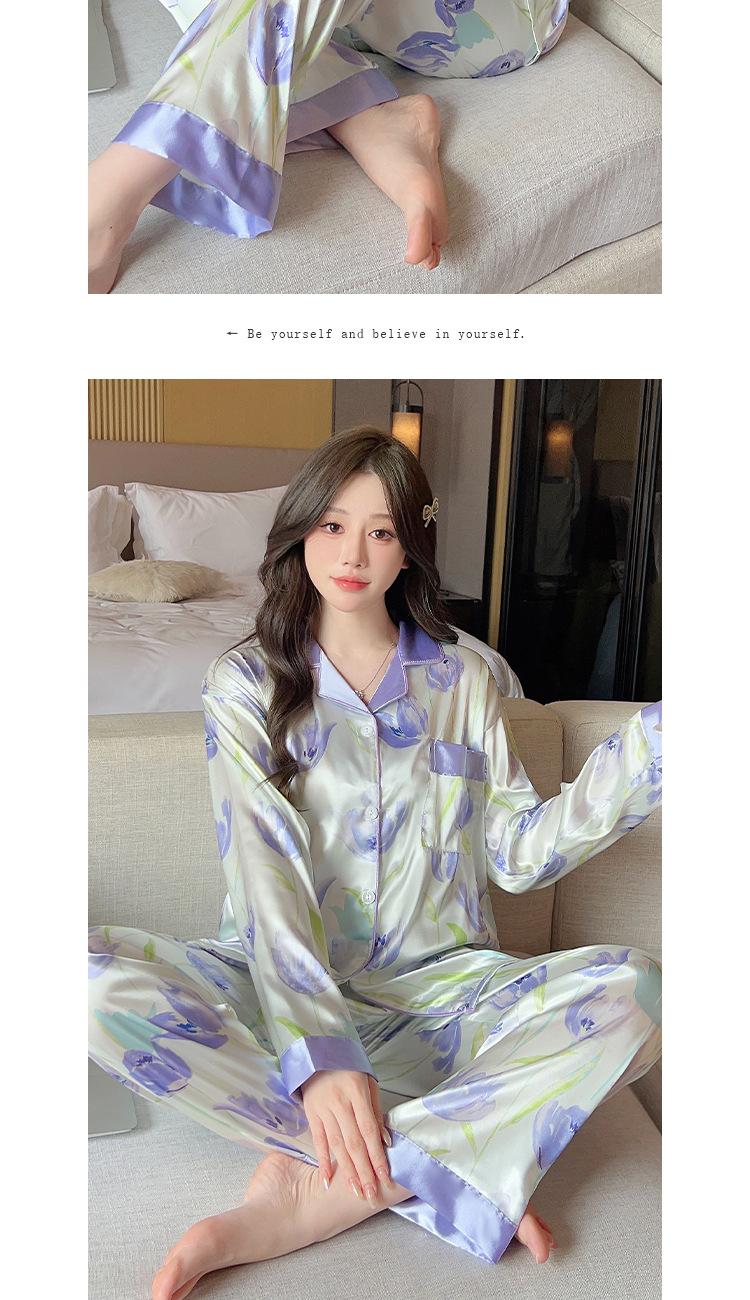 Pijama estilo pastoral de tulipán para mujer, cárdigan de manga larga para primavera y verano, ropa informal para el hogar para niña, venta al por mayor.