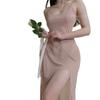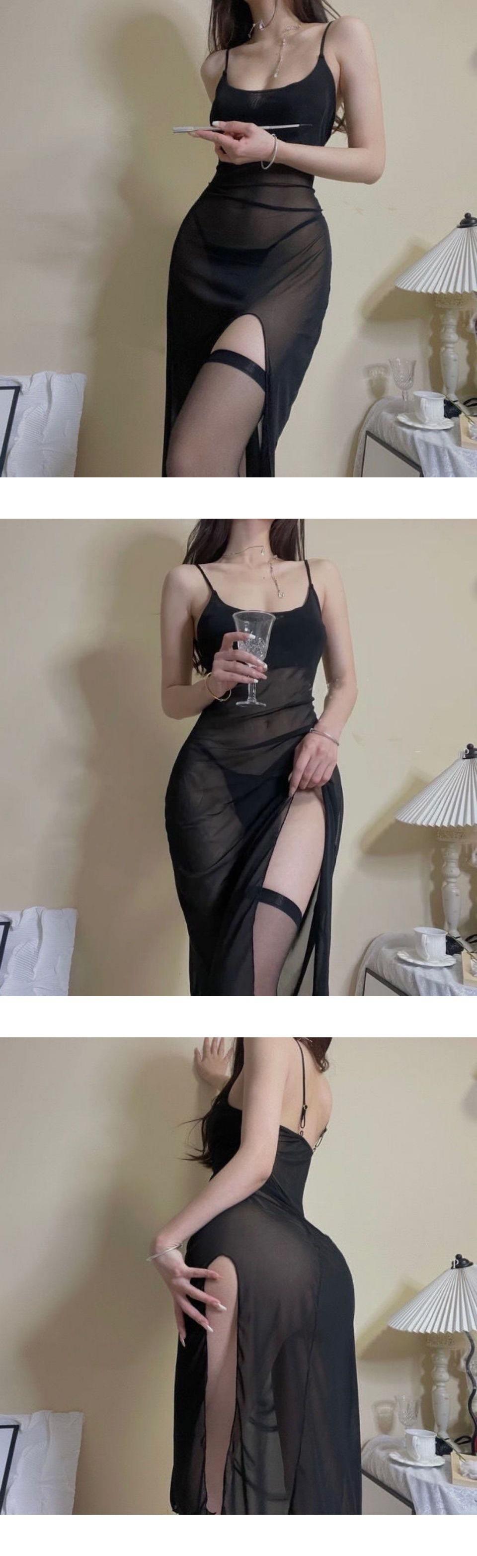 Lencería sexy para mujer, vestido largo con tirantes, pijama transparente de tentación, camisón de malla, traje de perspectiva, tentación extrema