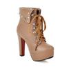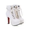 Nuevas botas cortas de tacón alto de aguja con cordones de comercio exterior europeo y americano al por mayor botas de cuero blanco para mujer