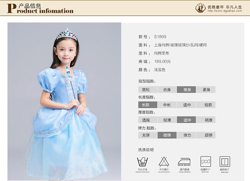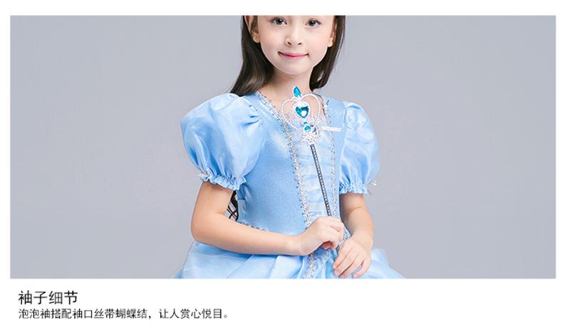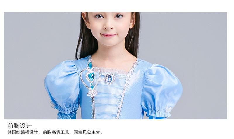 Vestido de princesa Elsa de Frozen de manga corta colorido, ropa infantil de comercio exterior, vestido de niña, disfraz de actuación para el Día del Niño