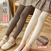 Leggings de forro polar para otoño e invierno para bebés y niños pequeños, pantalones de nueve puntos para niños, pantalones para niños medianos y grandes, algodón, para niñas, color sólido, pantalones de rayas verticales